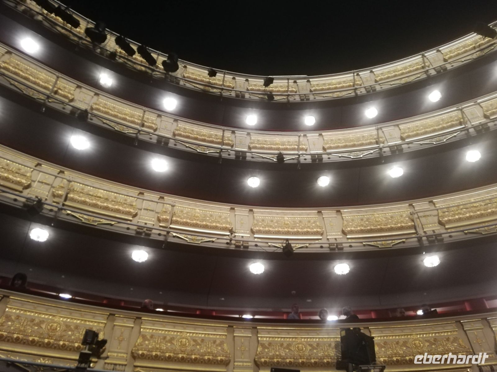 Die gold-rote Ränge rund um bilden eine imposante Kulisse und eine festliche Stimmung.