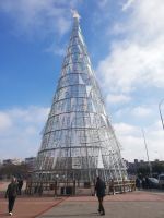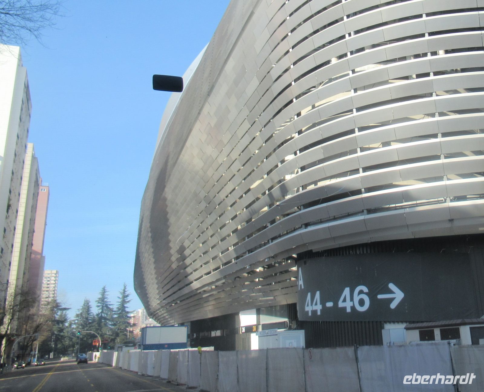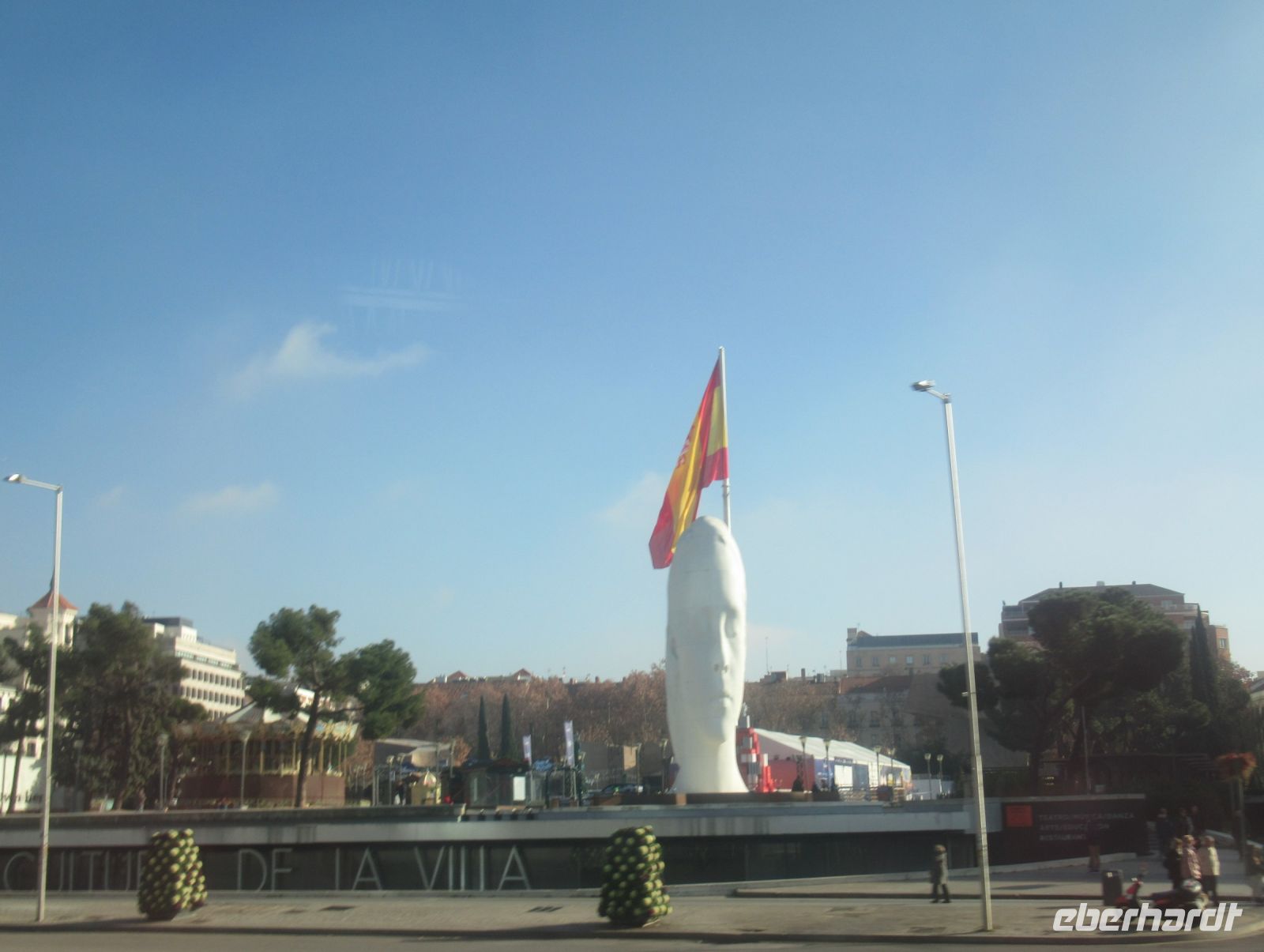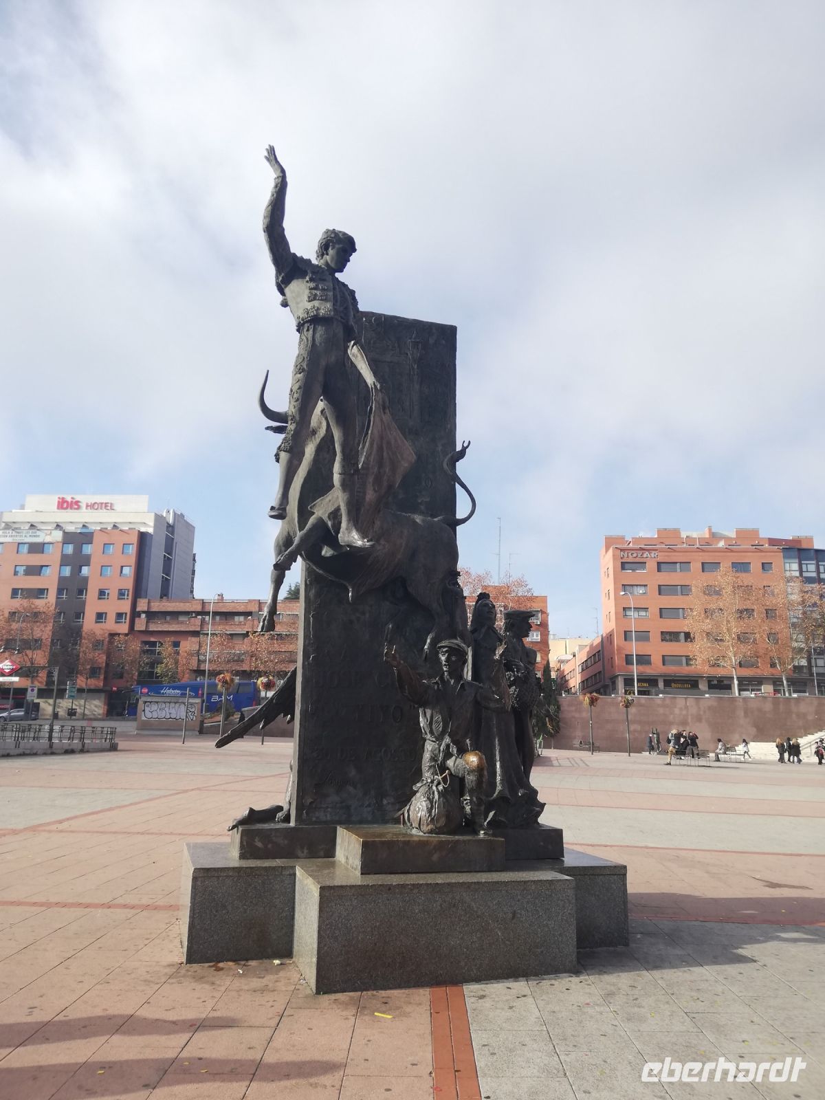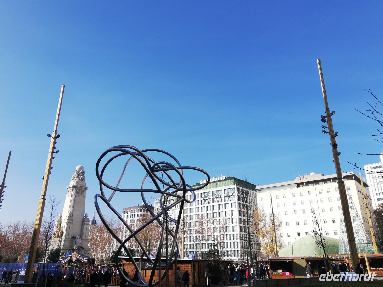 Jetzt tagsüber fahren wir an schon bekannten Punkten von Madrid, an Cibeles Brunnen und Prado Puerto de Alcala vorbei, Richtung Stierkampfarena – „Live Las Ventas“. Thomas erzählt uns über Entwicklung der Stadt und die Bebauung der Außenbezirke, der vorher auf die heutige Innenstadt begrenzte Stadt Madrid. Unterschiedliche Baustile zeichnen die vielfältige Stadt und deren Entwicklungsepochen. Wir landen bei der Stierkampfarena am Las Ventas. Die Sonne scheint und der erste Tag des Jahres begrüßt uns mit blauem Himmel. Auf hier auf dem Platz Las Ventas steht ein vom Metall konstruierte Weihnachtsbaum, der sicher abends schön beleuchtet ist.
