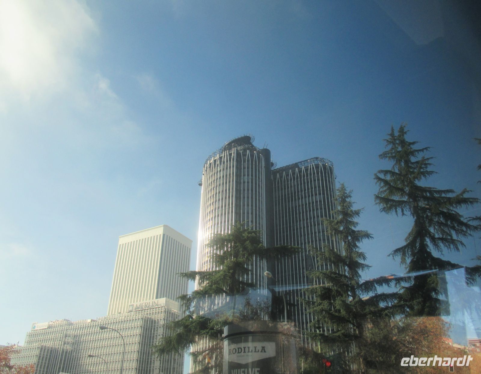 Wir fahren weiter durch die Stadt, vom Bus sehen wir das berühmte Stadion „Estadio Santiago Benabéu“, die neue moderne Architektur des Finanzdistrikts, vorbei an Kolumbus Denkmal, Puerta de Toledo, Basilika der San Francisco und kommen wieder zurück in Madrids Mitte. Im Bus erzählt uns Thomas auch über die Immobilien- und Mietentwicklung in Madrid, die für viele Menschen bald unbezahlbar wird.