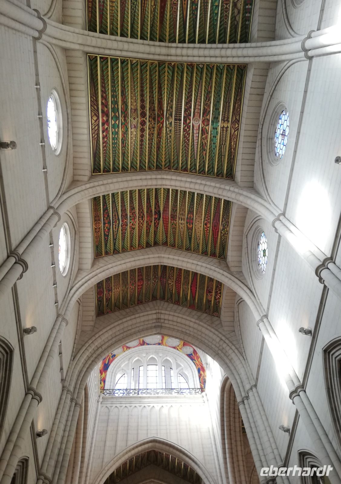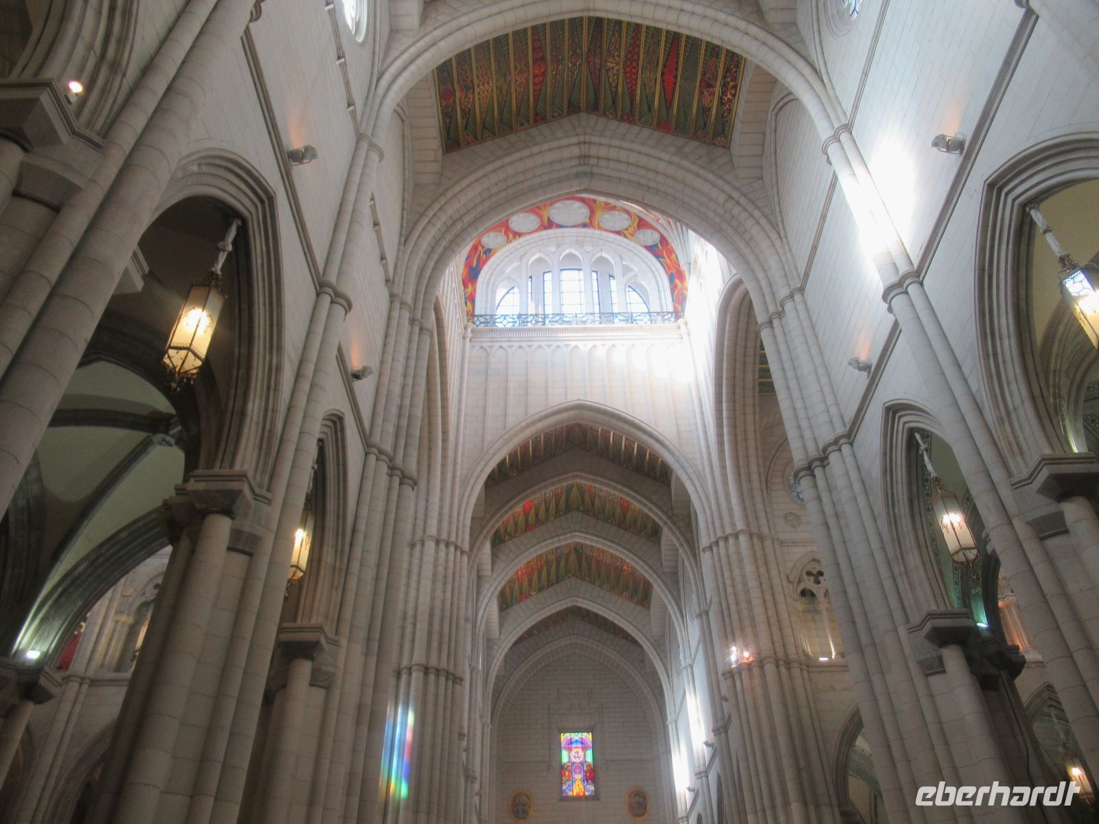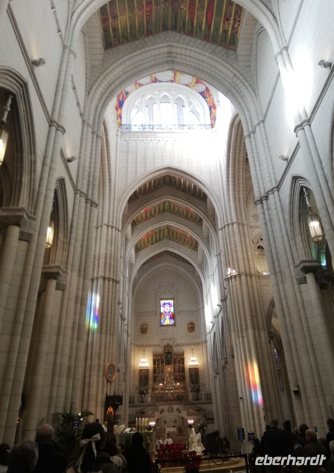 Wir verabschieden uns von unserem Busfahrer und stehen bald vor der Almudena Kathedrale, die wir die Tage nur von außen sehen konnten. Wir betreten die Kathedrale, da findet die feierliche Neujahrsmesse statt und so atmen wir die besondere Atmosphäre der Kathedrale ein und bewundern die vielfältige Architektur der Kirche.