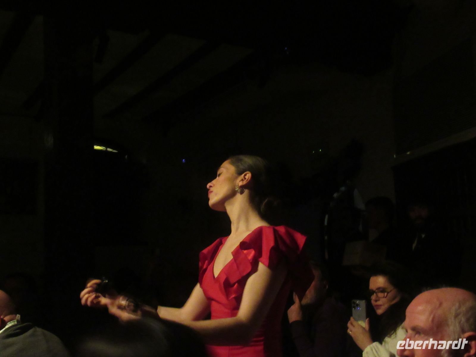 Die Show begann mit Gesang dreier Sängerrinnen und Flamenco Tänzen, begleitet von Gitarre und Rhythmen durch Händeklatschen. Der Flamenco Tänzer dominierte die Show mit Leidenschaft und Enthusiasmus pur. Der Holzboden bebte unter seinen Füssen. Die Flamenco Tänzerin tritt im roten Kleid auf – wie auch anders - und zeigte Ihr tänzerisches Können im Wechsel von Melancholie, Temperament und Freude.