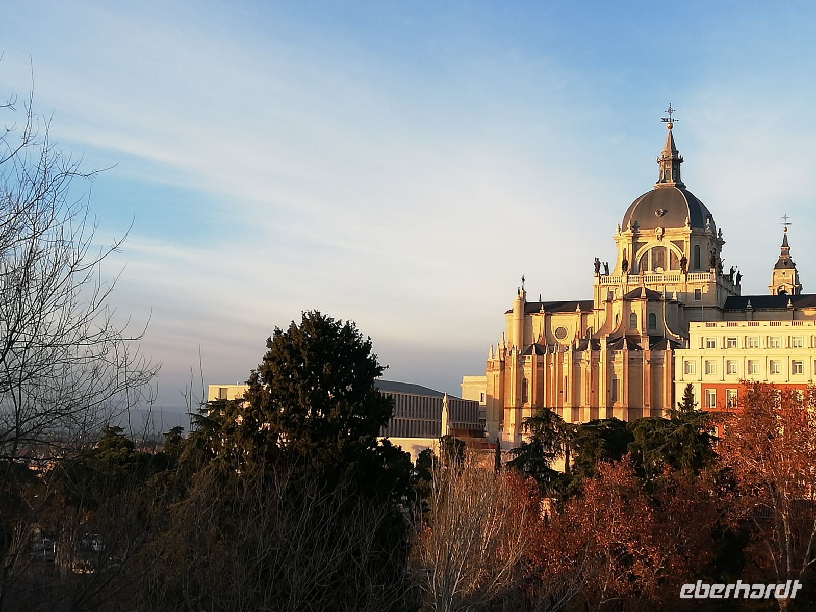 Auch Corral der Moreria, können wir noch einen wunderbaren Blick auf die „Almudena“ in der Abendsonne. Ein tolles Abschiedsbild von Madrid.
