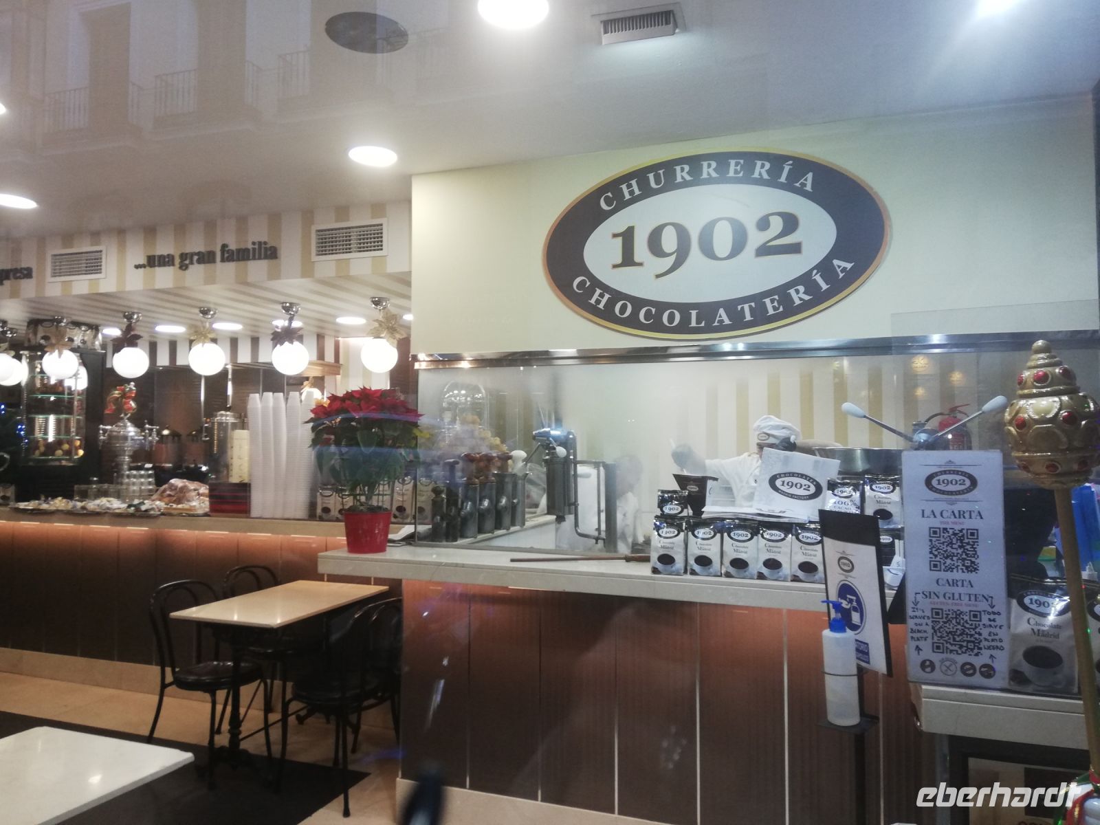 Aber jetzt ist Zeit um sich etwas zu stärken und so kehren wir in eine Tapas Bar ein und probieren uns durch. Aber noch eine Spezialität sollten die Gäste in Madrid verkosten – das sind die berühmten spanischen „Churros con Chocolatte“. Ich habe Tag vorher schon eine der besten Churrerías in Madrid ausfindig gemacht: Churrería Chocolateria 1902, da wollen wir also noch hin.