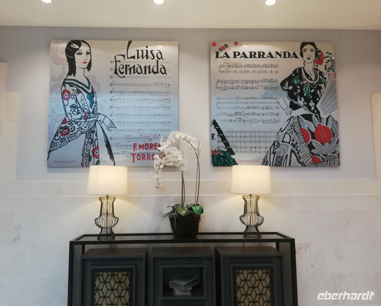 Bereits im Hotel gibt uns Angela einige Informationen zu der künstlerischen Dekoration unseres Hotels – die Liederbilder – Zarzuela.