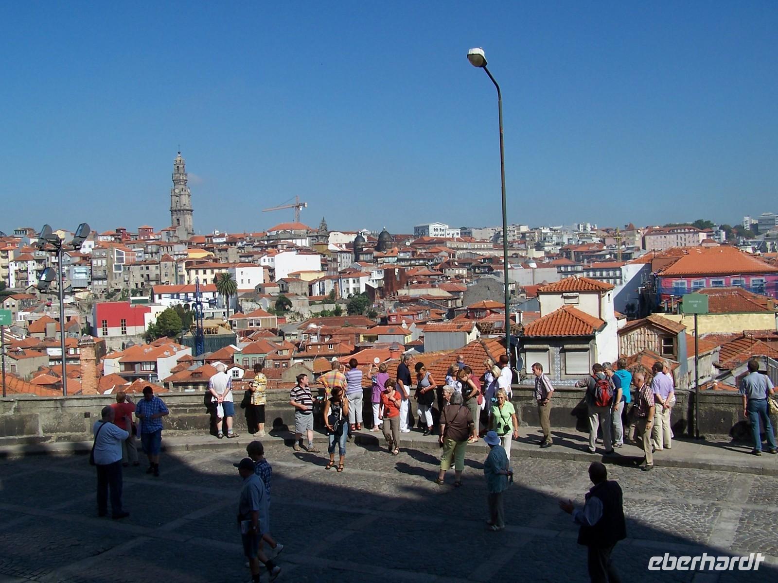 Am Morgen begrüßten uns unsere örtliche Reiseleitung Tanja und unser portugiesischer Fahrer Vitor zur Stadtrundfahrt durch Porto. Zuerst hielten wir am Campo Màrtires da Pàtria, einem Platz im Stadtzentrum. Von dort spazierten wir zum Karmelitenkloster, zur Buchhandlung Lello und zum Freiheitsplatz. Nach einem Fotostopp am Bahnhof S. Bento und dem Besuch der Kathedrale fuhren wir zu den Festungsanlagen und Strandpromenaden am Atlantik. Nach einer kleinen Pause ging es entlang des Flusses Rio Douro bis zur Brücke von Luis I., um von dort auf die andere Seite in das Stadtgebiet von Gaia zu gelangen. Hier befinden sich die Bodegas und die Portweinhändler.