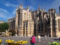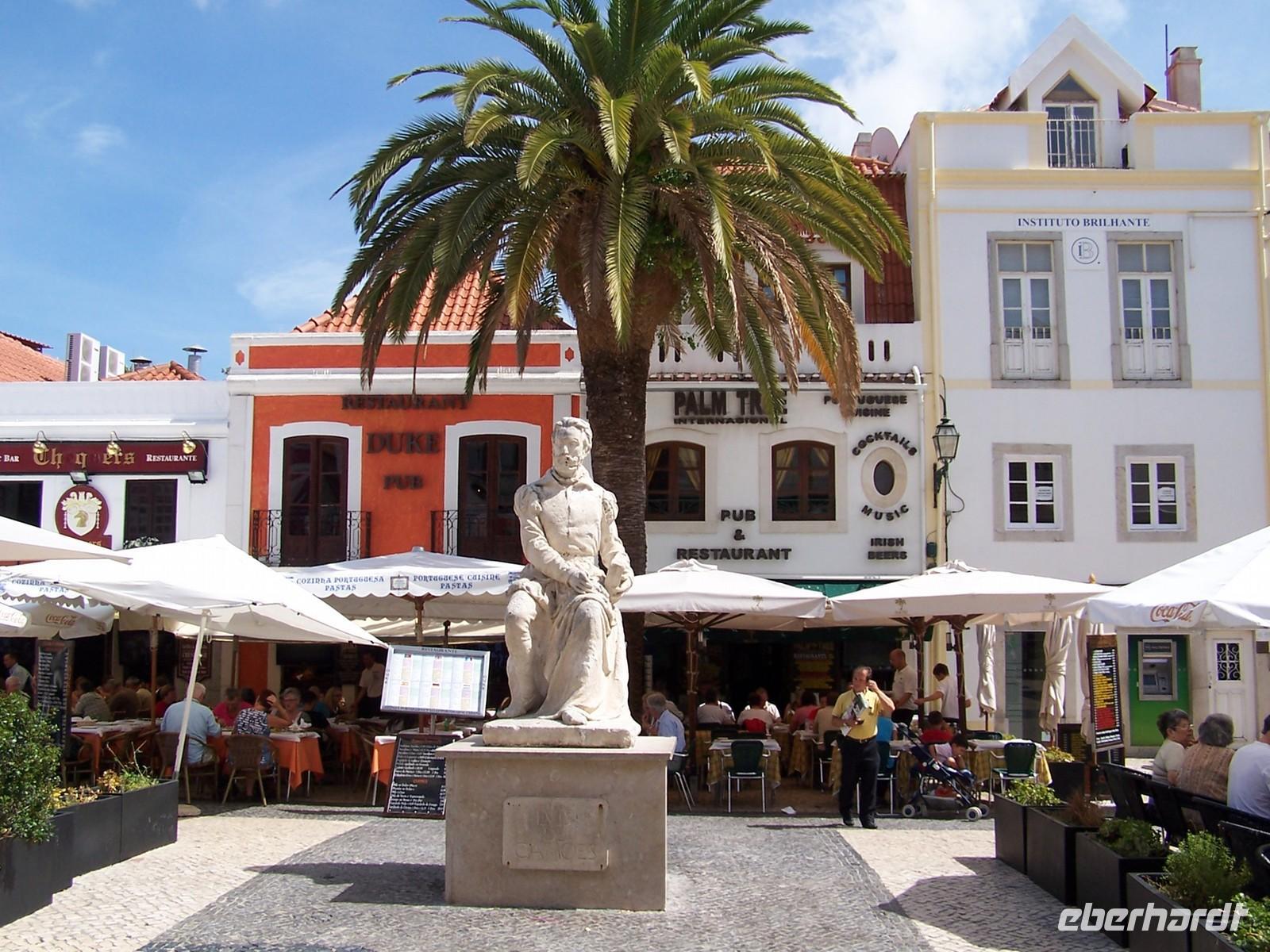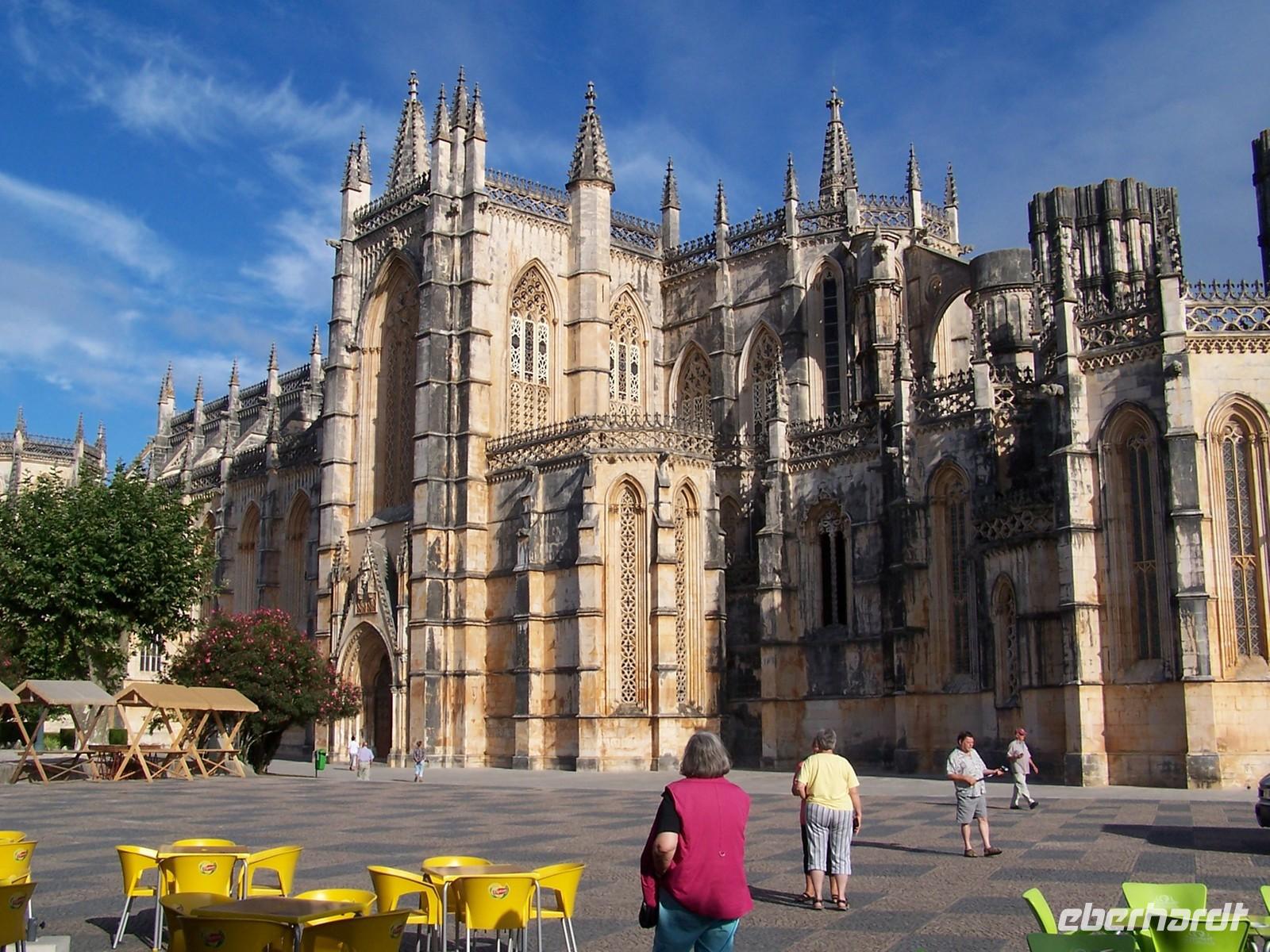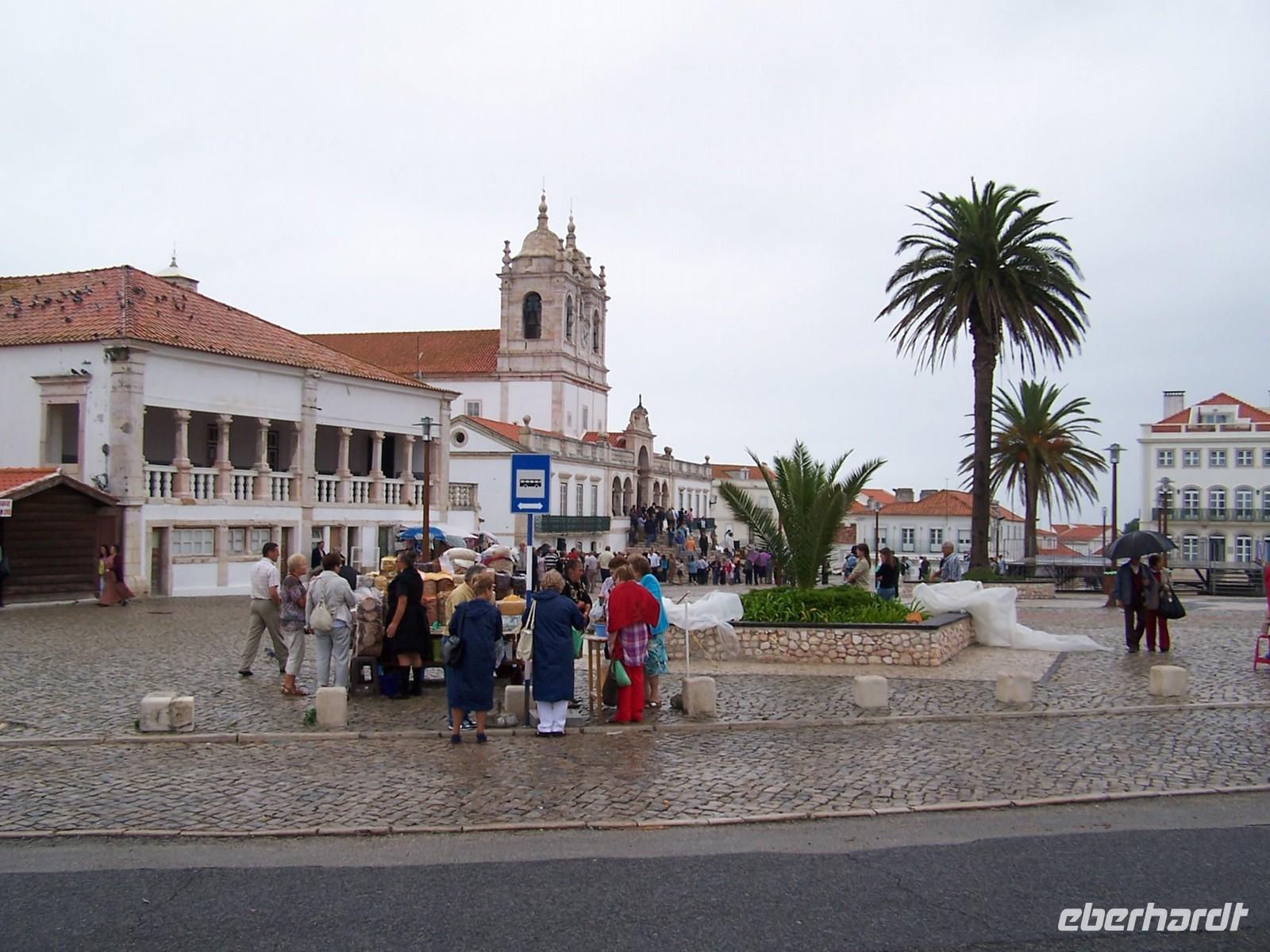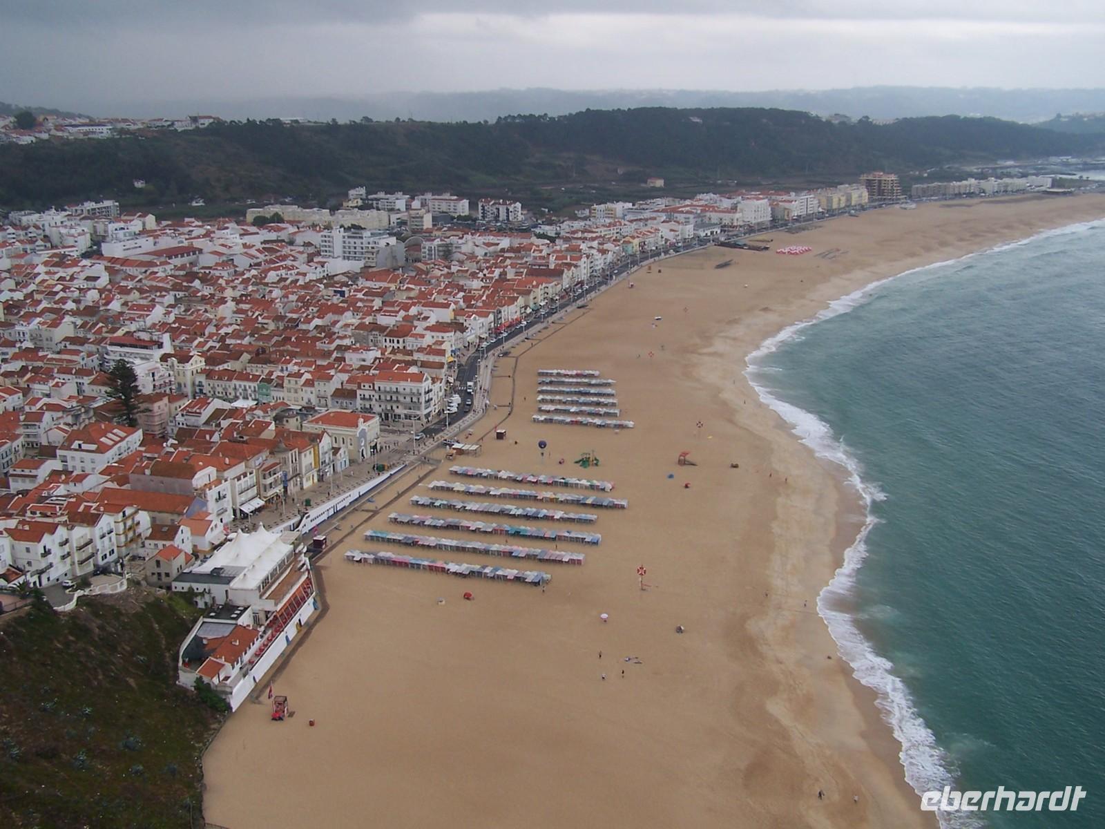 Nach dem Frühstück fuhren wir mit Stefan und unserem deutschen Bus in den Ferienort Nazarè an der portugiesischen Atlantikküste. Auf dem Weg dorthin hielten wir am Kloster von Bathala, dem Mosteiro de Santa Maria de Vitòria. In der Schlacht von Aljubarrota besiegten die Portugiesen die Kastillier und legten den Grundstein für die Unabhängigkeit Portugals sowie für den Bau des Klosters. Von Bathala aus fuhren wir weiter nach Sitio, einem Ortsteil Nazarès, hoch über dem heutigen Badeort gelegen. Direkt an der Aussichtsterrasse befindet sich eine kleine Kapelle und eine Säule, welche an die Gebete Vasco da Gamas in der Wallfahrtskirche Nossa Senhora de Nazarè erinnert. Von Sitio aus fuhren wir hinunter zur Strandpromenade von Nazarè.