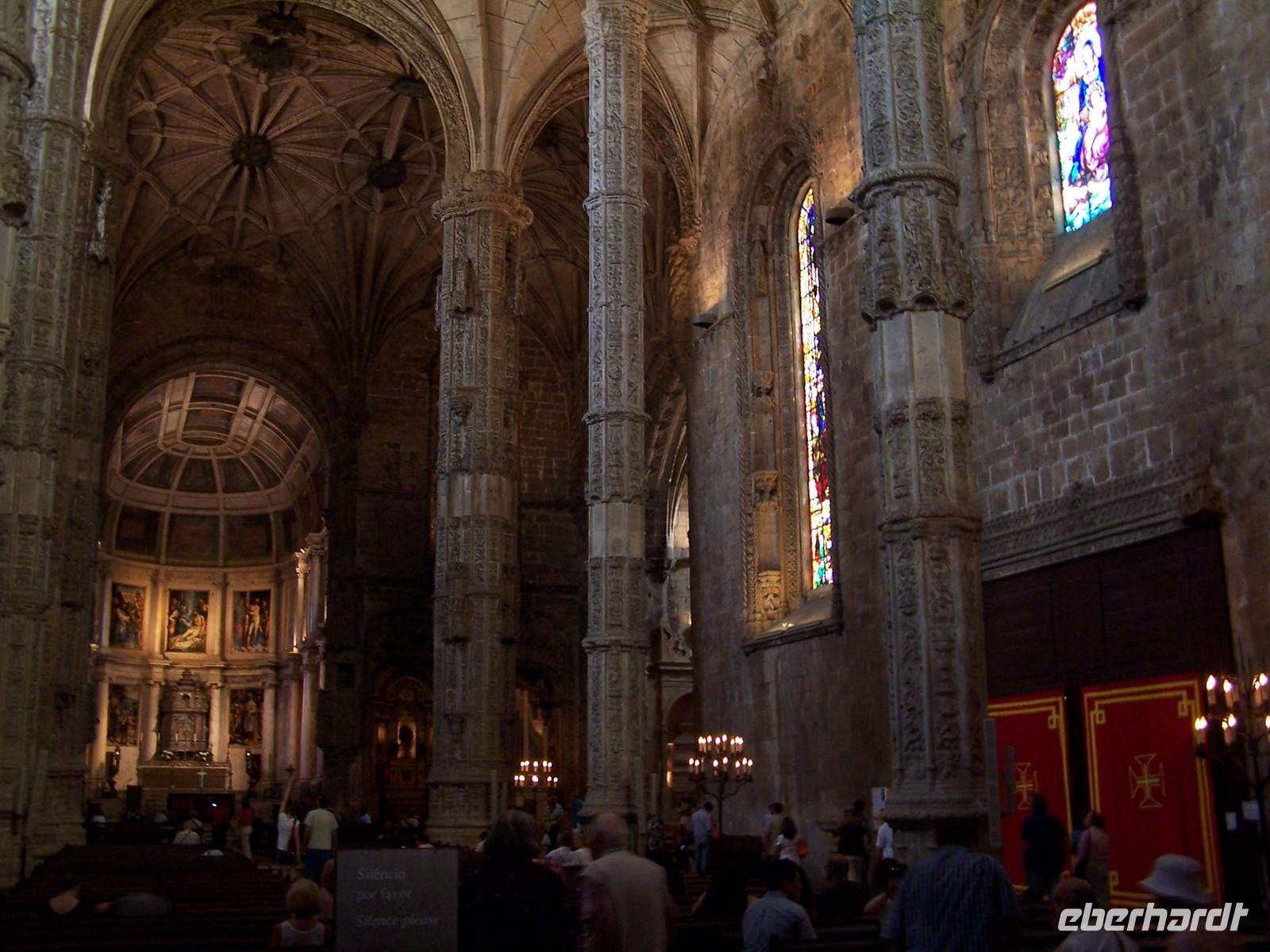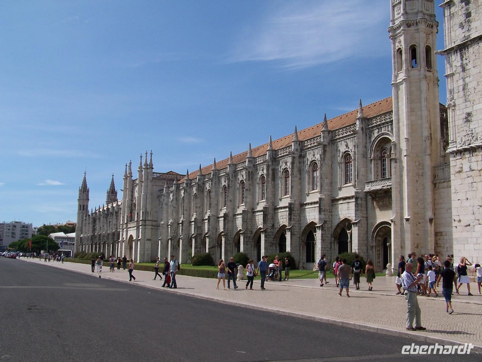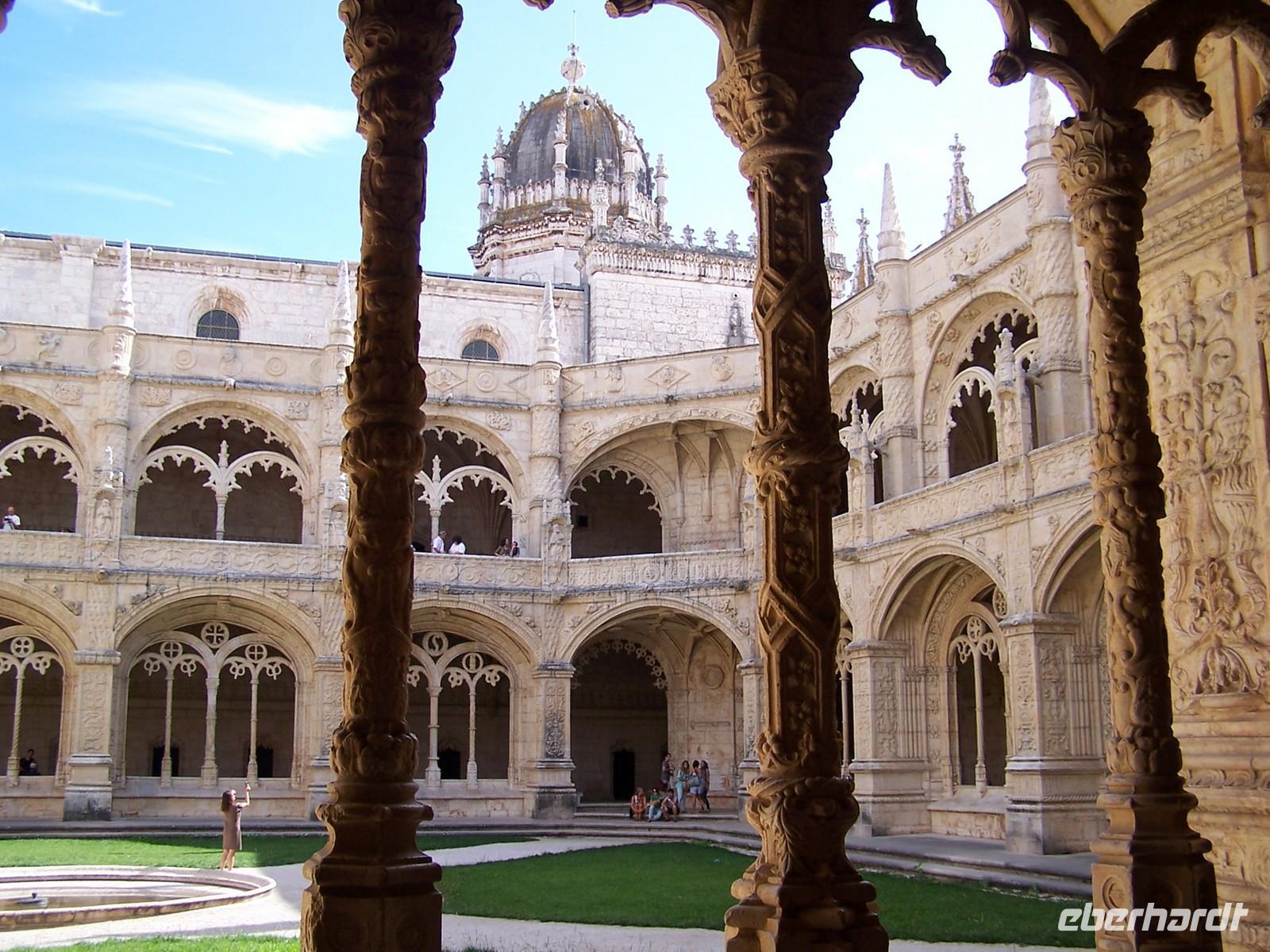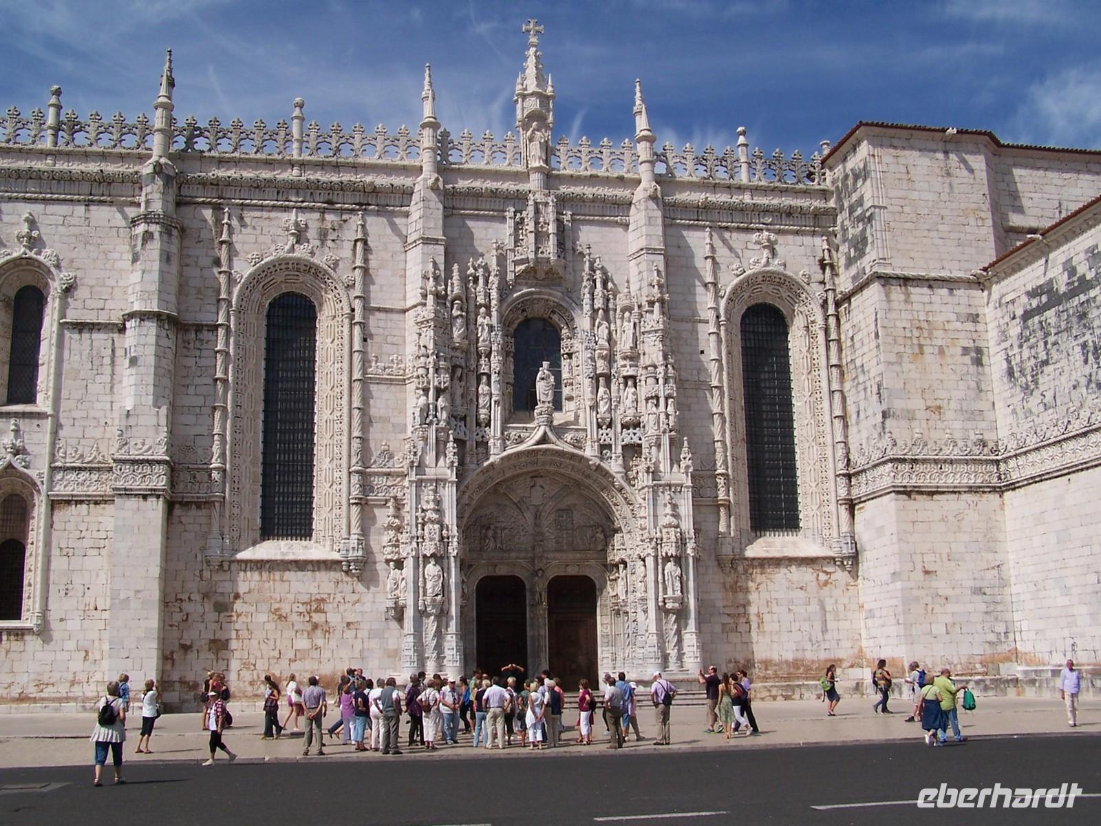 Das erste Tagesziel war die kleine Stadt Sintra und der Palacio Nacional, den wir auch von innen besichtigen konnten. Nach der Kaffeepause fuhren wir weiter an das Cabo da Roca, dem westlichsten Punkt des europäischen Festlandes. Wir hatten eine fantastische Sicht auf die zum Atlantik steil abfallenden, gelb-rötlichen Felsformationen am Kap. Auf der Fahrt nach Cascais beeindruckten uns die endlosen Stränden an der Atlantikküste und die gewaltigen Wellen im Meer, die viele Surfer angelockt hatten. Im farbenfrohen Urlauberort Cascais verbrachten wir unsere Mittagspause. Weiter ging die Fahrt durch Estoril und entlang des Rio Tejo zum Hieronymuskloster nach Lissabon.