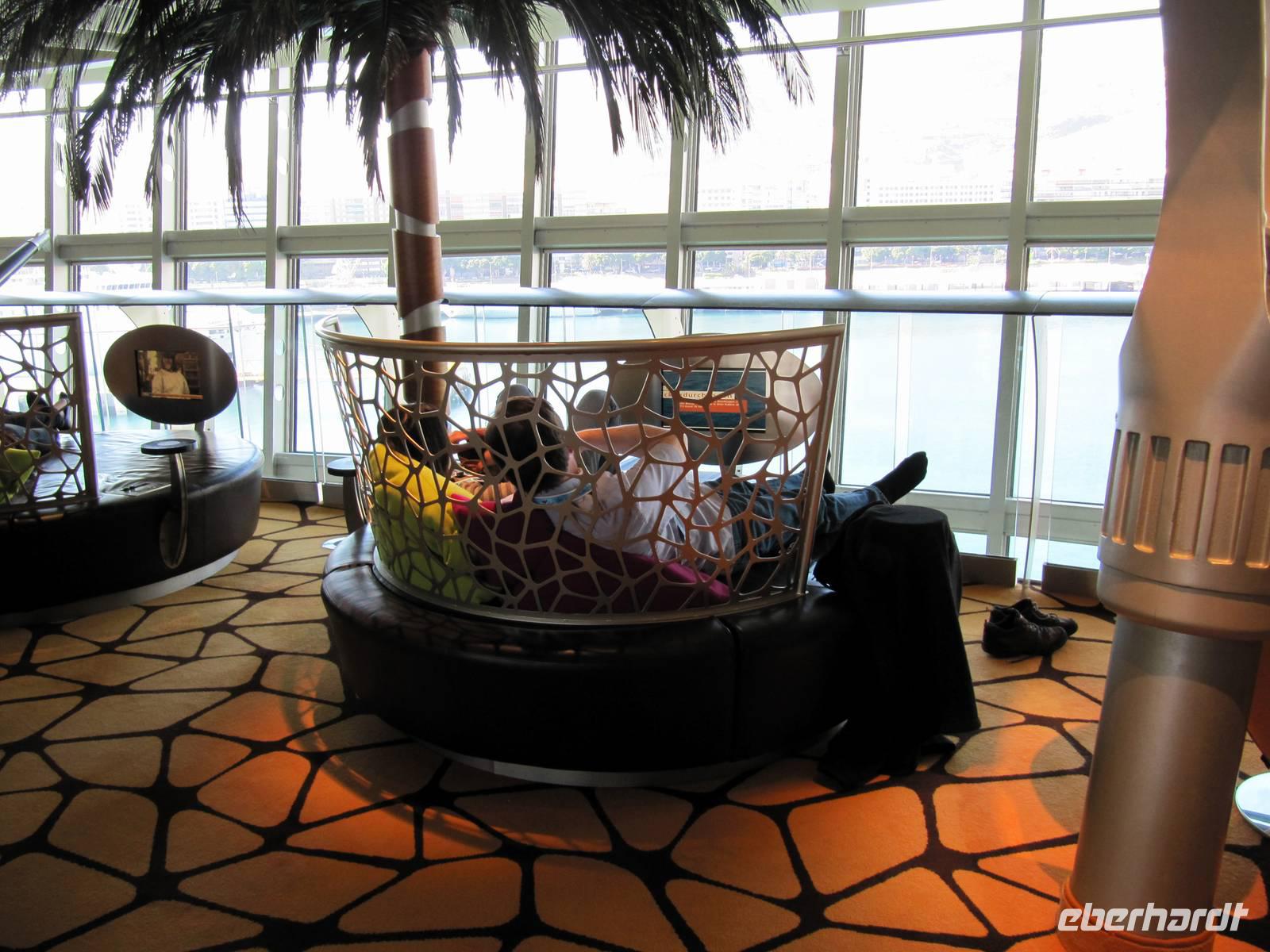 Nach dem Mittagessen konnten wir bereits unsere Kabinen beziehen und uns etwas frisch machen. In zwei Gruppen führte Marion unsere Gäste durch das Schiff: AIDA-Bar, Theatrium, Body & Soul, Body & Sport, 4D-Kino, Pooldeck, Anytime Bar, Vinothek, Shops und Restaurants ... eine gute Hilfe beim Eingewöhnen an Bord. Natürlich berieten wir unsere Gäste auch zu den Ausflugsmöglichkeiten und beantworteten ihre Fragen. Da wir beide bereits an Bord von AIDAsol weilten, konnten wir viele Tipps zum Leben an Bord geben.