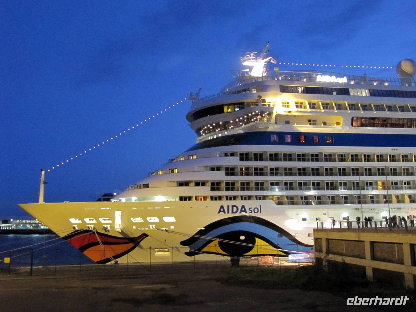 Bereits gegen Mitternacht erreichte die AIDAsol den Hafen von Arrecife auf Lanzarote.