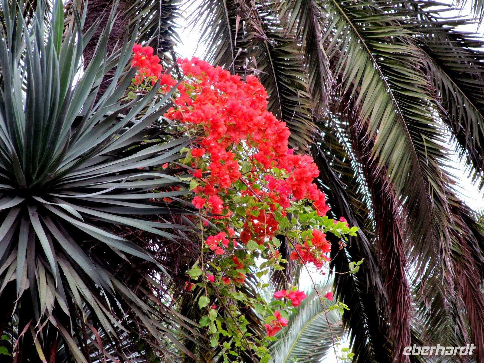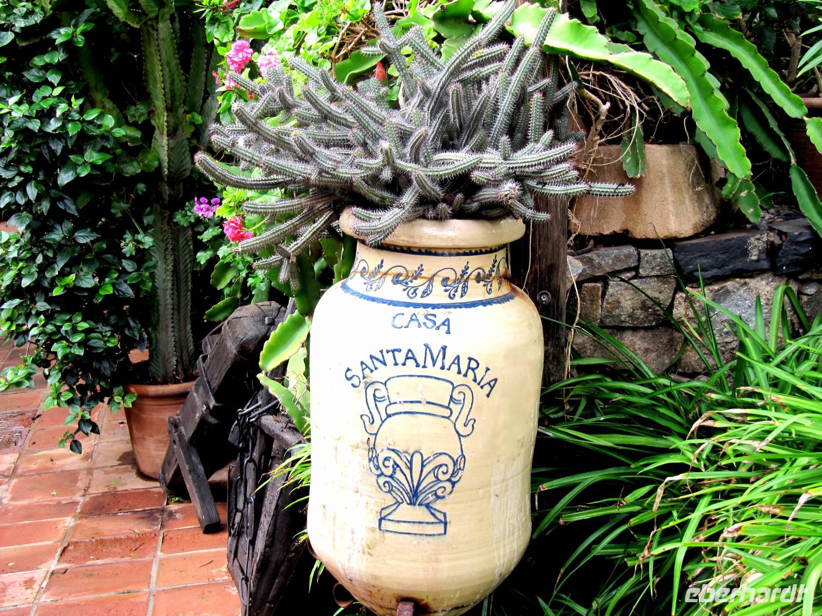 Das Wetter zeigte sich durchwachsen, leider auch mit flüssigem Sonnenschein ... Aber das konnte uns nicht erschüttern. Im Anschluss an das Frühstück war Ausflugszeit angesagt: Wir lernten verschiedene Sehenswürdigkeiten in und um Funchal kennen. Galina bestaunte mit ihren Gästen zuerst den Santa-Catarina-Garten mit prachtvollen Pflanzen und Blüten aus vielen Ländern der Erde, der kleinen Kirche mit dem Denkmal für Christoph Kolumbus und am Ende des Parks das Denkmal, das an Heinrich den Seefahrer erinnert. Nach einem Spaziergang in der Altstadt und dem Besuch der berühmten Markthalle von Funchal „schwebten" sie mit der Seilbahn hinauf nach Monte, um den Monte-Palace-Garten zu besuchen. Auch wenn das Wetter wirklich sehr durchwachsen war, der Blütenzauber und die Fülle der Pflanzen erfreute das Herz und so waren Wind und Regen schnell vergessen.