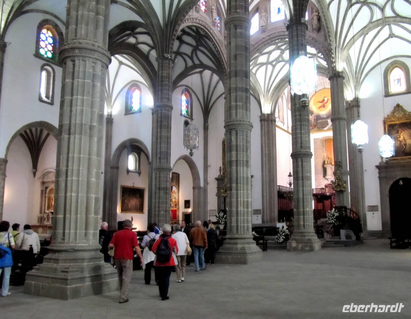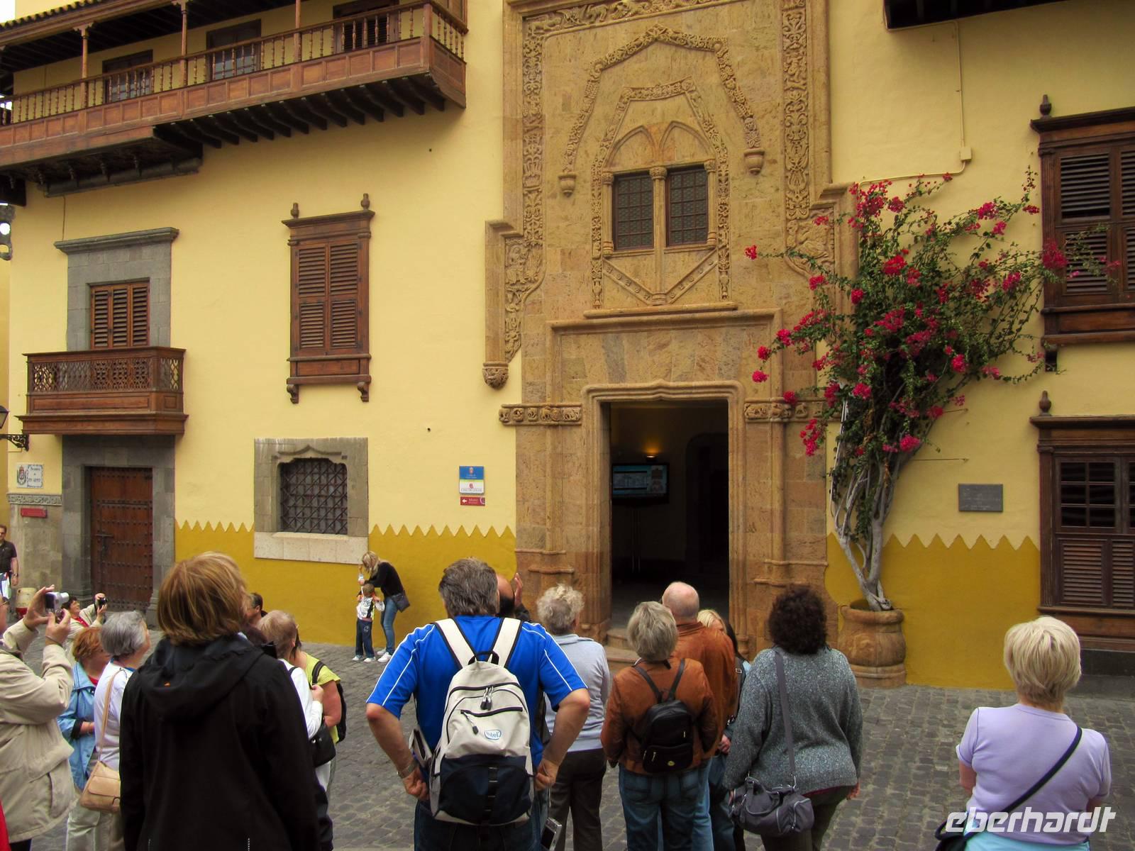Anschließend spazierten wir in der Altstadt, der Barrio de la Vegueta, und besuchten das Kolumbushaus. Das Museum zeigte uns sehr anschaulich, wie Christoph Kolumbus die neue Welt entdeckte und dass die Schiffe des Seefahrers auf ihrem „Weg nach Indien" in Las Palmas Zwischenstation machten. Interessant auch die Schiffsmodelle und der Nachbau der Kajüte des Kolumbus mit seinem Bett und Schreibtisch, einschließlich der Seekarten und Messinstrumente. Später spazierten wir durch enge, Kopfstein gepflasterte Gassen entlang von herrschaftlichen Häusern im Kolonialstil zur Kathedrale Santa Ana. Im Inneren beeindruckte die gotische und neoklassische Ausstattung. Über den Hauptplatz und vorbei am Rathaus der Stadt erreichten wir den Bus zur Rückfahrt zum Hafen.