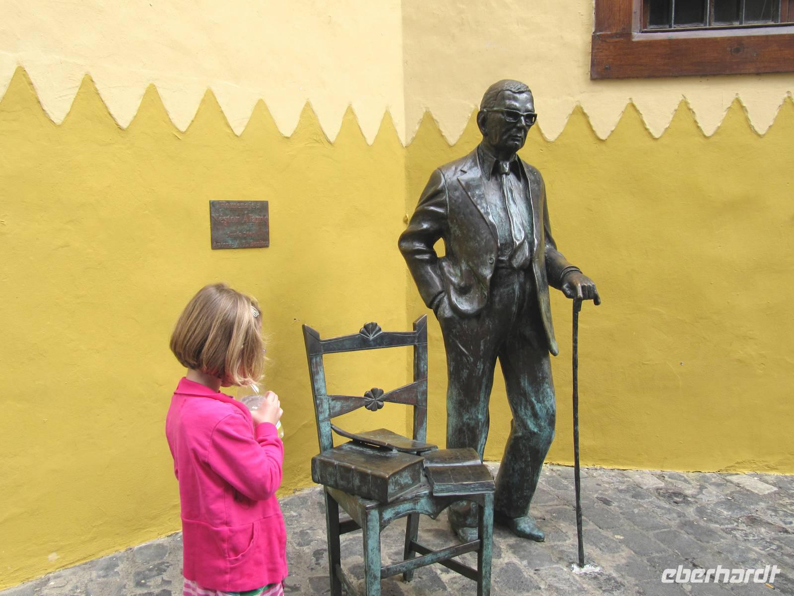 Miguel hatte eine Überraschung für uns: Vier Jahre gehörte er zu den berühmten Zwergentänzern der Insel. Seit 1680 findet aller fünf Jahre das größte Inselfest, Bojada de la Virgen, statt. Dort wird der Zwergentanz aufgeführt: Die Männer tanzen 12 Stunden mit großen Masken und zusammengebundenen Oberschenkeln. Er zeigte uns einen Film und machte uns so mit dieser einzigartigen Tradition vertraut. Ulrike und Miguel präsentierten uns ihre Trauminsel mit großer Freude und Herzlichkeit. Vielen, lieben Dank! La Bonita und La Verde, die Schöne und die Grüne, so haben wir La Palma gesehen ...