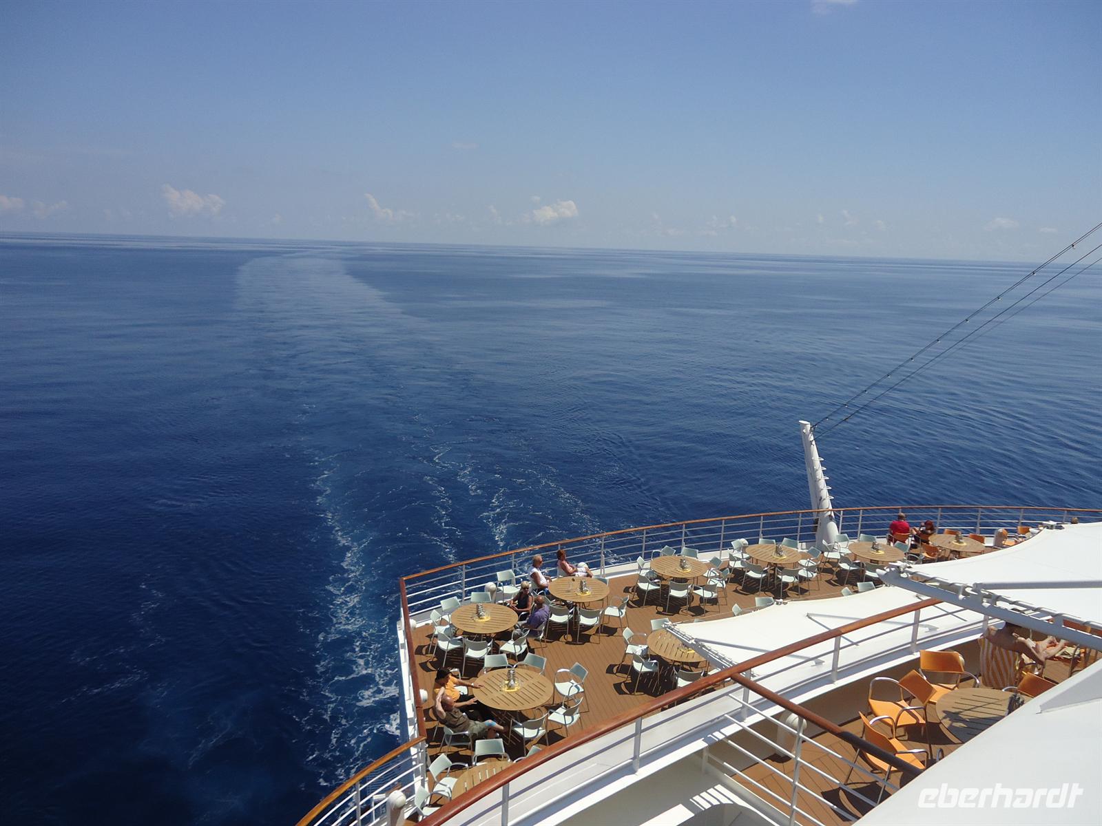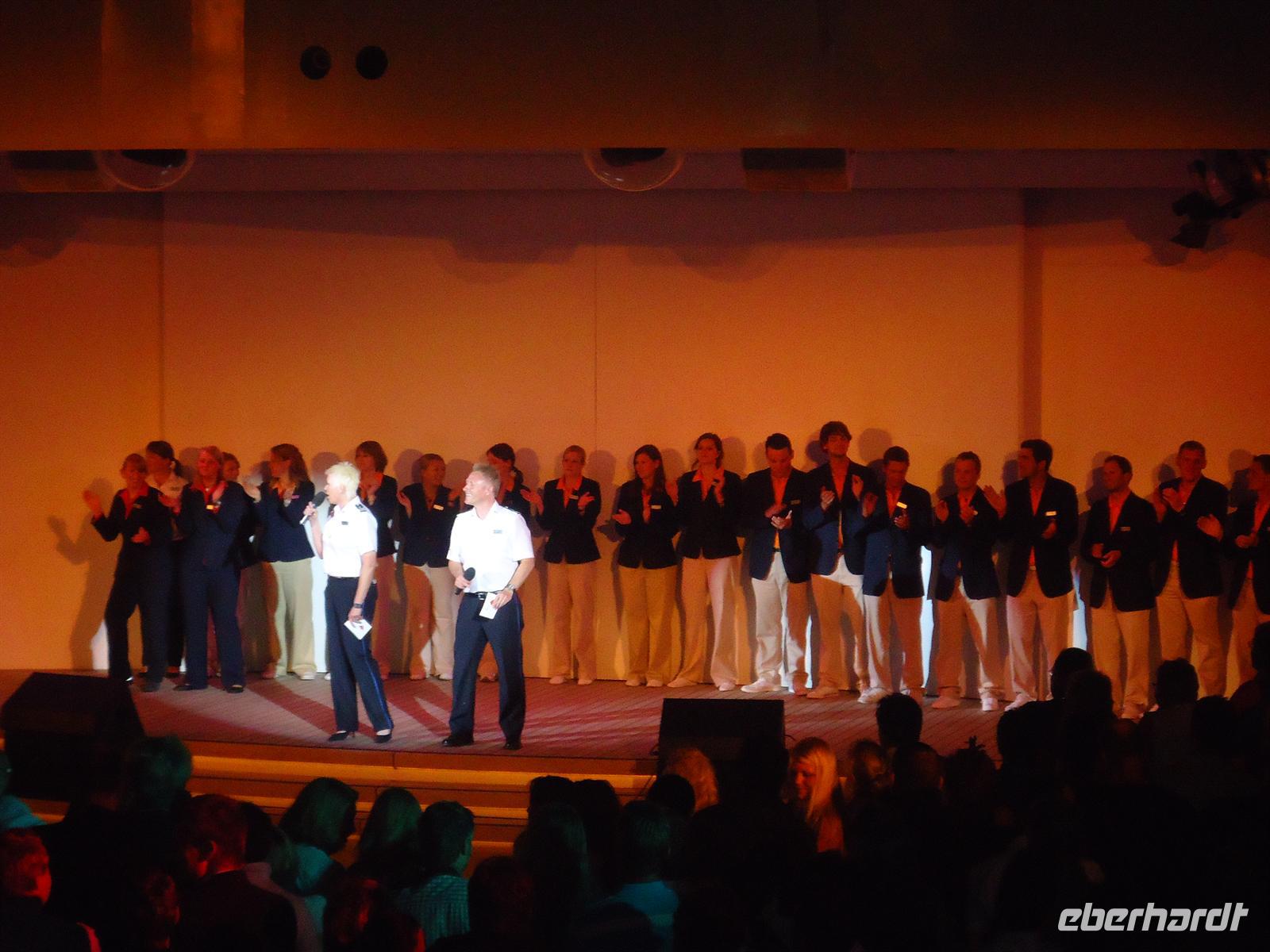 Heute hieß es entspannen auf See. Kurz nach 10.00 Uhr begann unsere Seenotrettungsübung und anschließend versammelten wir uns in der AIDA Lounge zum Begrüßungssekt von Eberhardt
