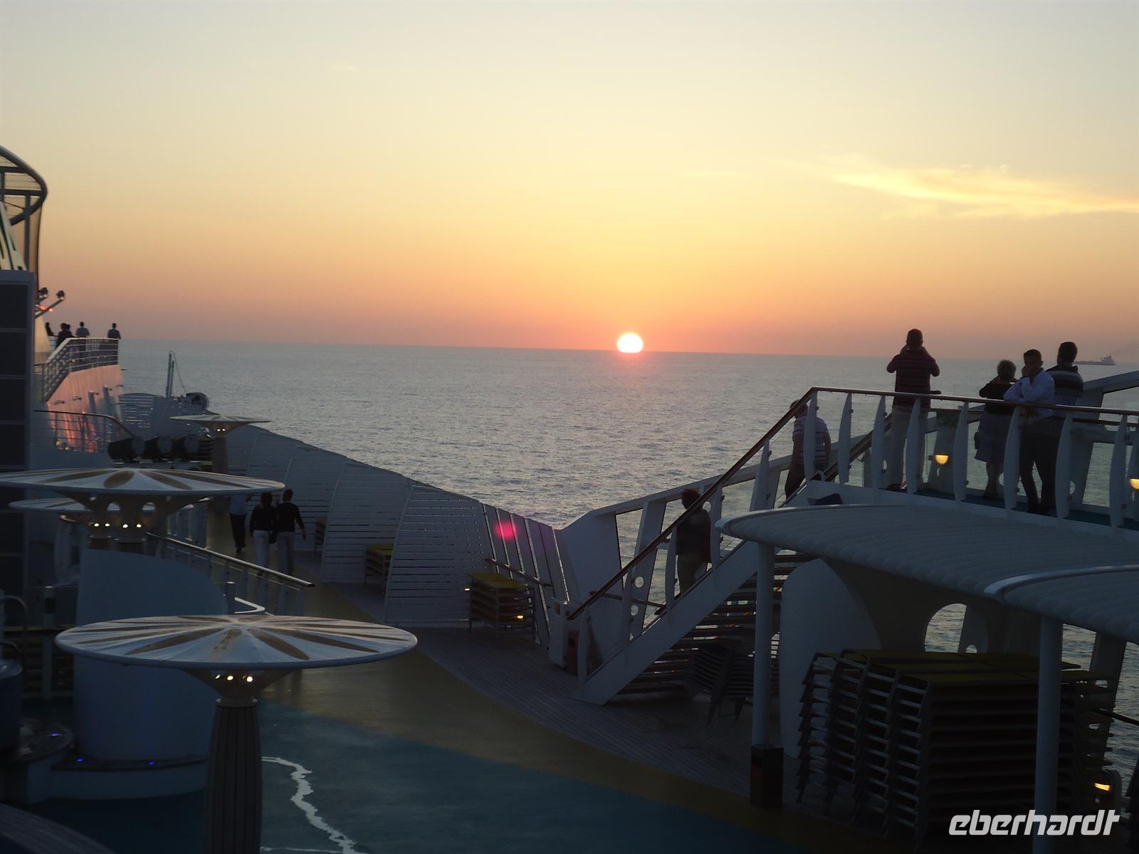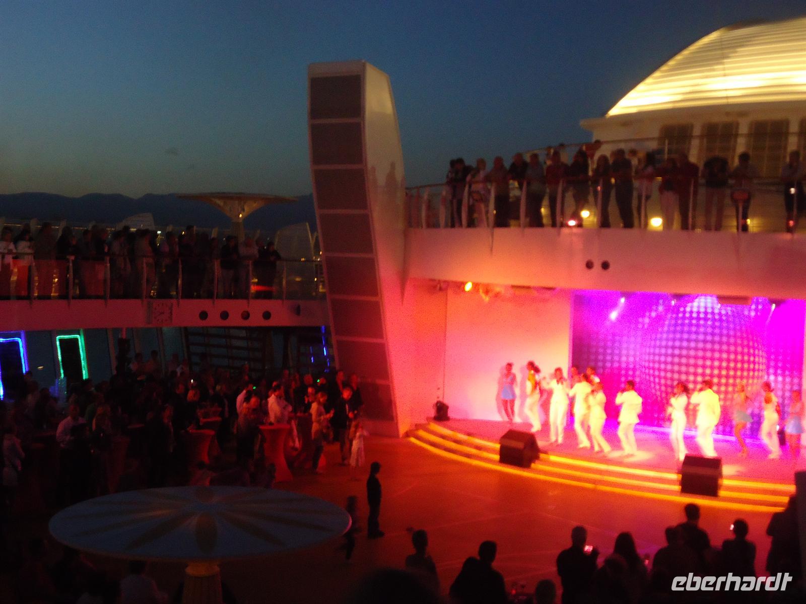 Travel. Auch einige Offiziere begrüßten uns persönlich. Anschließend unternahmen wir mit Club-Animateur Tobias einen Schiffsrundgang um eine kleine Orientierung zu bekommen. Ich glaube aber erst an den letzten Tagen wussten wir wirklich wo sich was befindetJ. Den restlichen Tag nutzen wir um die Wellness Anwendungen im Spa-Bereich zu genießen oder sich am Pool-Bereich zu sonnen und die Seele baumeln zu lassen.
