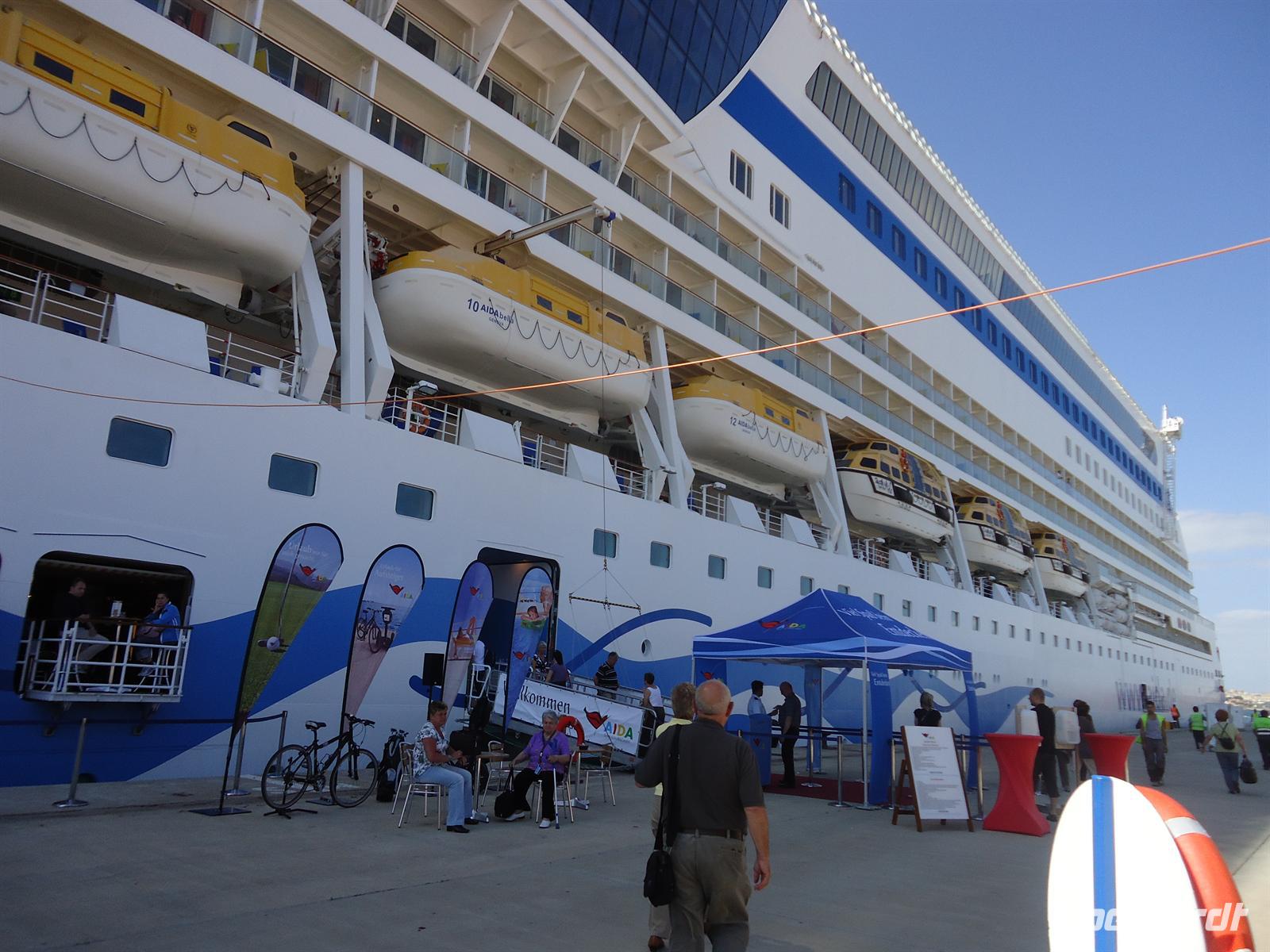 Ausgeschlafen und wieder mit einem Lächeln im Gesicht machten wir uns mit dem örtlichen Reiseleiter Francisco auf den Weg zu einer Rundfahrt durch den Westen Mallorcas. Auch wenn es noch früh war, fuhren wir in das Weingut „Taujana“ und nahmen an einer Weinverkostung teil. Um 17.00 Uhr erreichten wir den Hafen von Palma. Unser Schiff die „AIDA BELLA“ lag schon am Hafen bereit. Unkompliziert und schnell verlief der Check-Inn. Wir mussten lediglich unsere Reiseunterlagen vorlegen, unsere Zahlungsart angeben und einmal nett in die Kamera lächeln und schon hielten wir unsere Bordkarte in der Hand. Voller Vorfreunde bezogen wir unsere Kabinen und erkundeten auf eigene Faust das riesige Schiff. Beim reichhaltigen Abendessen ließen wir den Abend gemütlich ausklingen. Drei Restaurants standen uns zur Verfügung mit zahlreichen kulinarischen Gerichten, da fiel die Entscheidung immer schwer wo man isst und was man isst. Bevor wir aber alle zu Bett gingen, verabredeten wir uns noch 21.30 Uhr an Deck um gemeinsam die Ausfahrt zu erleben, dazu wurde uns von AIDA ein Willkommenssekt gereicht. Um 22.00 Uhr hieß es Leinen los und unsere Kreuzfahrt begann.