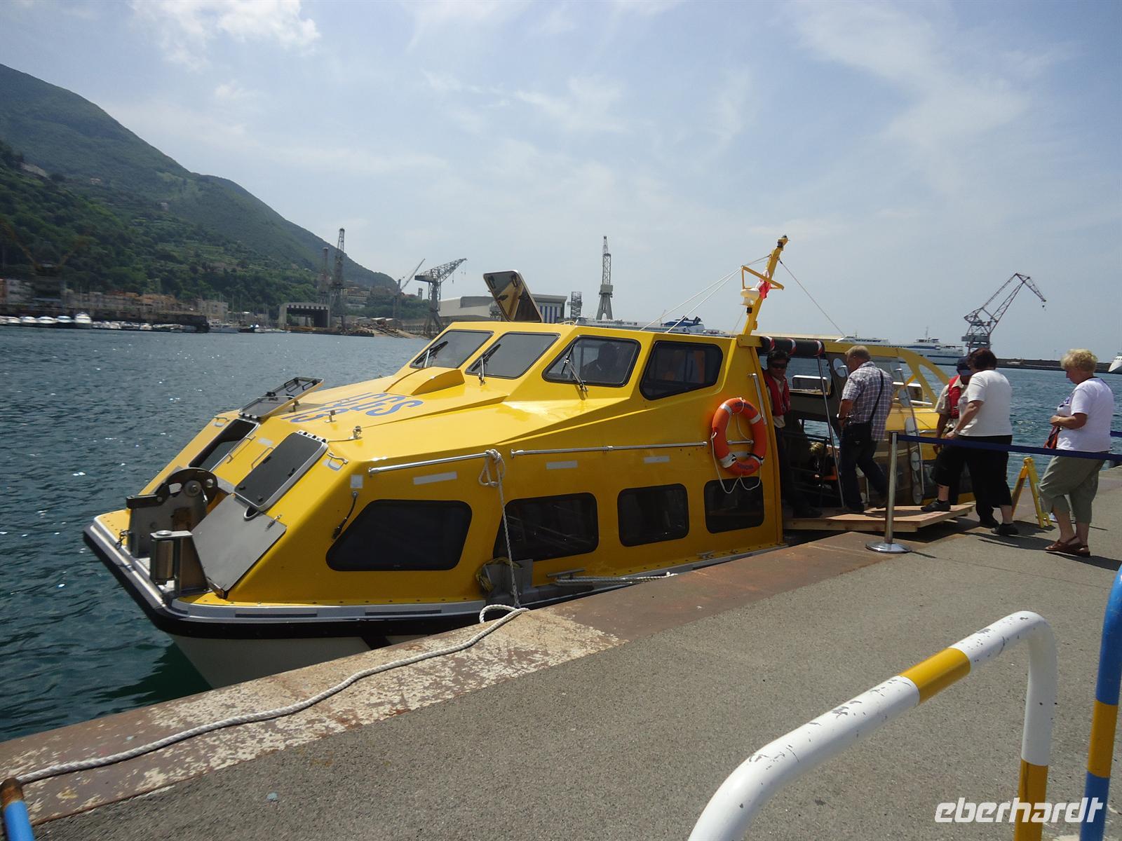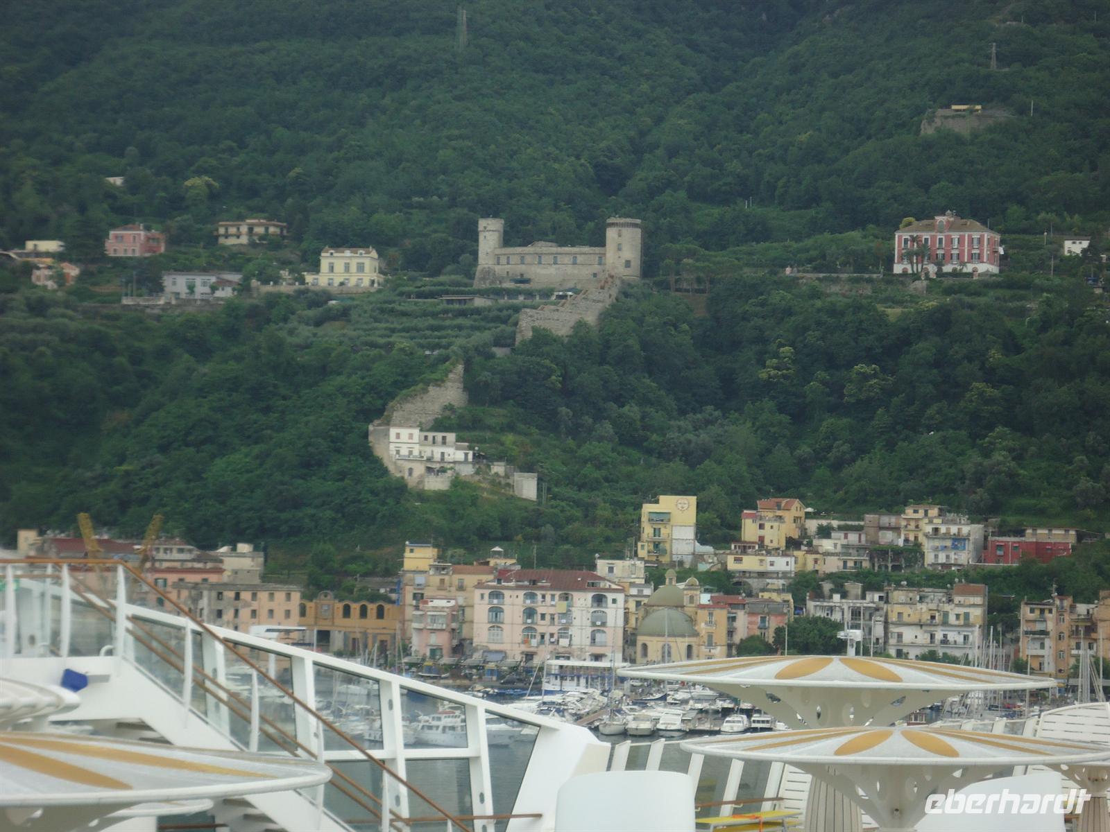Um 08.00 Uhr legten wir im Hafen Castellammare di Stabia an, da wir nicht direkt in den Hafen von Neapel einfahren durften. Um an Land zu kommen wurden wir mit den Tenderbooten vom Schiff zu Land gebracht. Einige aus unserer Reisegruppe bestiegen mutig den Vesuv, bestaunten Pompeji oder unternahmen eine Fahrt mit der Fähre auf die Insel Capri. Die meisten fuhren aber mit mir direkt nach Neapel. Dort besichtigen wir unter anderem die Jesuitenkirche Gesu Nuovo sowie die Kirche Santa Chiara. In der Freizeit schlenderten wir durch die zahlreichen Gassen und besuchten auch die Weihnachtsstraße. Dort konnte man viele Krippen oder Engelchen erwerben. Zum Schluss besuchten wir noch die Galleria Umberto -eines der zahlreichen Einkaufszentren Neapels. Sie ist mit einer großen Glaskuppel überdacht und liegt direkt gegenüber dem weltberühmten Opernhaus Teatro San Carlo. Um 15.00 Uhr erreichten wir wieder unser Schiff.