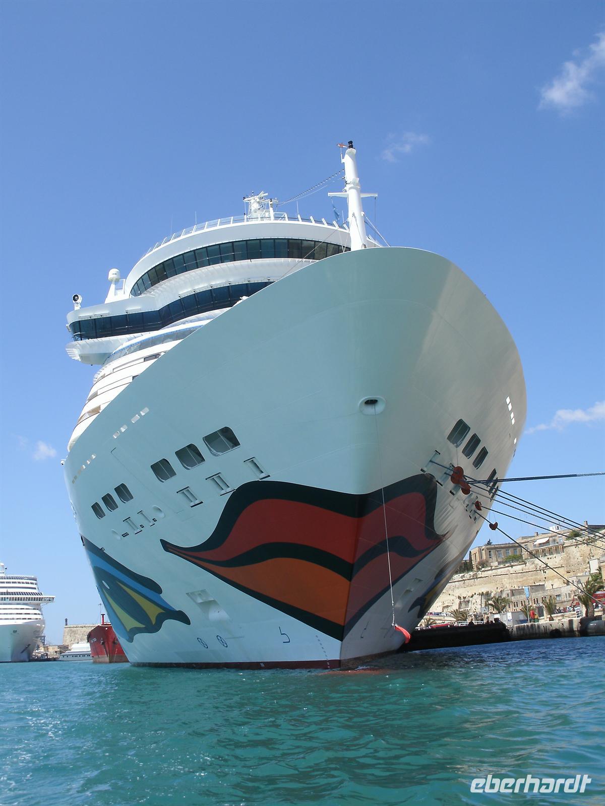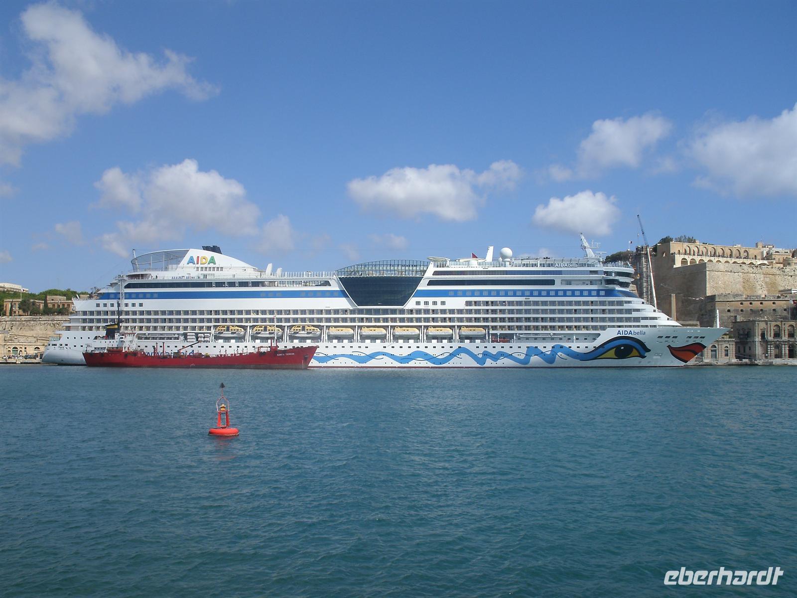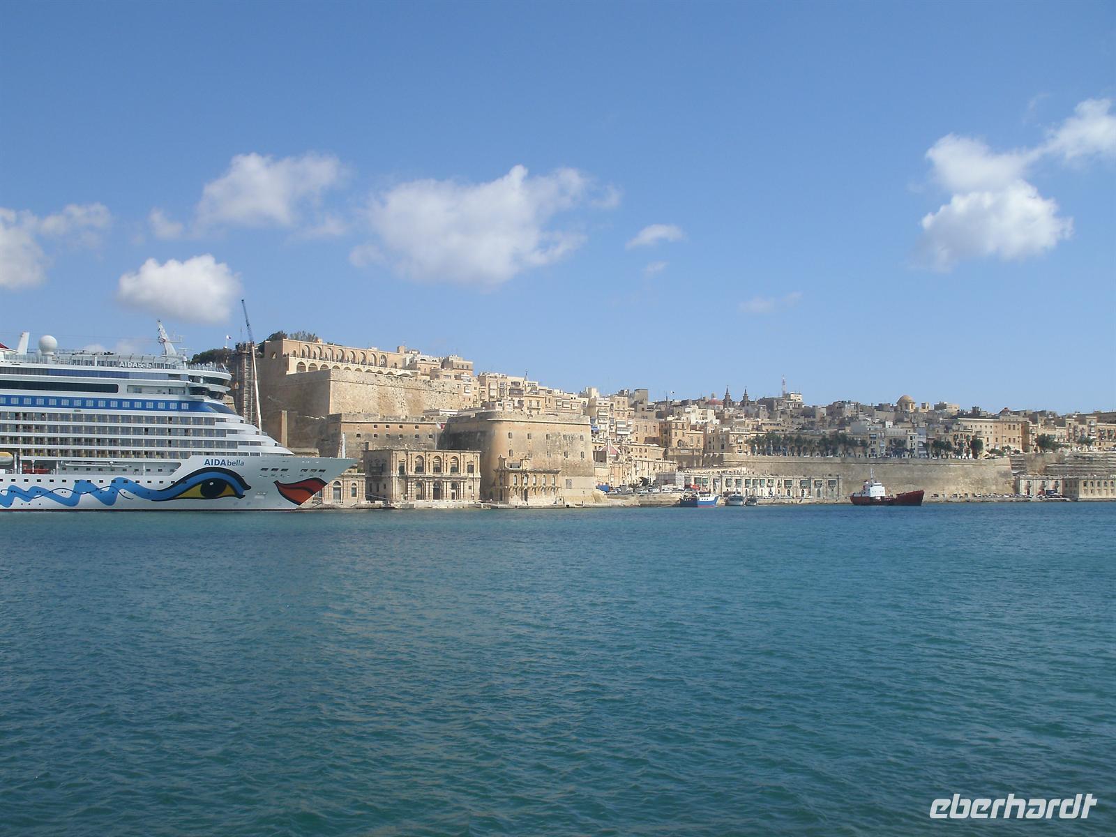 Am Morgen erreichten wir Valletta. Die meisten genossen die wunderschöne Einfahrt von Deck aus oder bewunderten diese im Restaurant beim Frühstück. Der größte Teil der Gruppe buchte den Ausflug: "Drei-Städte-Tour". Unsere örtliche Reiseleitung führte uns zuerst nach Senglea. Bei einem Spaziergang durch die historische Stadt hatten wir einen fantastischen Ausblick von der Bastion auf den großen Hafen sowie zu unserem Schiff. Danach unternahmen wir eine Bootsfahrt mit traditionellen Dghajas - auf den maximal sechs Gäste Platz hatten. Sogar kleine AIDA Schiffe fuhren hier. Während dieser Bootsfahrt kamen wir so nah an unsere "AIDAbella", das uns hier bewusst wurde, welch eine Größe dieses Schiff besaß. Zum Abschluss fuhren wir ins Fischerdorf Marsaxlokk. Die Stadt besitzt eine schöne Bucht, voll mit farbenprächtigen, traditionellen maltesischen Booten, den Luzzu Booten. Am Nachmittag erreichten wir wieder unser Schiff. Der restliche Nachmittag stand uns wieder frei zur Verfügung. Viele haben noch einmal individuell die Hauptstadt La Valletta zu Fuß besucht, denn diese liegt nur wenige Gehminuten oberhalb des Hafens.