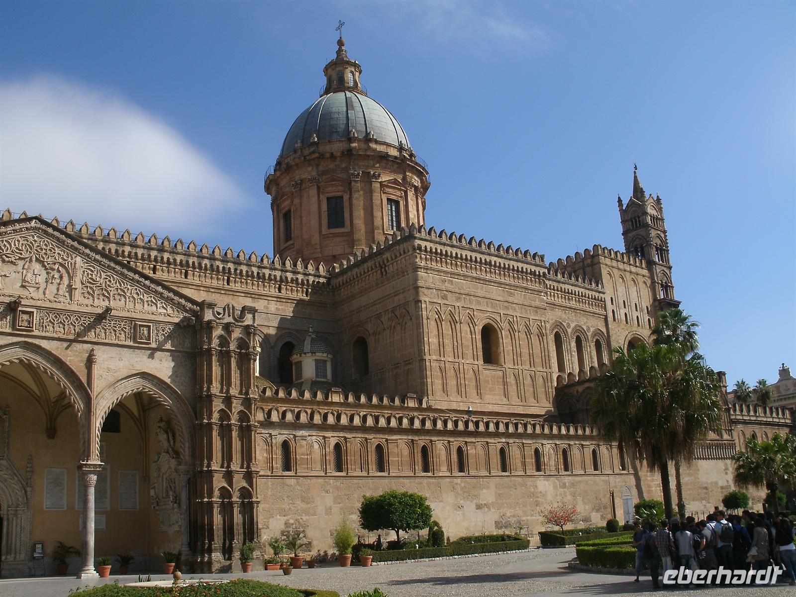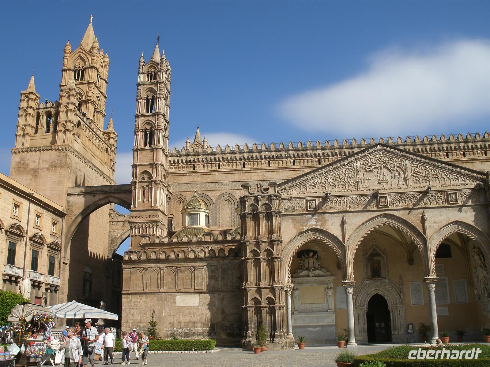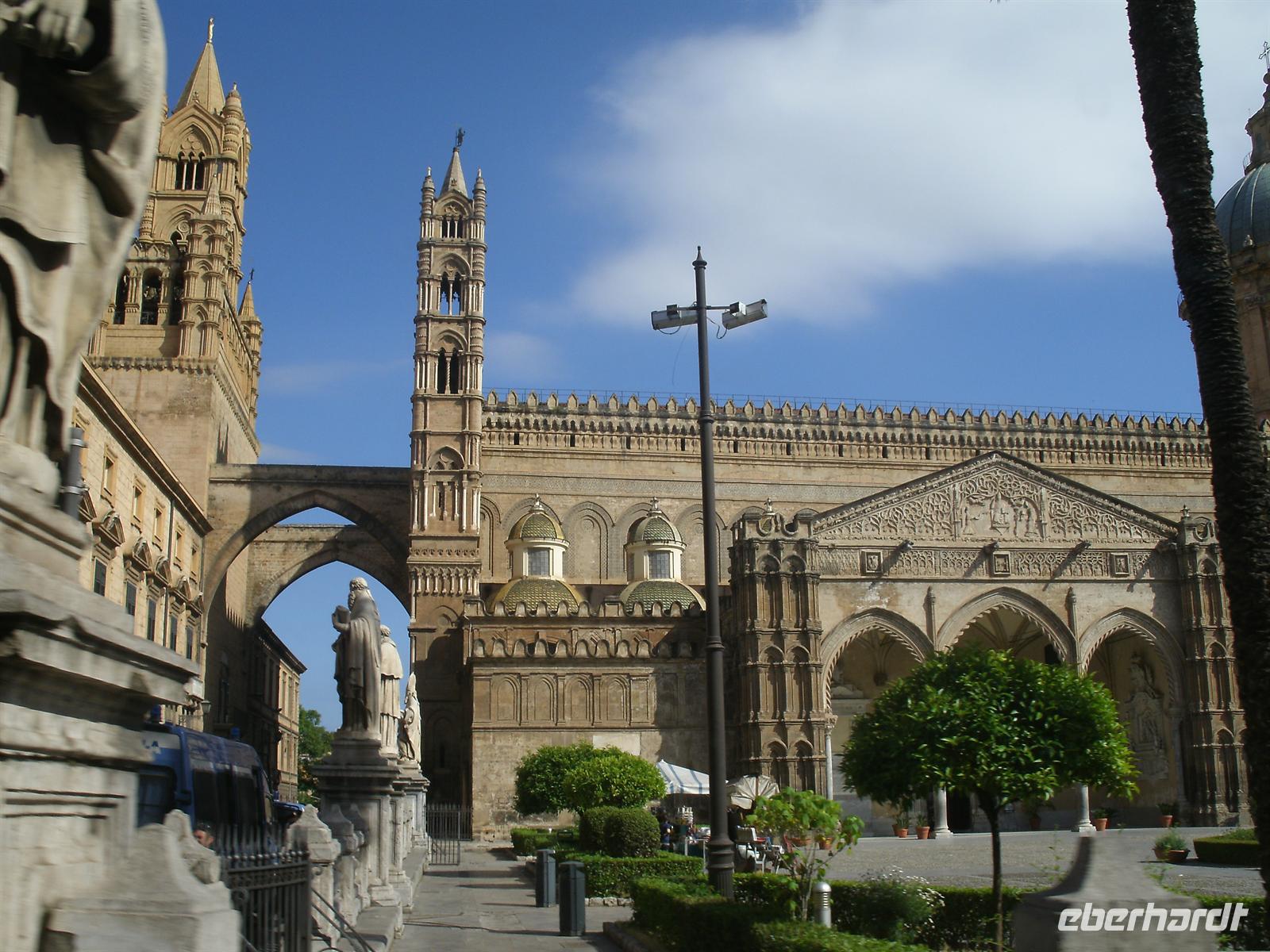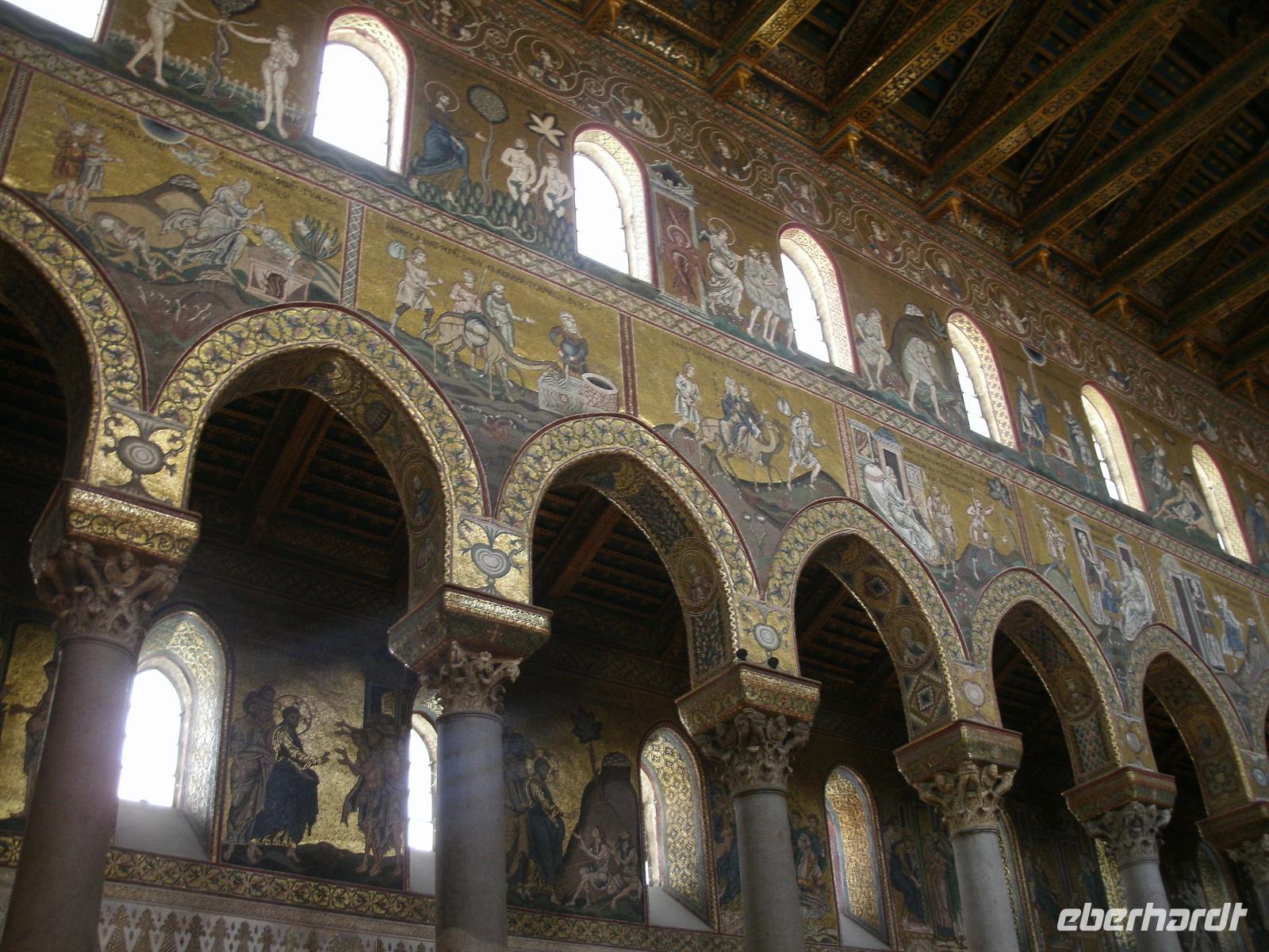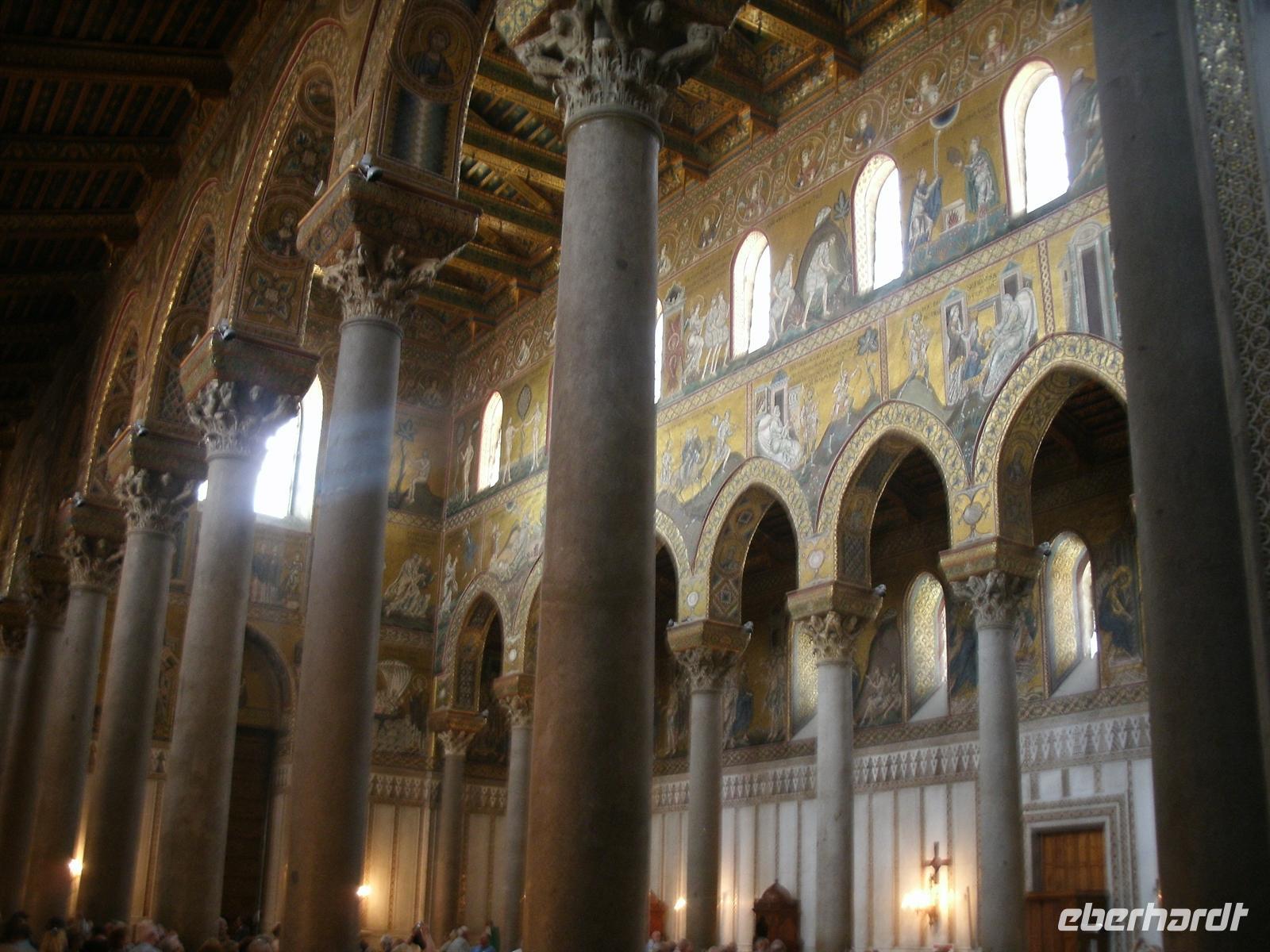 Sizilien begrüße uns bei strahlend blauen Himmel. Die größte Insel Italiens ist als Sonneninsel bekannt. Der Ausflug heute wurde exklusiv von Eberhardt TRAVEL organisiert. Unsere örtliche Reiseleiterin Erminia empfing uns am Schiff. Zunächst unternahmen wir eine kleine orientierende Stadtrundfahrt durch Palermo. ein kleiner Zwischenstopp an der Kathedrale im Stadtzentrum durfte hierbei nicht fehlen. Im Anschluss fuhren wir nach Monreale. Hier befindet sich der wohl schönste Dom. Der Normannenbau aus dem 12. Jahrhundert ist eine Symbiose aus romanischer, arabischer und byzantinischer Kunst. Die goldenen Mosaiken im Innenraum glänzen nur so vor sich hin. Nach einer ausgiebigen Besichtigung fuhren wir nach Castelbuono. Hier schlenderten wir entlang der Gassen und verkosteten unterwegs bei einer Pasticceria verschiedene Liköre z.B. Orangenlikör und Brot mit Pistazienaufstrich. Unser Mittagessen nahmen wir auf einem typischen Landgut ein. Herzlich empfangen wurden wir von einem Musiker, der uns auch während des ganzen Aufenthaltes mit sizilianischer Musik unterhielt. Uns wurde ein köstliches Menü gezaubert und als Nachtisch gab es natürlich frisch gepflügte Mandarinen, so saftig und frisch bekommt man sie wohl sonst nirgends. Gestärkt vom Mittag fuhren wir mit dem Bus zu unserem Schiff zurück.