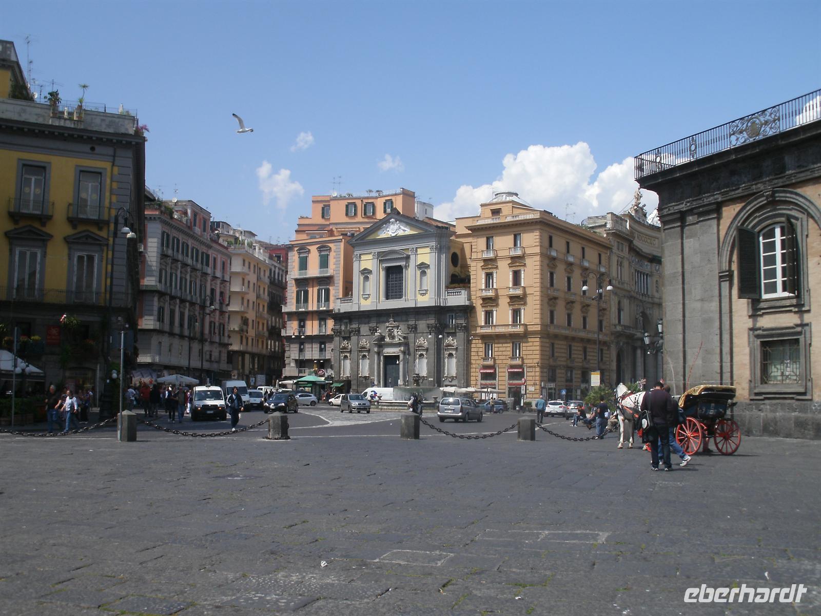 Einige aus unserer Reisegruppe bestiegen heute mutig den Vesuv, bestaunten Pompeji oder unternahmen eine Fahrt entlang der zauberhaften Amalfiküste. Die meisten fuhren aber mit mir direkt nach Neapel. Zuinächst besuchten wir die Galleria Umberto, eines der zahlreichen Einkaufszentren Neapels. Sie ist mit einer großen Glaskuppel überdacht und liegt direkt gegenüber dem weltberühmten Opernhaus Teatro San Carlo. Danach konnten wir einen original italienischen Cappuccino oder Espresso genießen. Weiter ging es mit dem Bus innerhalb Neapels bis zur Jesuitenkirche Gesu Nuovo sowie zur Kirche Santa Chiara. In unserer Freizeit schlenderten wir durch die zahlreichen Gassen und besuchten auch die Krippenstraße. Dort konnte man viele Krippen oder Engelchen erwerben.
