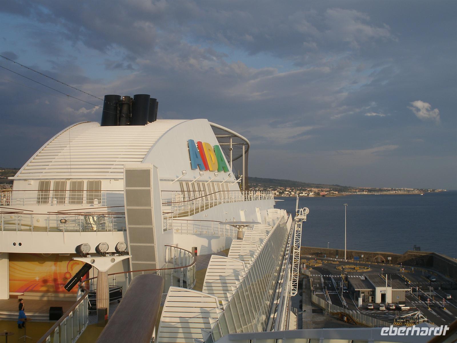 Heute hieß es entspannen auf See. 11.00 Uhr haben wir uns in der AIDA Lounge zum Begrüßungssekt von Eberhardt TRAVEL getroffen. Basti, ein Crewmitglied, unternahm mit uns im Anschluss einen Schiffsrundgang um eine kleine Orientierung zu bekommen. Ich glaube aber erst an den letzten Tagen wussten wir wirklich wo sich was befindet. Den restlichen Tag nutzen wir um die Wellness-Anwendungen im Spa-Bereich zu genießen oder sich am Pool-Bereich zu sonnen und die Seele baumeln zu lassen.