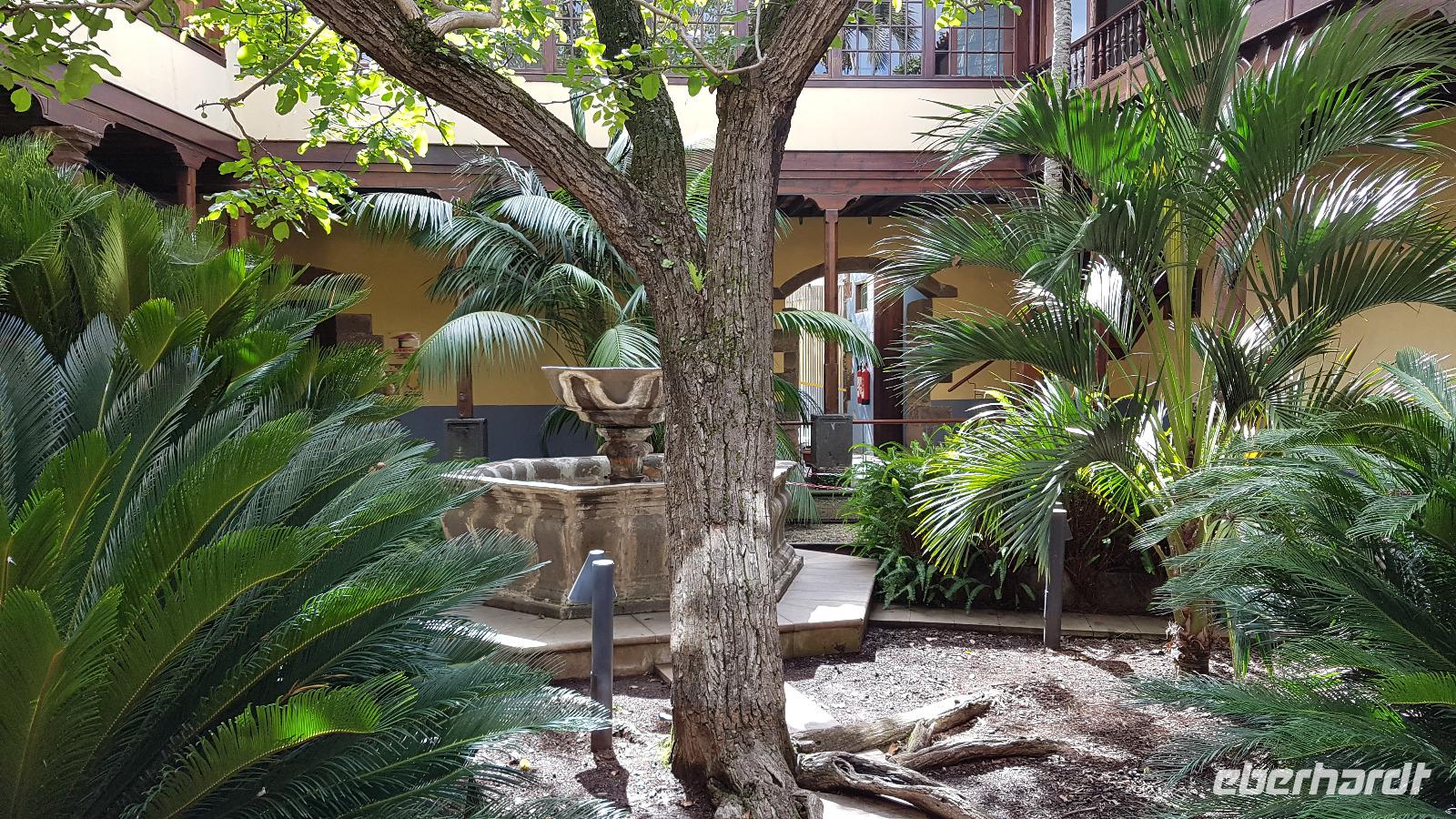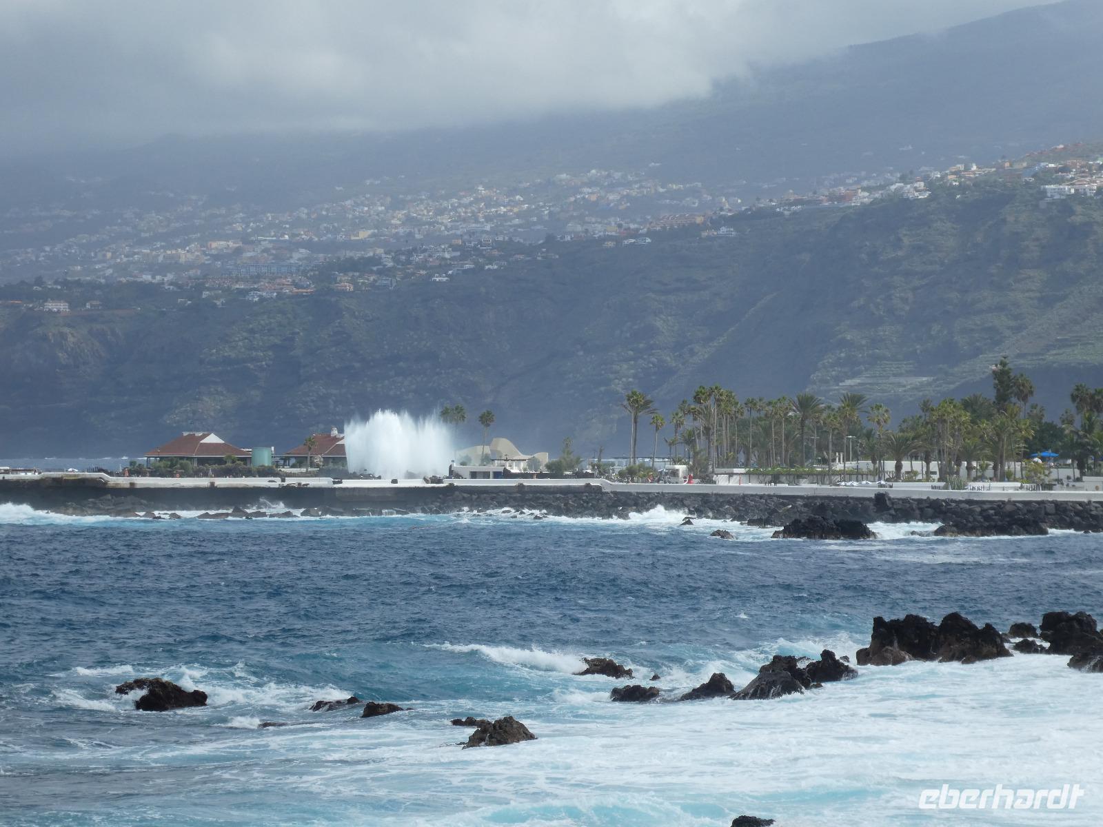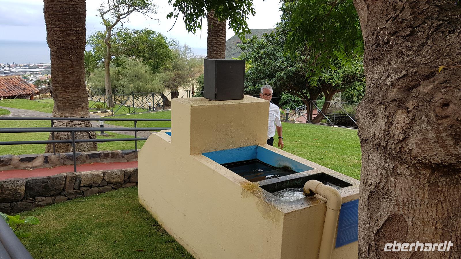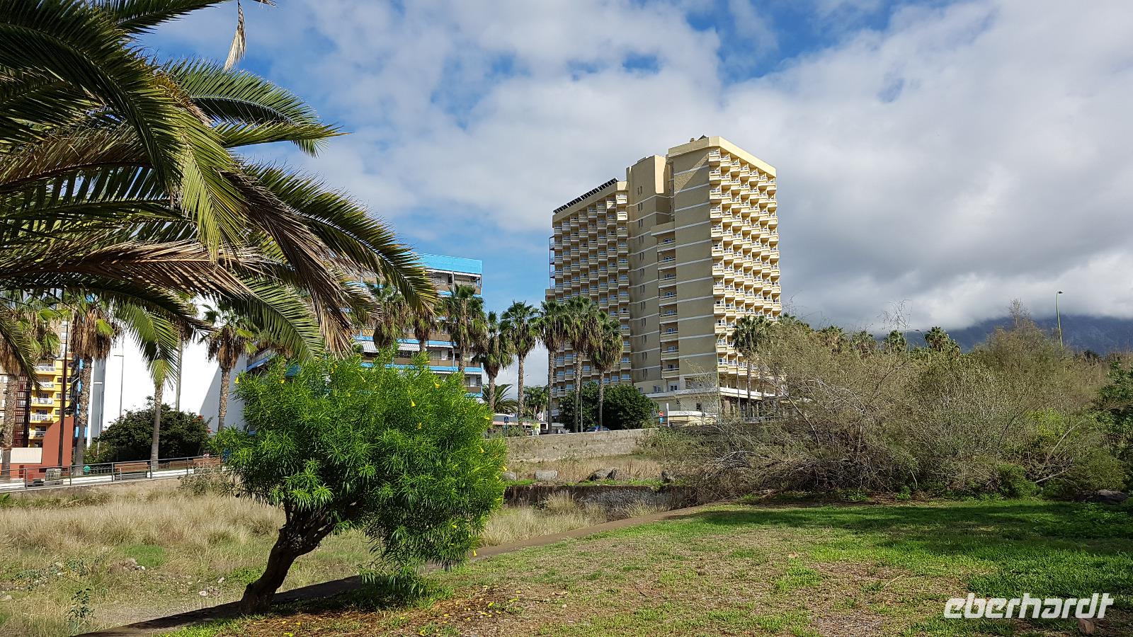 Zu Fuss spazierten wir hinauf zum Taoro Park über Treppen und viele Serpentinen. Schöne Aussichtsterrassen, Wasserfälle und Bachläufe säumten den Weg und viele Pflanzen standen noch in voller Blüte. Im Zentrum des Parks steht das ehemalige Grand Hotel Taoro aus dem Jahr 1890. Bis 2004 beherbergte es das Casino der Stadt und nun soll es wieder ein Luxus Hotel werden. Auf Empfehlung besuchten wir dann den Risco Bello Wassergarten. Leider wurden die Teiche saniert und hatten kein Wasser und so konnten wir uns nur an der herrlichen Pflanzenwelt erfreuen. Zum Kaffeetrinken suchten wir dann das Cafe im Taoro Park auf und schöpften wieder neue Kräfte für den Rückweg. Unser Hotel war Luftlinie vom Cafe nicht weit entfernt, aber es lag ein gewaltiger Höhenunterschied und ein Tal dazwischen. So spazierten wir wieder hinunter zum Charco Platz und von dort durch eine Fussgängerzone zurück zum Hotel. Immerhin waren 15 km zusammen gekommen und so konnte jeder guten Gewissens das üppige Buffet beim Abendessen geniessen.