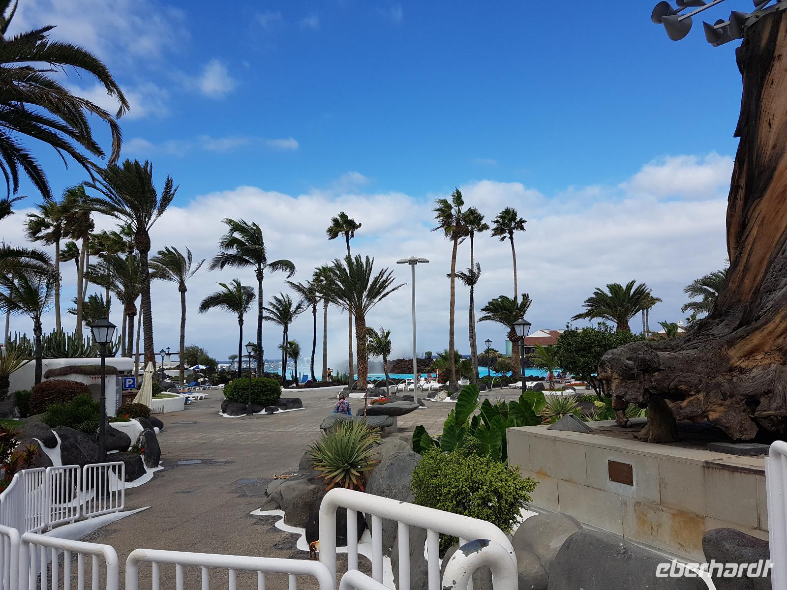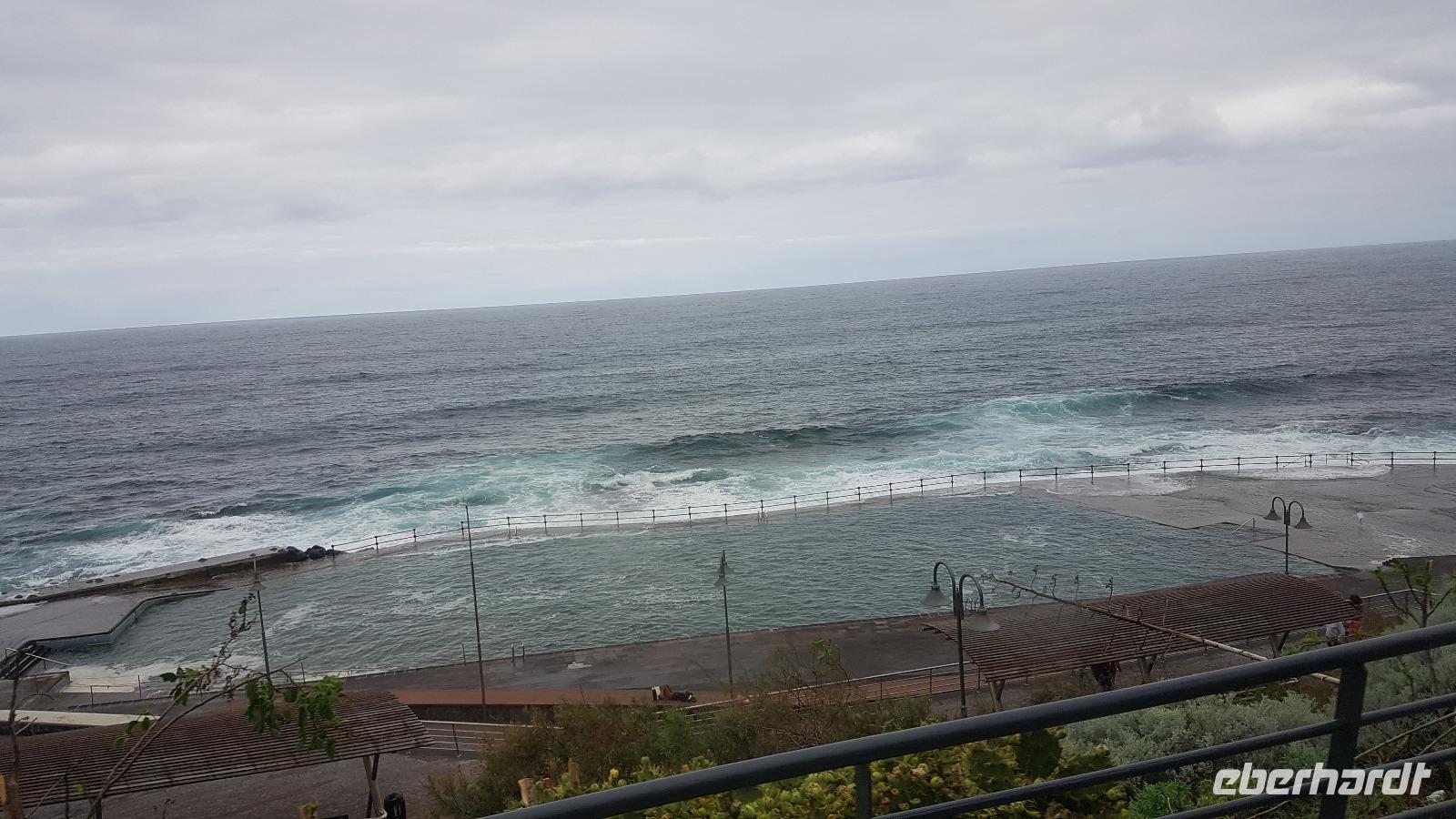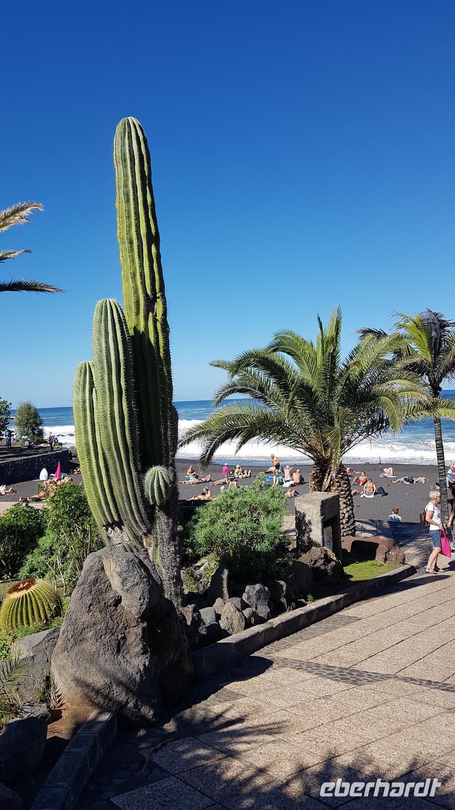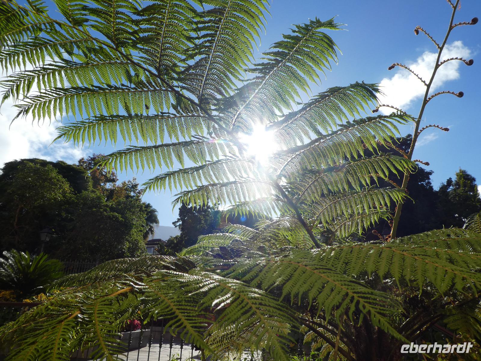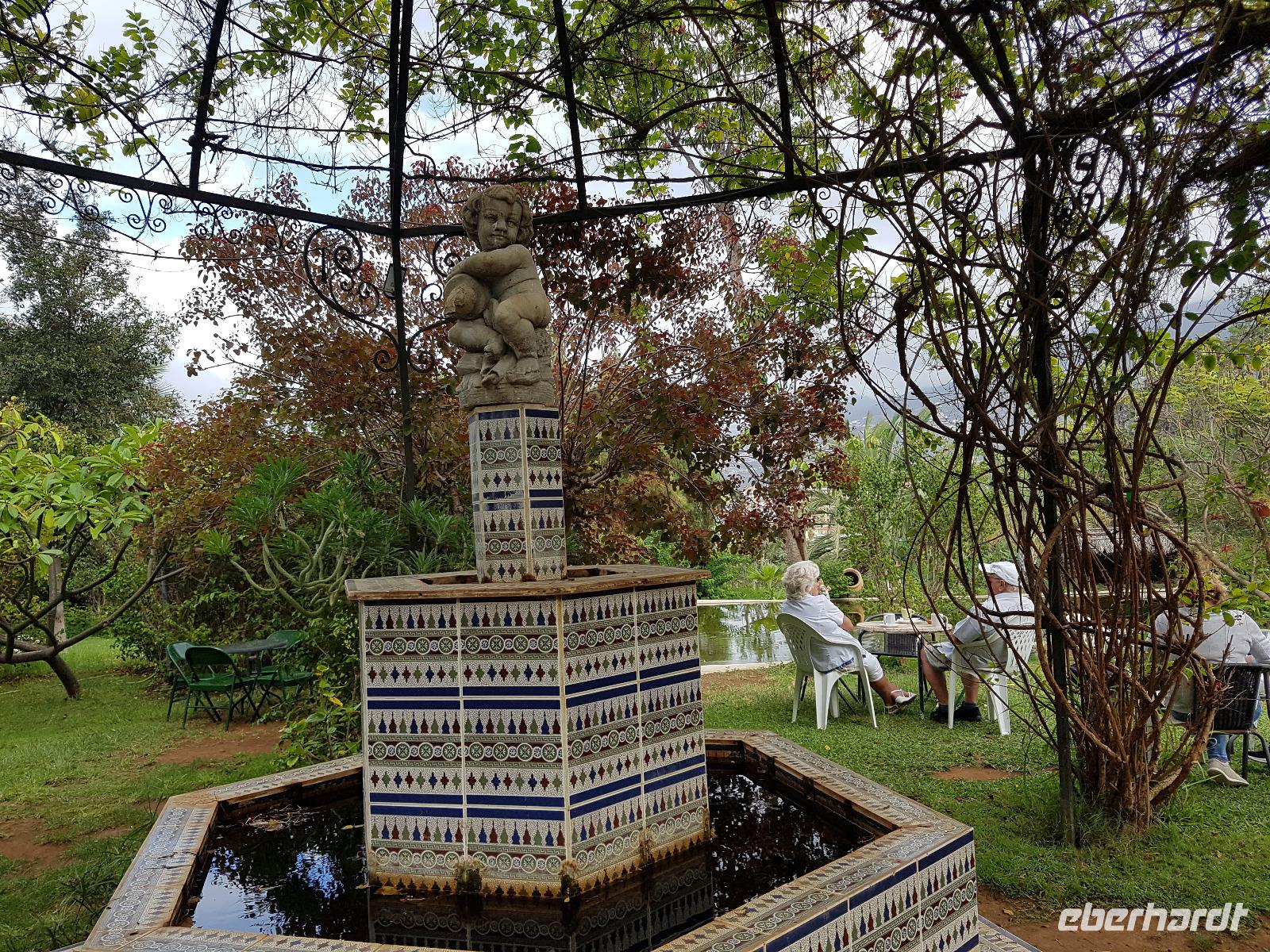 Zu Fuss spazierten wir hinauf zum Taoro Park über Treppen und viele Serpentinen. Schöne Aussichtsterrassen, Wasserfälle und Bachläufe säumten den Weg und viele Pflanzen standen noch in voller Blüte. Im Zentrum des Parks steht das ehemalige Grand Hotel Taoro aus dem Jahr 1890. Bis 2004 beherbergte es das Casino der Stadt und nun soll es wieder ein Luxus Hotel werden. Auf Empfehlung besuchten wir dann den Risco Bello Wassergarten. Leider wurden die Teiche saniert und hatten kein Wasser und so konnten wir uns nur an der herrlichen Pflanzenwelt erfreuen. Zum Kaffeetrinken suchten wir dann das Cafe im Taoro Park auf und schöpften wieder neue Kräfte für den Rückweg. Unser Hotel war Luftlinie vom Cafe nicht weit entfernt, aber es lag ein gewaltiger Höhenunterschied und ein Tal dazwischen. So spazierten wir wieder hinunter zum Charco Platz und von dort durch eine Fussgängerzone zurück zum Hotel. Immerhin waren 15 km zusammen gekommen und so konnte jeder guten Gewissens das üppige Buffet beim Abendessen geniessen.