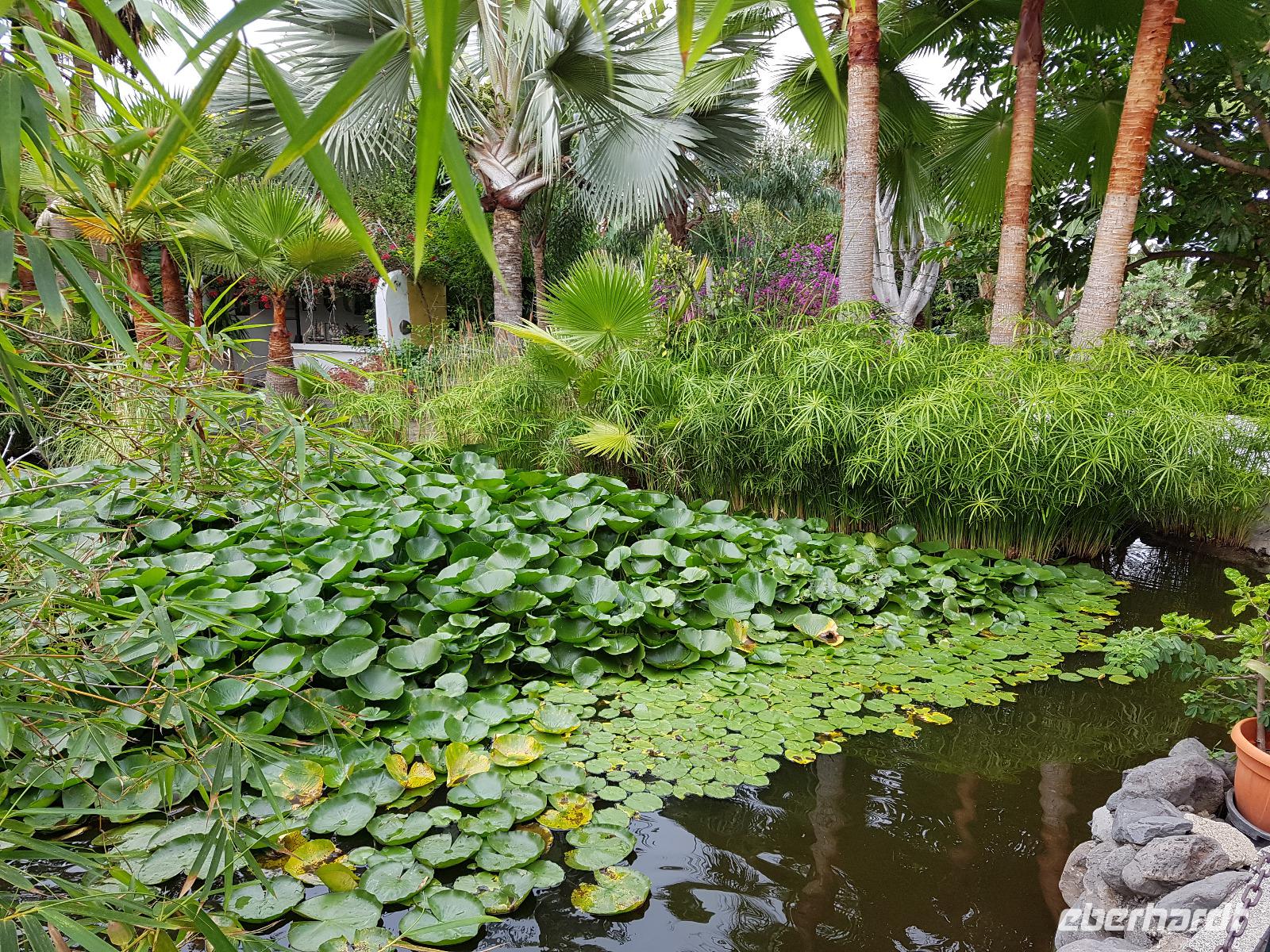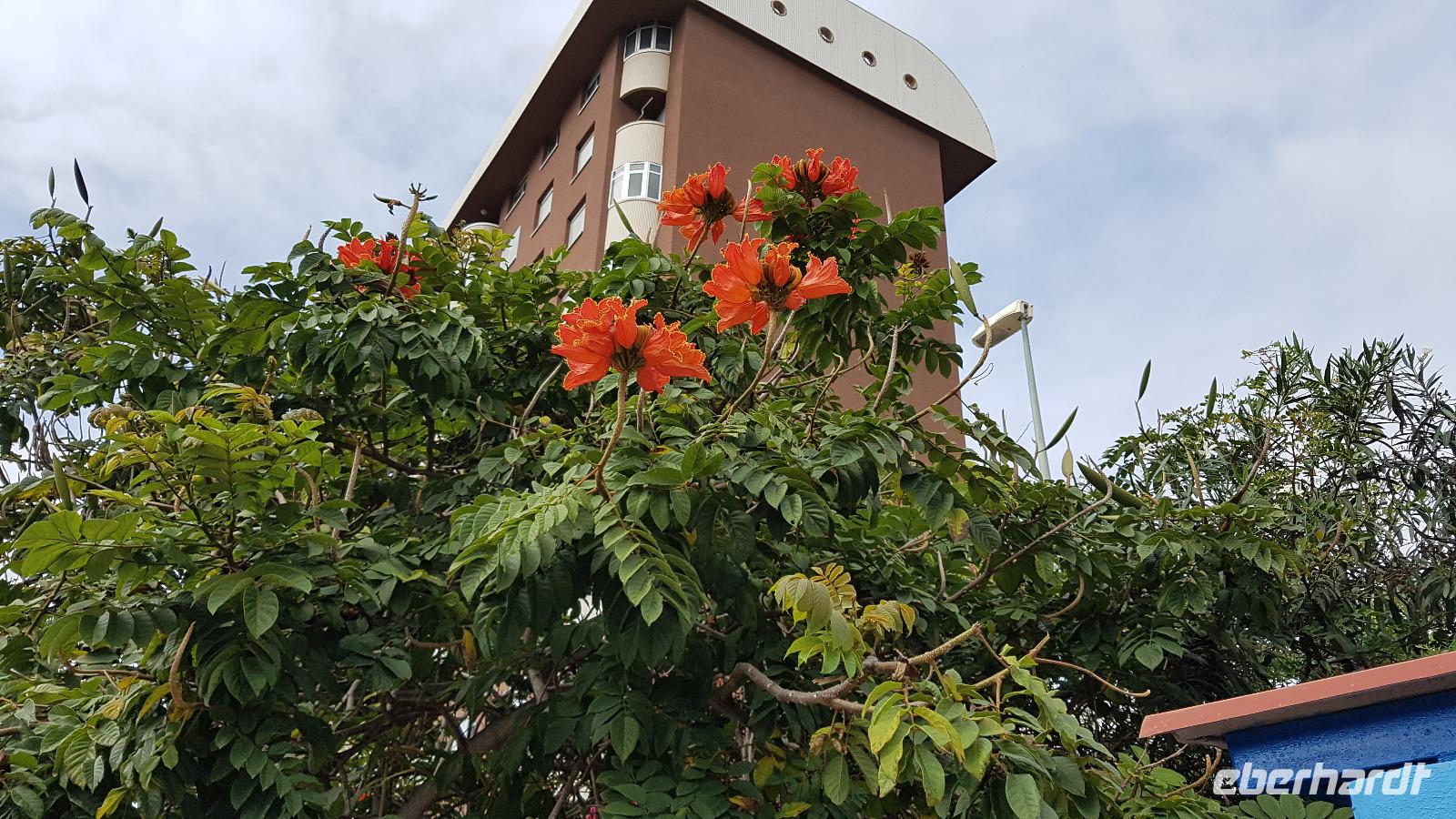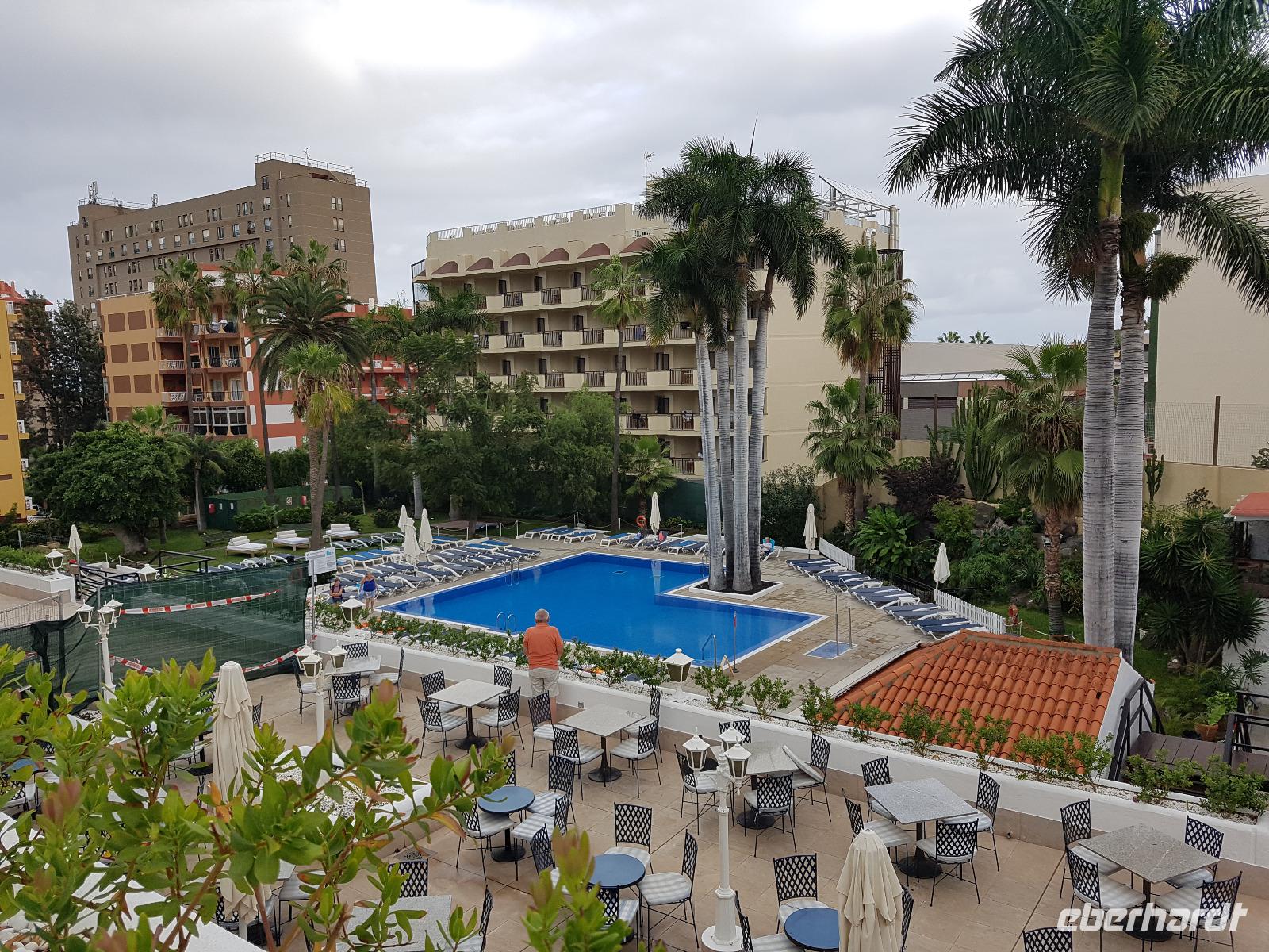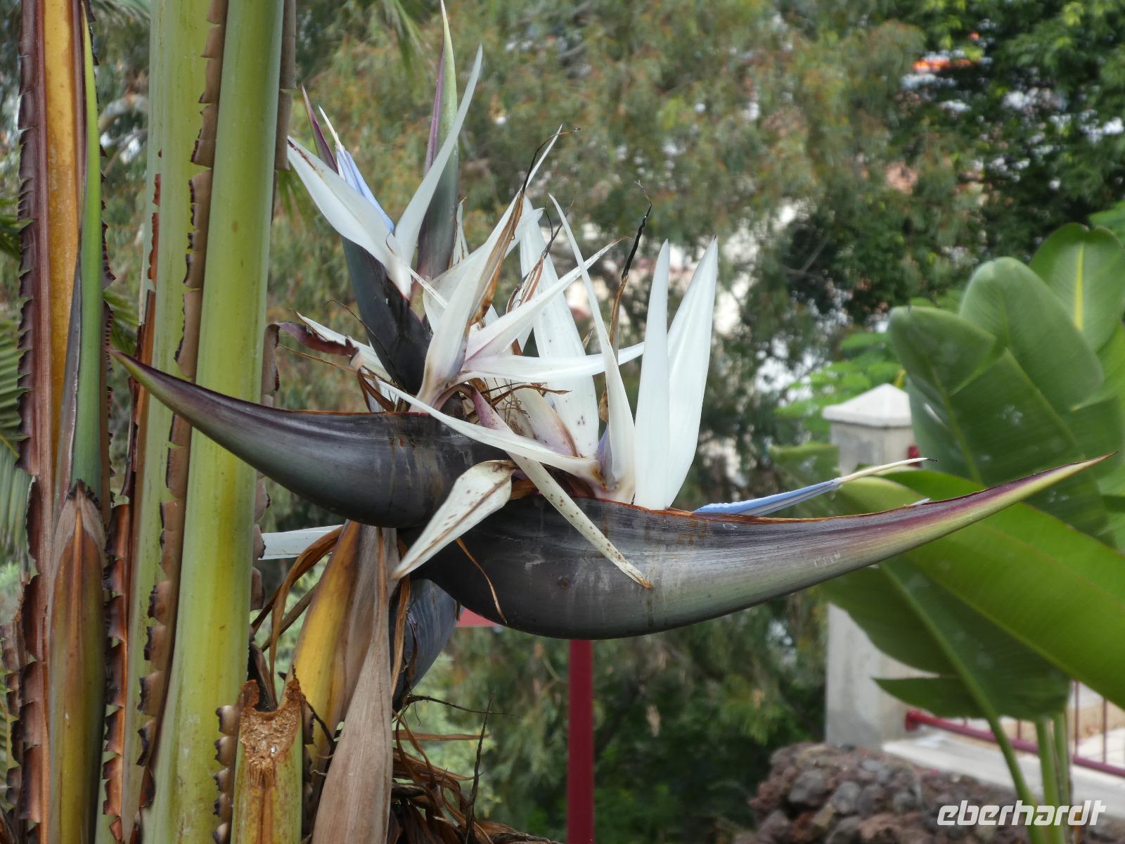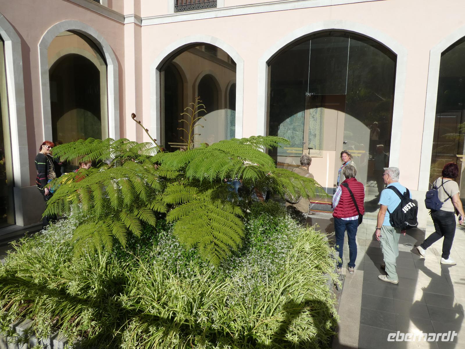 Zu Fuss spazierten wir hinauf zum Taoro Park über Treppen und viele Serpentinen. Schöne Aussichtsterrassen, Wasserfälle und Bachläufe säumten den Weg und viele Pflanzen standen noch in voller Blüte. Im Zentrum des Parks steht das ehemalige Grand Hotel Taoro aus dem Jahr 1890. Bis 2004 beherbergte es das Casino der Stadt und nun soll es wieder ein Luxus Hotel werden. Auf Empfehlung besuchten wir dann den Risco Bello Wassergarten. Leider wurden die Teiche saniert und hatten kein Wasser und so konnten wir uns nur an der herrlichen Pflanzenwelt erfreuen. Zum Kaffeetrinken suchten wir dann das Cafe im Taoro Park auf und schöpften wieder neue Kräfte für den Rückweg. Unser Hotel war Luftlinie vom Cafe nicht weit entfernt, aber es lag ein gewaltiger Höhenunterschied und ein Tal dazwischen. So spazierten wir wieder hinunter zum Charco Platz und von dort durch eine Fussgängerzone zurück zum Hotel. Immerhin waren 15 km zusammen gekommen und so konnte jeder guten Gewissens das üppige Buffet beim Abendessen geniessen.