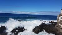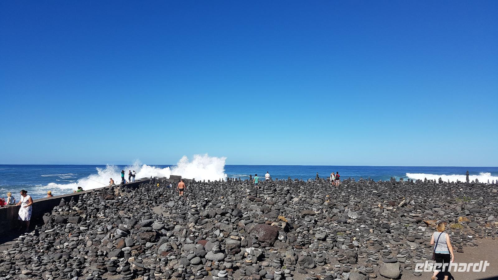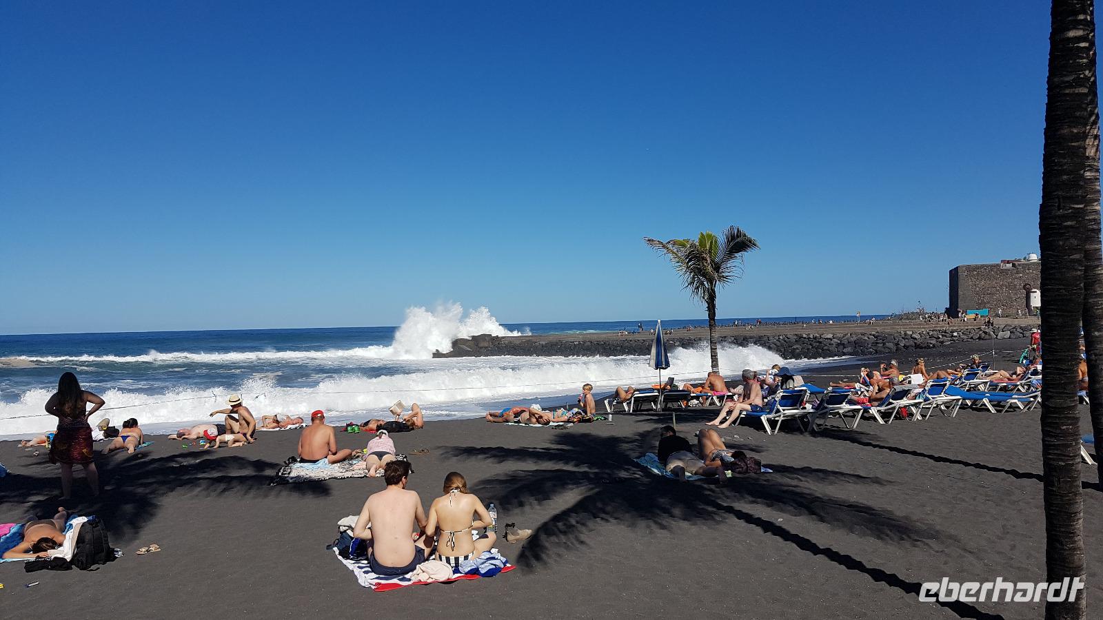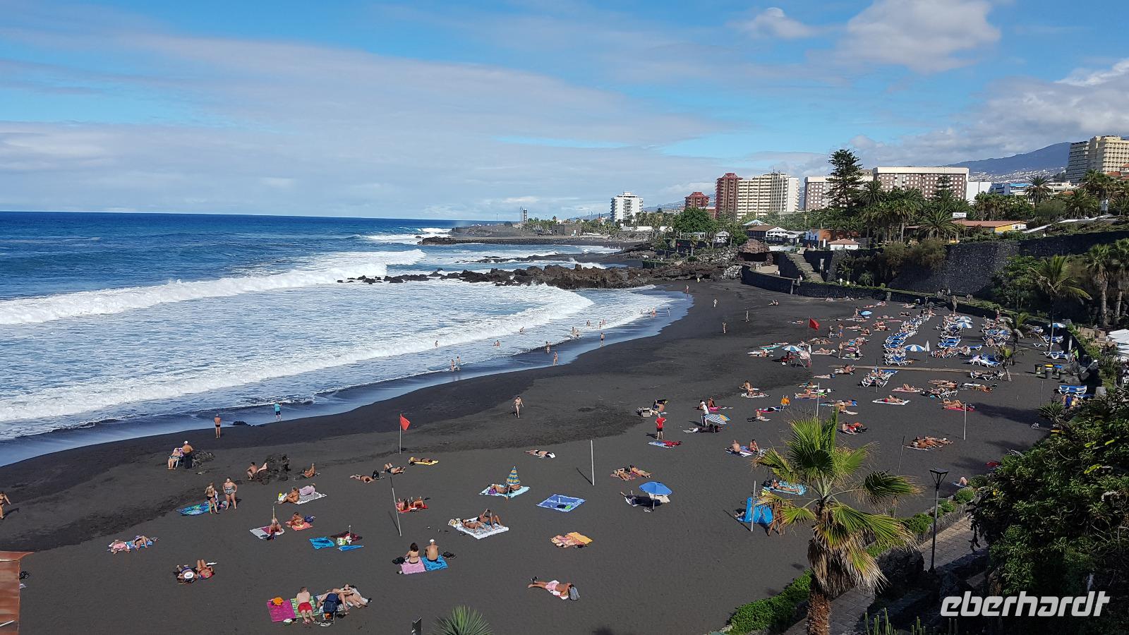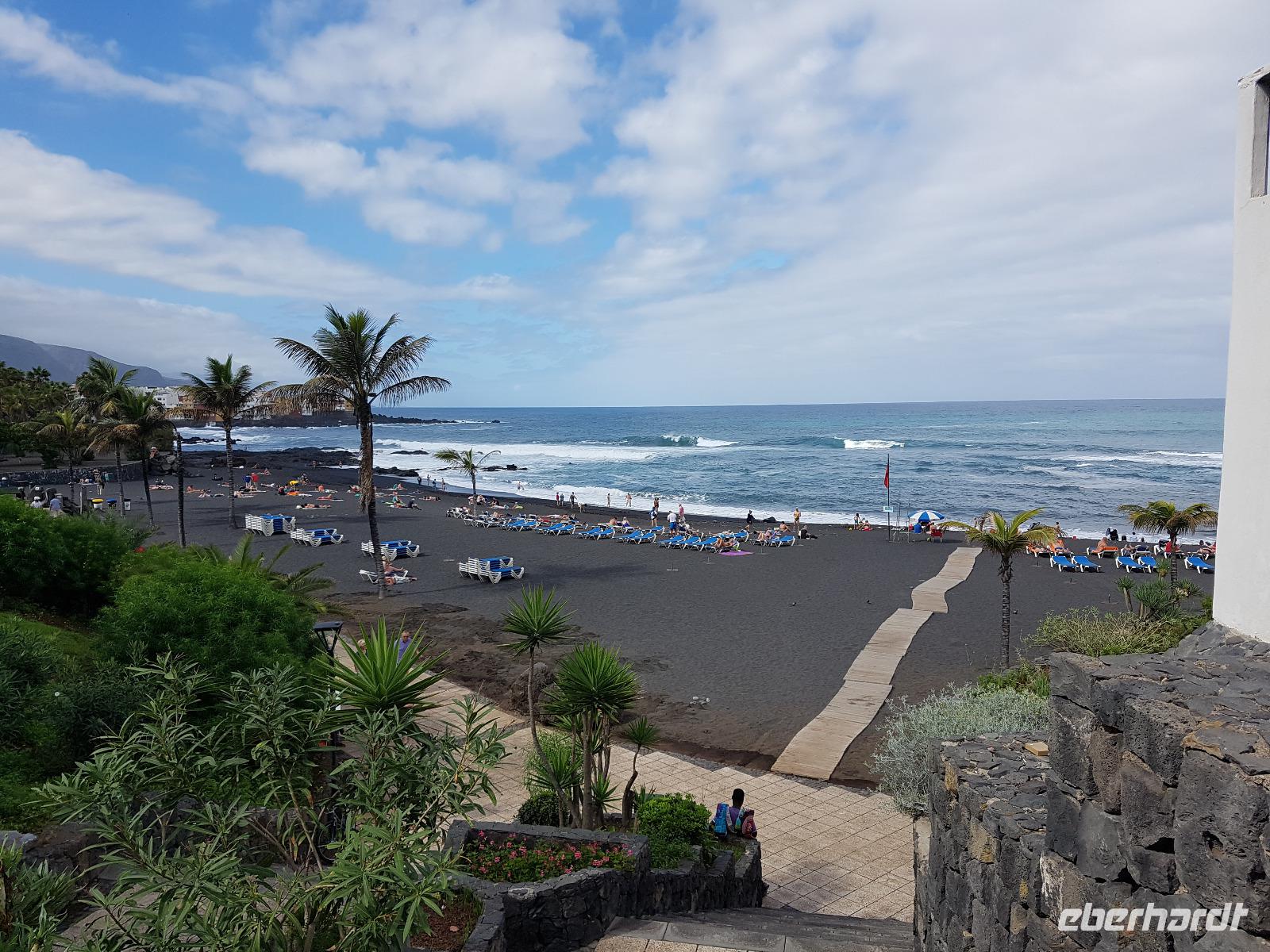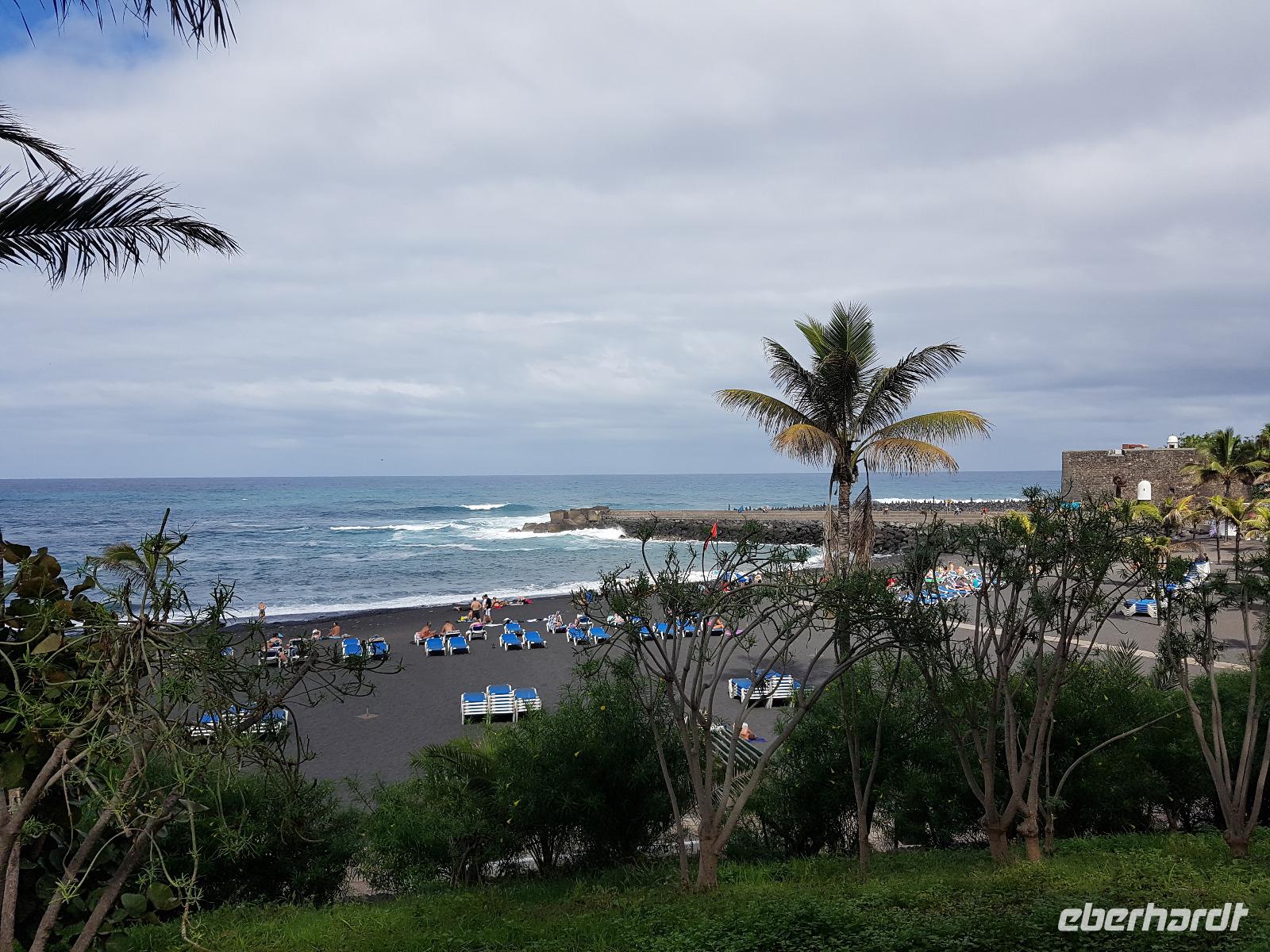 Wir konnten ausschlafen und in Ruhe das Frühstück geniessen und endlich sahen wir bei Tageslicht auch, wie gut und zentral doch unser Hotel lag. Einige spazierten schon mal zum Strand Playa Jardin ca. 5 Minuten vom Hotel entfernt. 10 Uhr trafen wir uns dann wieder und der Vertreter der Agentur informierte uns über alles wichtige für unseren Aufenthalt. Auch konnten wir gleich für den Loro Park die Eintrittskarten kaufen und so das Anstehen bei der Kasse der Parkes vermeiden. Dann stellte sich jeder kurz vor und gegen Mittag begann unser Rundgang durch Puerto de la Cruz. Wir spazierten zum Strand und zum Castillo de San Felipe, weiter am Meer entlang bis zum Fischerhafen, dann landeinwärts über den Charco Platz mit den vielen indischen Lorbeerbäumen, durch enge Gassen zu den beiden berühmten alten Hotels Marquesa und Monopol und von dort zur Kirche Nuestra Senora de la Pena, die wir auch innen besichtigten. Gleich dahinter befindet sich das Cafe TASCA, wo wir den ersten Barraquito probierten. Von dort liefen wir zurück zur Küste San Telmo mit der gleichnamigen Fischer Kirche aus dem 17.Jahrhundert. Gleich an der Promenade beginnen dort die von Cesar Manrique erbauten Meerwasser Schwimmbäder. In der riesigen Anlage mit einem grossen und mehreren kleineren Pools schwimmt man im Meerwasser, welches mit jeder Welle frisch hineingespühlt wird. An der Playa Martianez endete unser Rundgang am Meer.