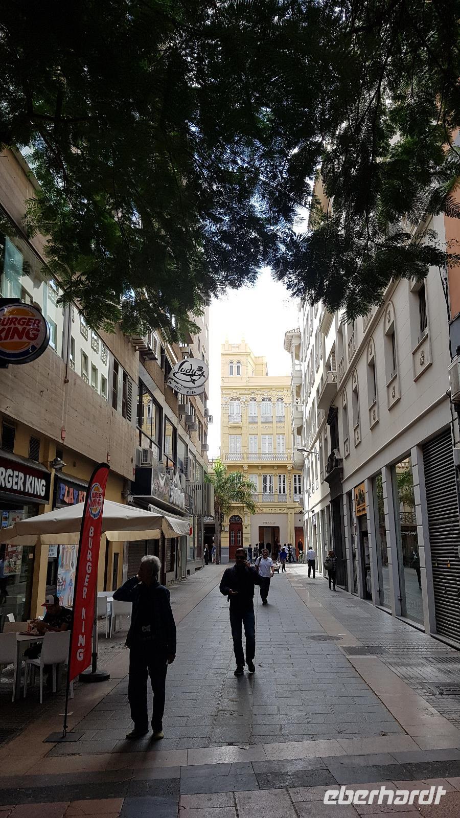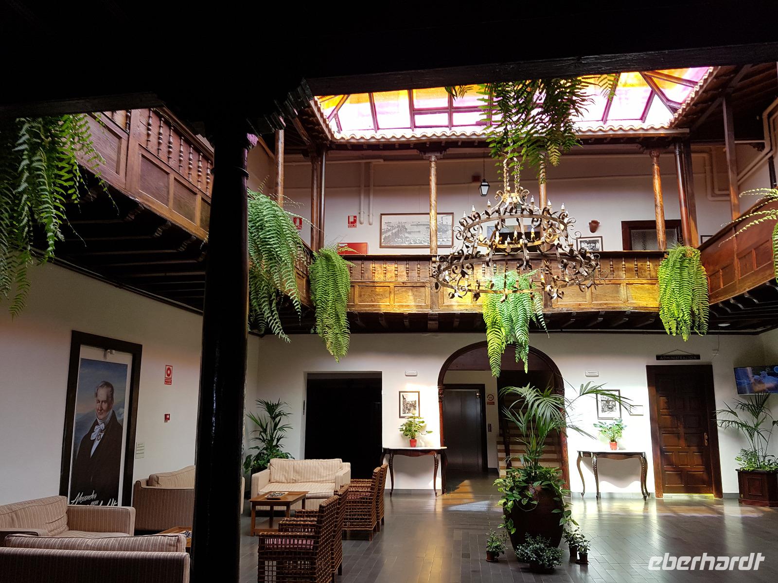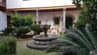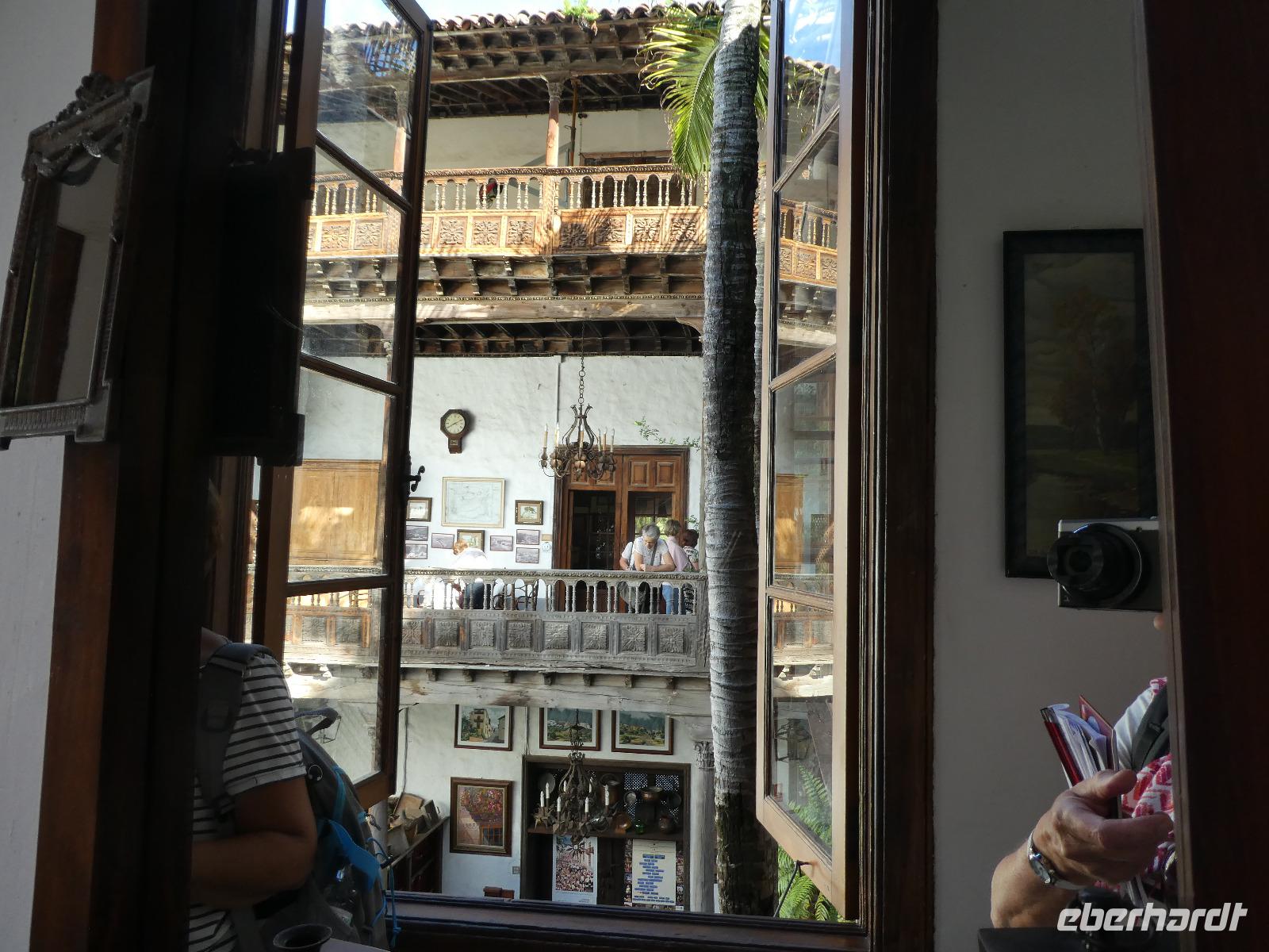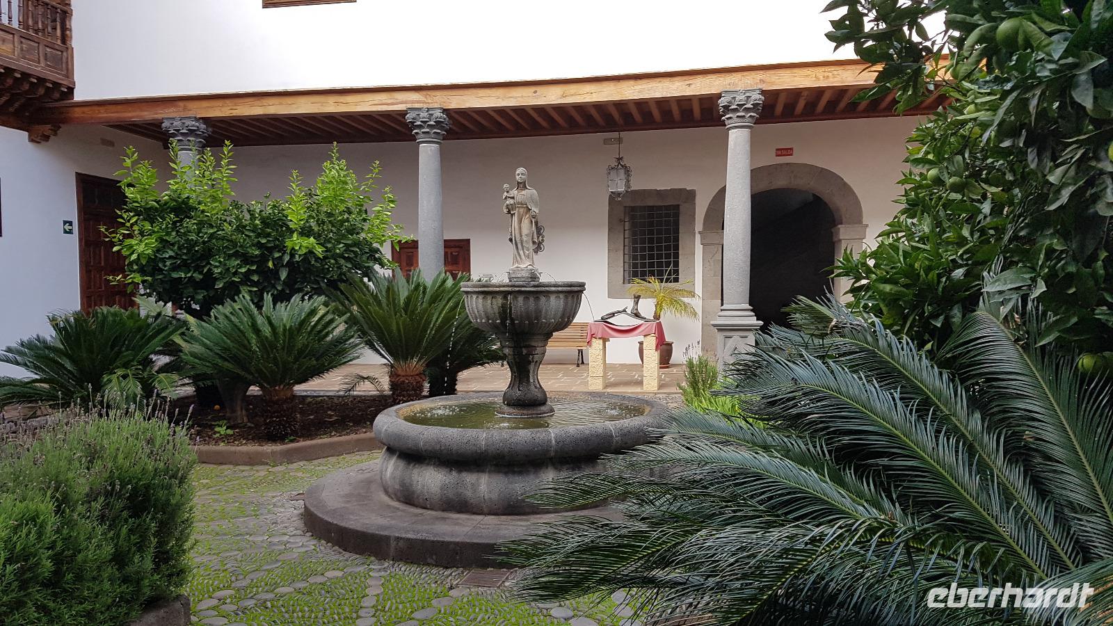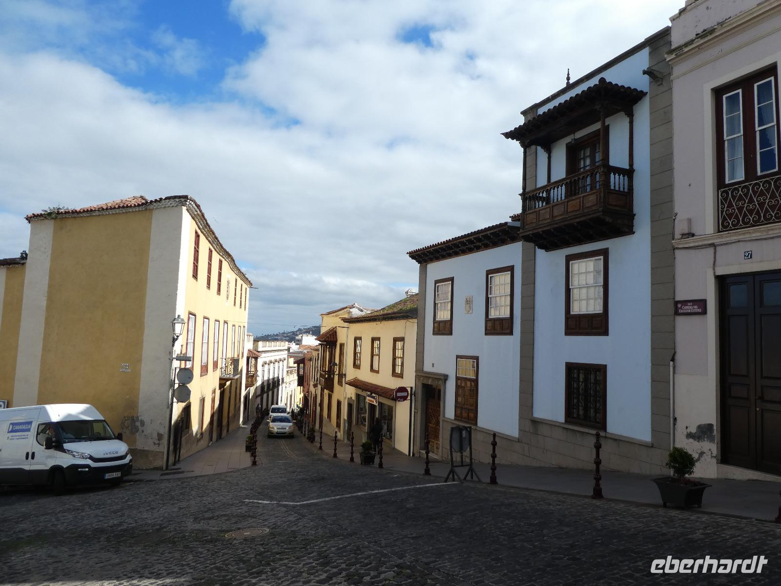 Unsere ausgedehnte Mittagspause verbrachten wir in der alten Universitätsstadt La Laguna. Die Stadt liegt auf 600 m Höhe und wurde Ende des 15.Jahrhunderts gegründet. Schachbrettartig sind die alten Strasse angelegt und um die Stadt verläuft eine Bergkette. So konnte man sich eine Stadtmauer sparen. Wir spazierten durch die alten Gassen und kehrten ein im Patio Canario - ein Restaurant mit Kanarischem Innenhof. In 7 Gängen probierten wir kanarische Spezialitäten und dazu gab es einen hervorragenden Rotwein. Danach brauchen wir Bewegung und gingen zum Kirchturm der Iglesia de la Conception. Wir steigen 99 Stufen hinauf und aus einer Höhe von 36 Metern hatten wir einen fantastischen Rundblick zu den Bergen, auf die Gassen der Stadt und zur Start- und Landebahn des Flughafens Teneriffa Nord. Auf dem Rückweg zum Parkplatz besuchen wir den Innenhof des Bischofspalastes und das Haus der Italiener.