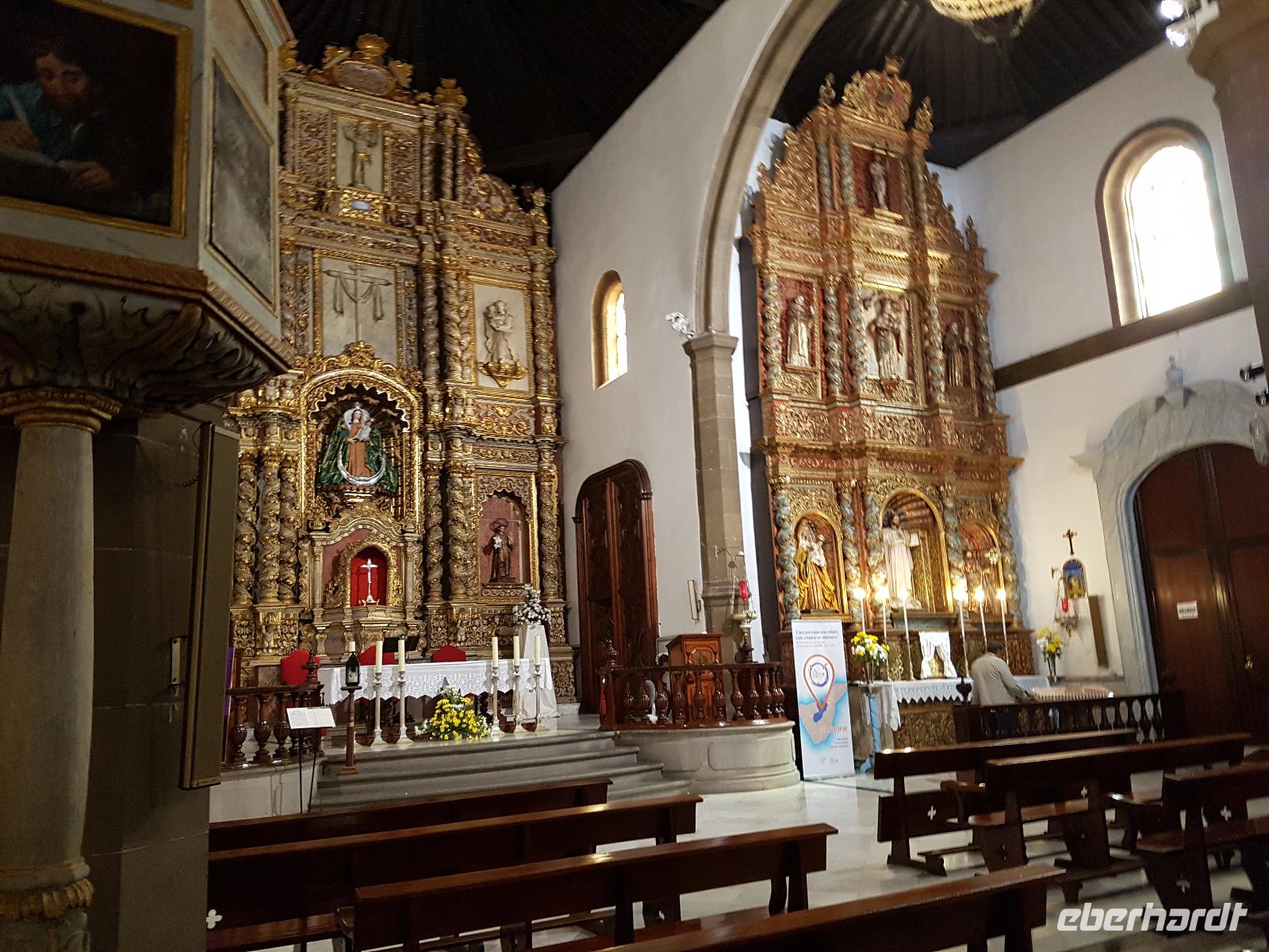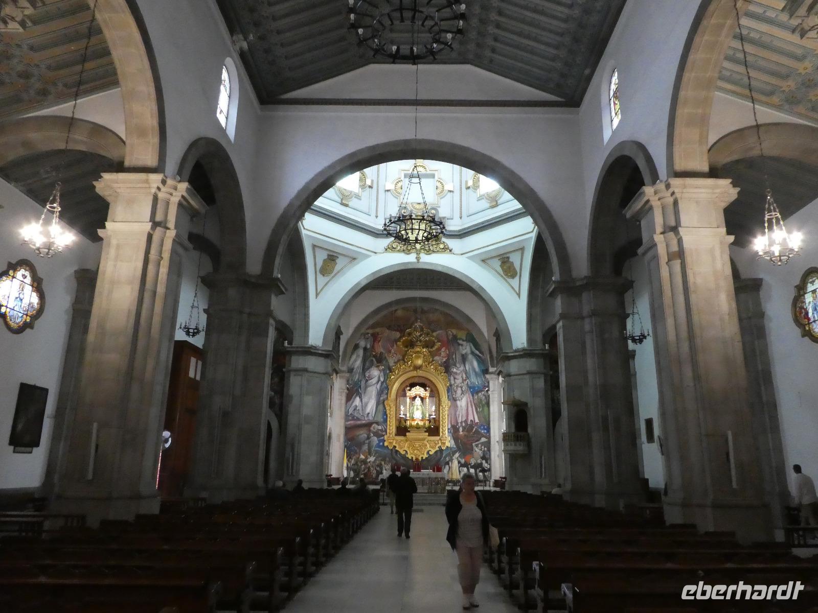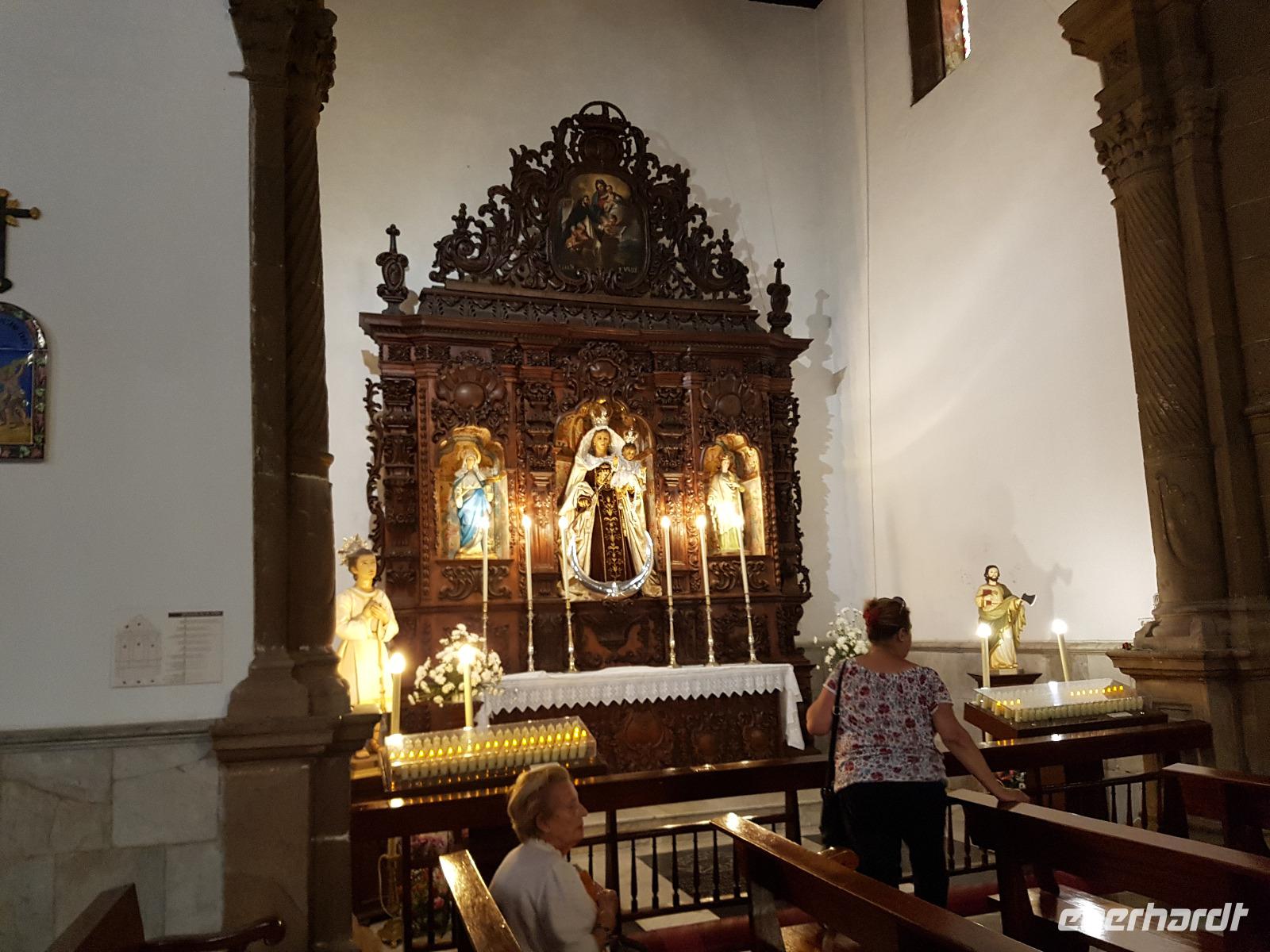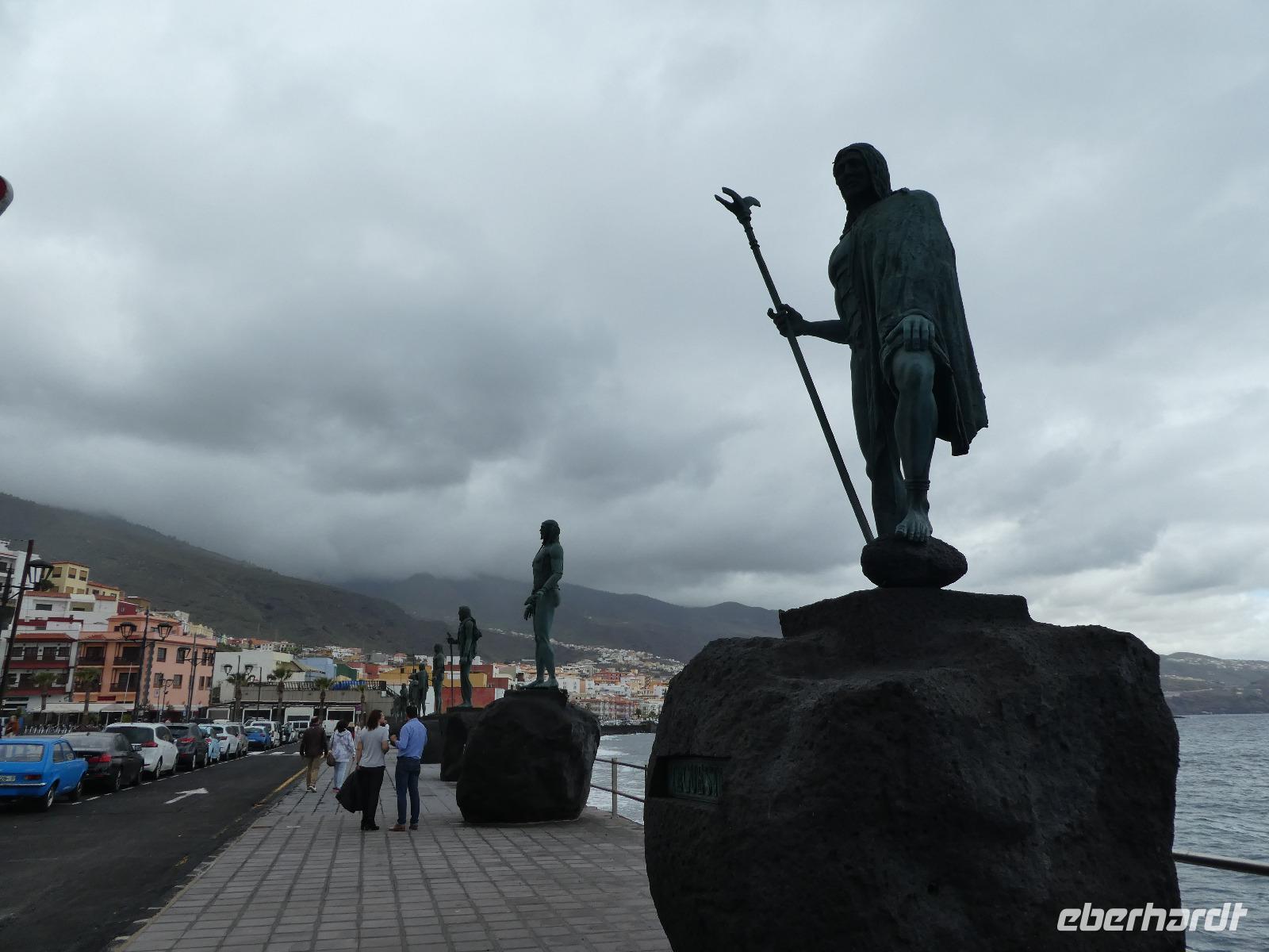 Mit Xandra und Fahrer Marcos fuhren wir in den Süden nach Candelaria. Der Ort ist der bekannteste Wallfahrtsort der Insel und die Kirche Nuestra Senora de la Candelaria beherbergt die wichtigste Schutzheilige der kanarischen Inseln - die schwarze Madonna. Sie wurde von 2 Guanchen am Strand entdeckt und das Meer holte sie bei einem Sturm auch wieder zurück. Heute sieht man eine Nachbildung eines Künstlers aus Santa Cruz. Die Madonna ist eine Stockfigur - nur der Kopf und die Füsse sind ausgearbeitet und sie trägt deshalb auch verschiedene prunkvolle Kleider. Jährlich am 15.August pilgern tausende Besucher zur Basilika. Danach fuhren wir an der Küste weiter ostwärts nach Santa Cruz und bei einer kurzen Rundfahrt sahen wir die interessantesten Gebäude. In der Freizeit spazierten wir durch die Gassen der Stadt und gönnten uns einen Barraquito. Vorbei am Teresitas Strand gings dann kurvenreich hinauf in das Anagagebirge. Schöne Ausblicke zur Süd- und zur Nordküste konnten wir auf der Fahrt erhaschen.