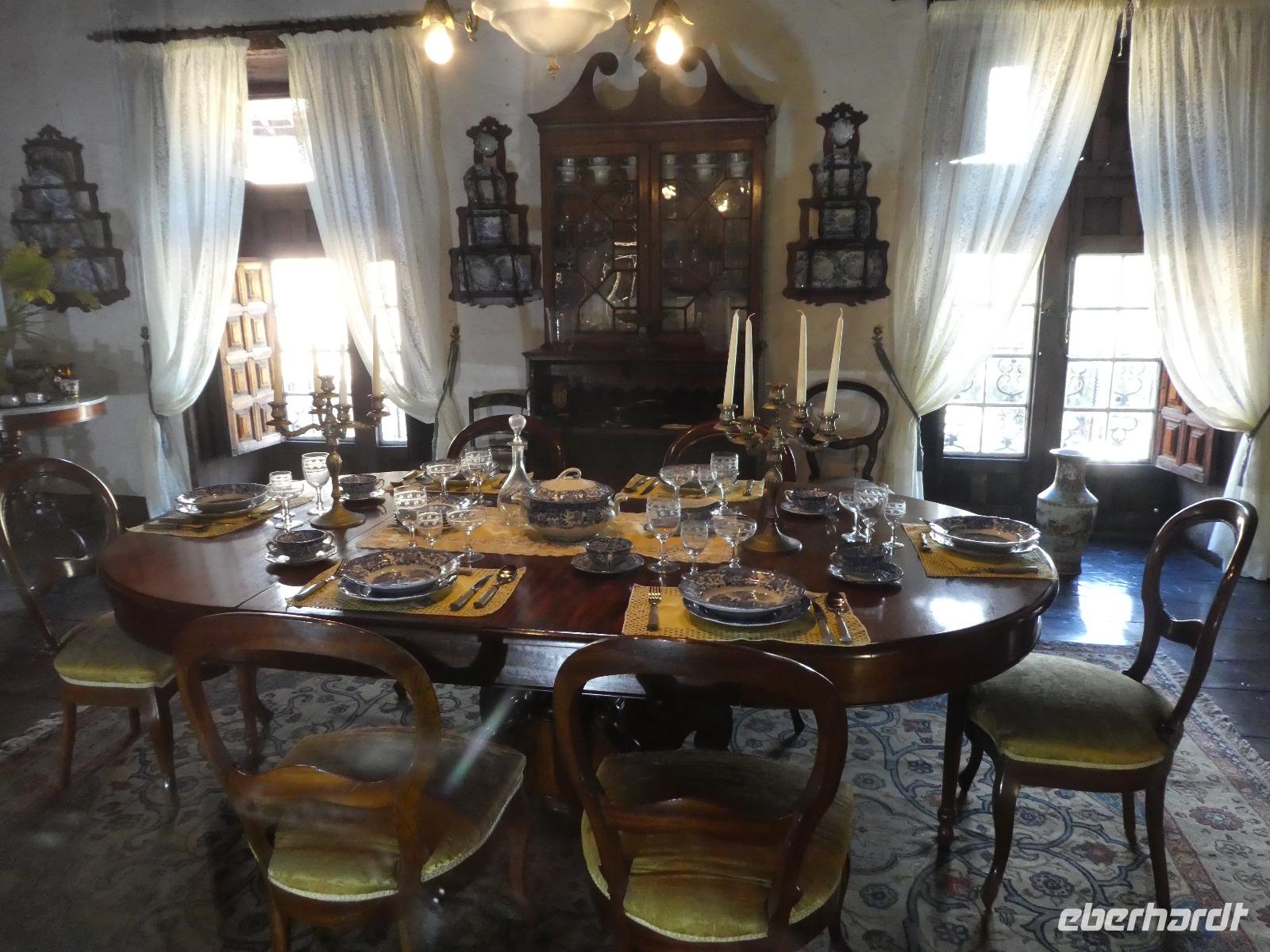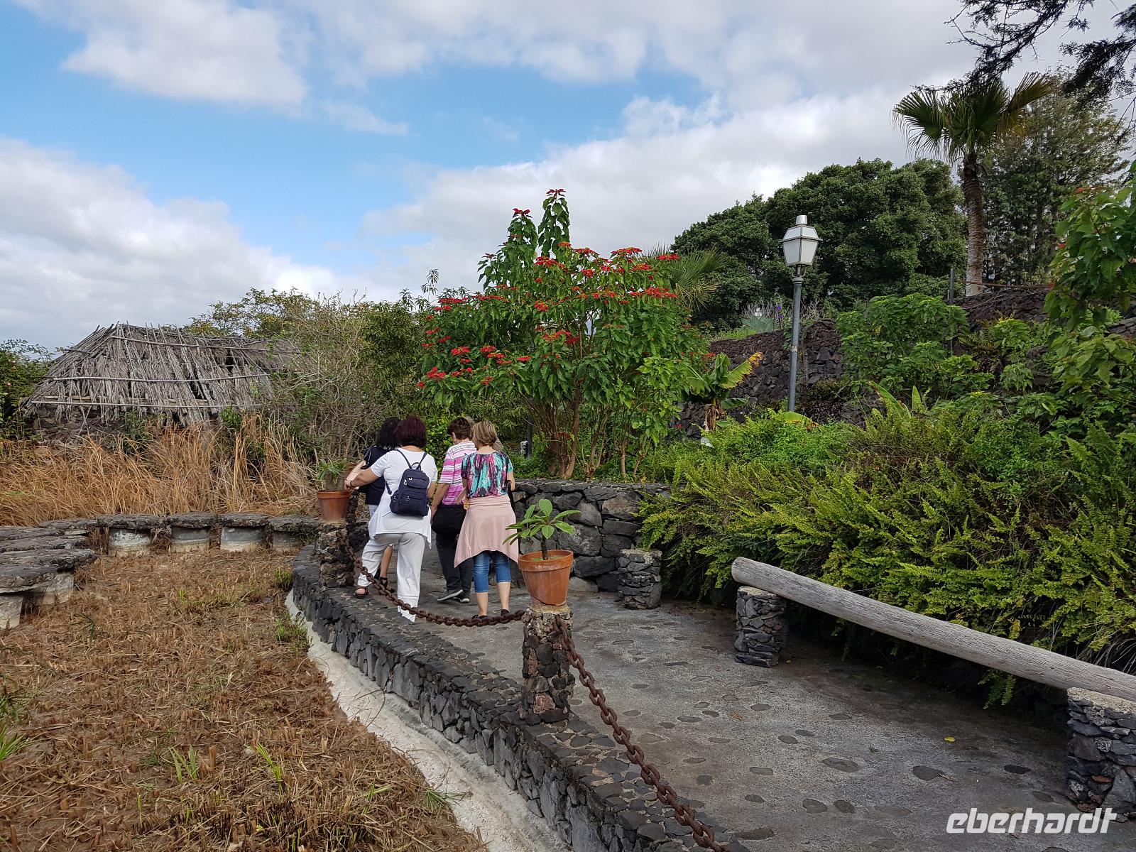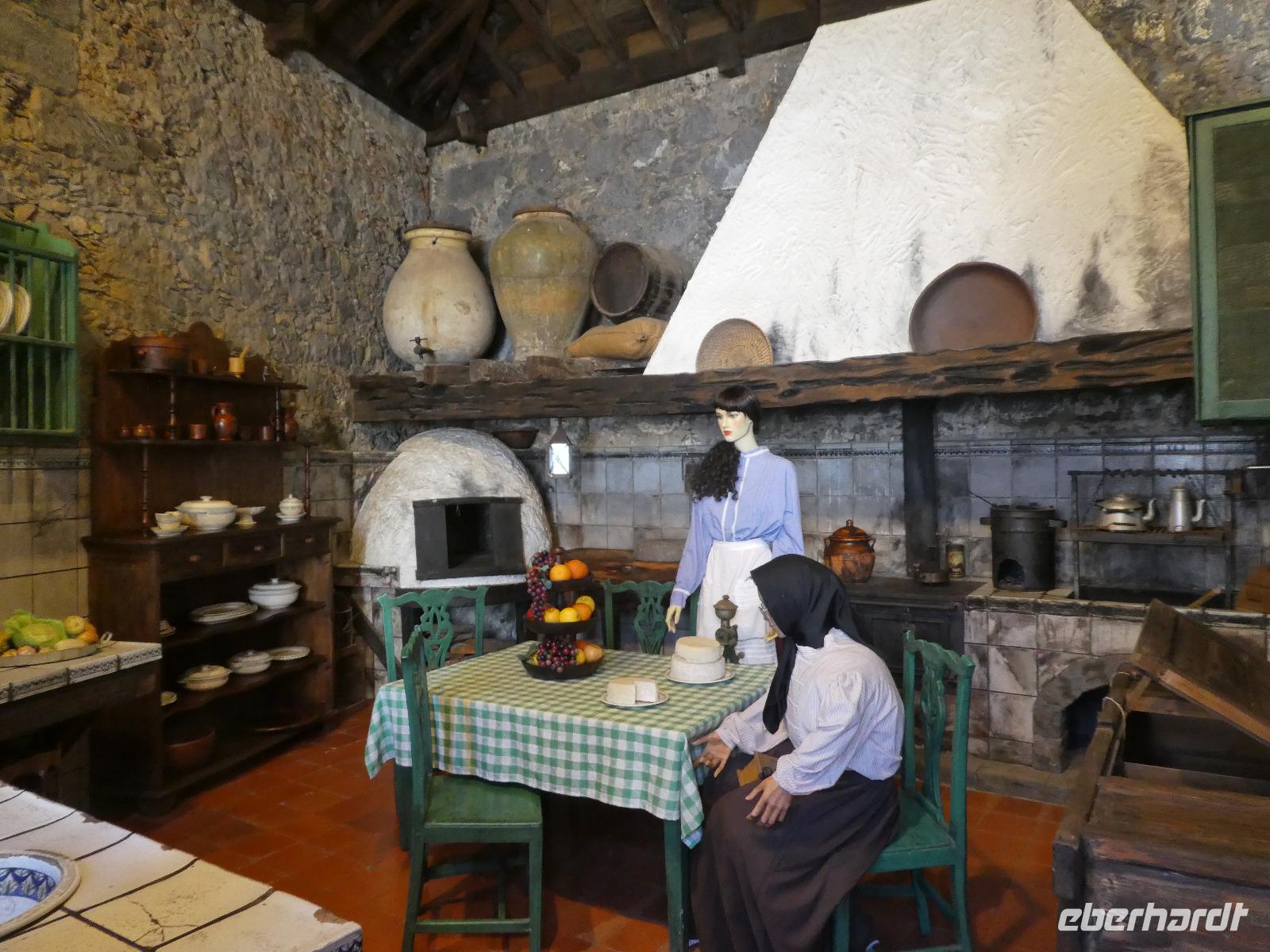 Unweit des Bauernmarktes befindet sich ein ehemaliges Herrenhaus aus dem 18.Jahrhundert, welches zum Museum umgestaltet wurde. In der Casa de Carta im Valle der Guerra sahen wir die Volkstrachten der verschiedenen kanarischen Inseln, eine Tabakpresse, verschiedene Töpfer- und Korbwaren, Musikinstrumente, eine vollständig eingerichtete Küche, eine "Wasserwaage", Gofiomühlen und und... Xandra und unser Fahrer Jose ergänzten sich bei der Führung hervorragend und Jose geriet ins Schwärmen beim Anblick der alten Gerätschaften und er konnte die Wirkungsweise sehr anschaulich erklären. Auch der Garten des Anwesens war sehr gepflegt und beherbergte viele typische Pflanzen der Kanaren. Da es bis zum Mittagessen noch Zeit war, fuhren wir hinunter ans Meer nach Punta del HIDALGO und am Meer über Bajamar zurück. Leider regnete es und so begnügten wir uns mit der Besichtigung aus den Busfenstern. Dann gings aber nach oben zur Valle Molina, wo uns verschiedenen kanarische Speisen und 4 Weine des Weingutes zur Verkostung angeboten wurden. Die berühmte rote Mojosause wurde von der Hausherrin unter unseren neugierigen Blicken hergestellt und dann gleich serviert. Wir speisten vorzüglich und fuhren danach zurück ins Hotel. Bis zum Abendessen besuchten wir nochmals Purto de la Cruz und genossen Kaffee und Eis in der Sonne.