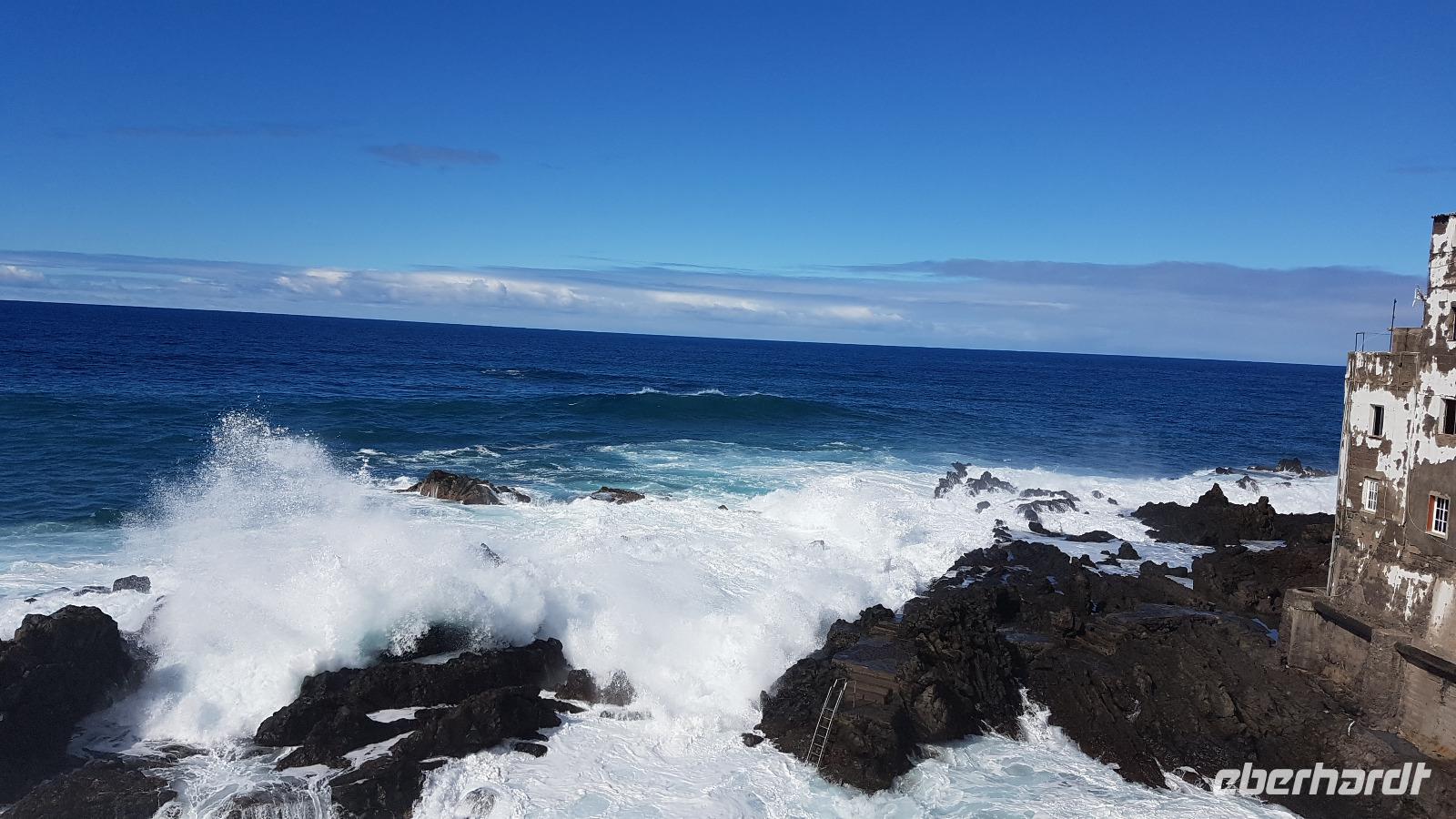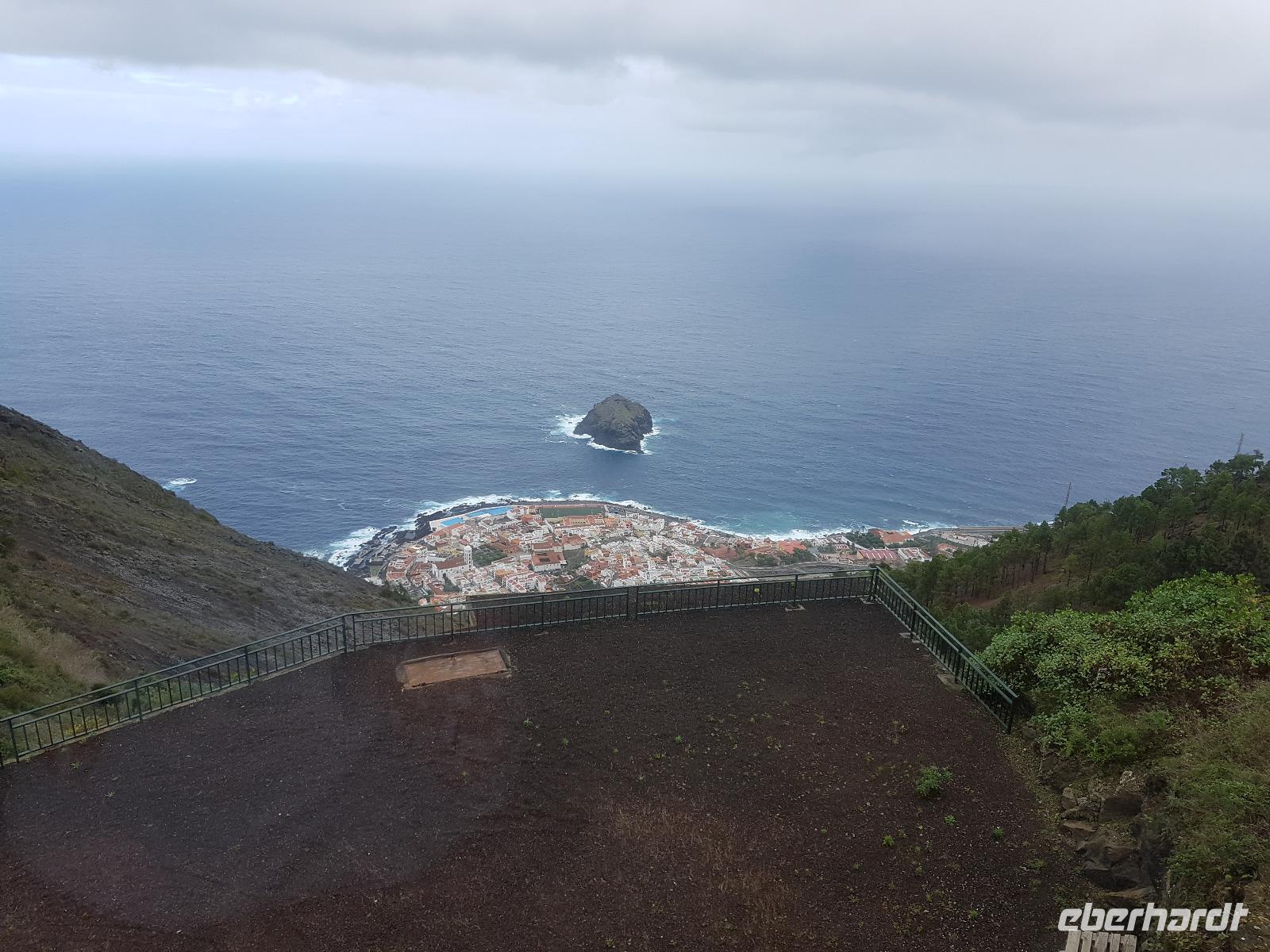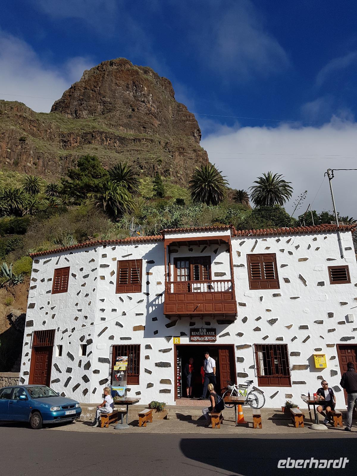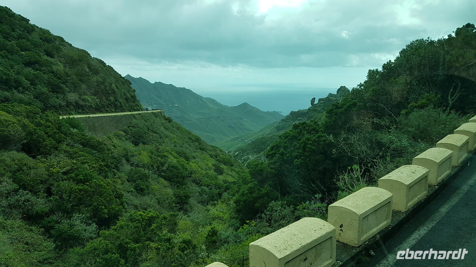 Die Fahrt ging wieder über zahlreiche Serpentinen hinauf zum Kamm des Tenogebirges und dann hinunter nach Masca. Für diese Strasse ist schon einiges fahrerisches Geschick gefragt und Angst sollte man auch nicht haben. Für unseren Fahrer Jose war das selbstverständlich, aber die vielen Urlauber in den Mietwagen hielten den Verkehr auf. In einer Kurve stiess dann auch noch ein Pkw mit unserem Bus zusammen und Jose war sehr verärgert. Schliesslich erreichten wir Masca und machten eine schöne Kaffepause. Der Ort ist Ausgangspunkt für die spektakuläre Wanderung durch die Masca Schlucht bis hinunter ans Meer. Leider musste der Weg gesperrt werden bis März wegen der Schäden vom letzten Unwetter im Oktober. Zurück nahmen wir die Strasse über den Las Portelas Pass hinunter nach Buenavista del Norte. Von dort folgten wir der Küstenstrasse über Garachico zurück zum Hotel.