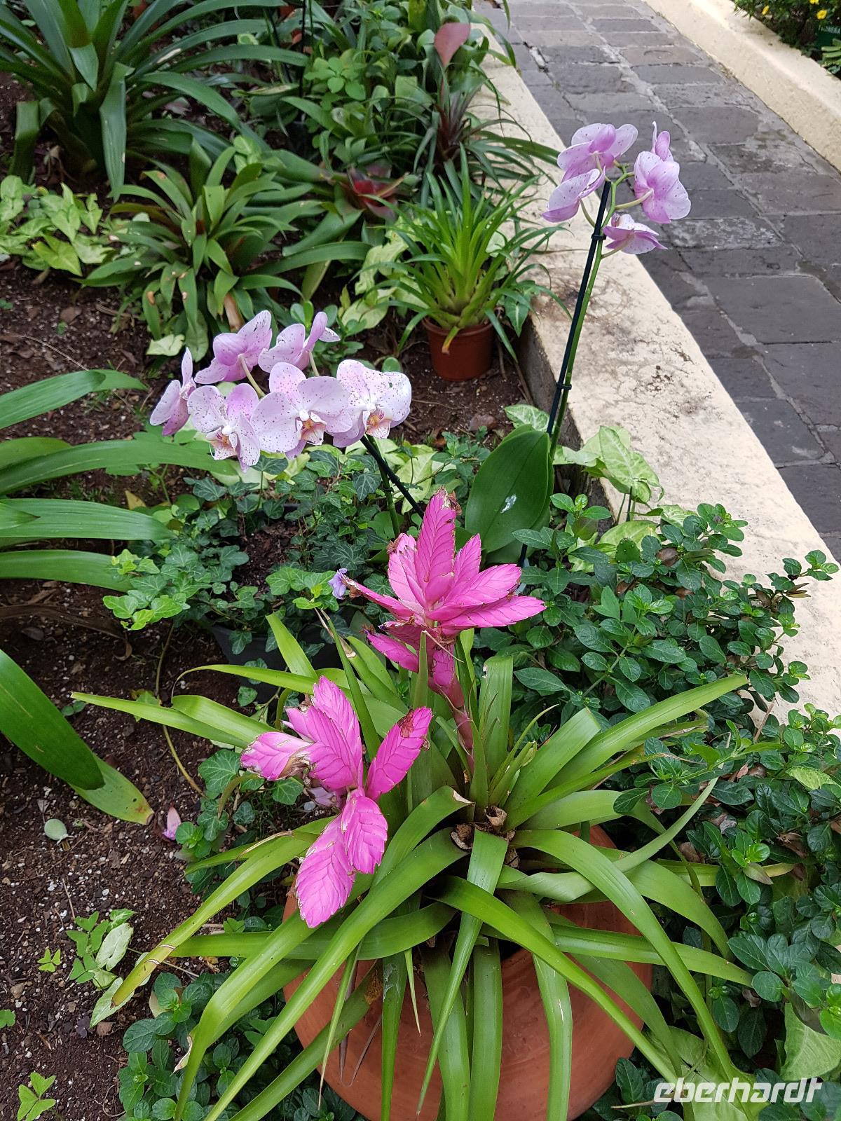 Fast alle Singles nahmen an diesem Ausflug teil und wir starteten mit einer Rundfahrt durch Puerto de la Cruz mit unserem Bus. Dabei lernten wir einige "Ecken" kennen, die wir beim Rundgang zu Fuss noch nicht sahen. Danach besichtigten wir den PARK Sitio Litre, der seit fast 250 Jahren besteht und immer noch sehr gepflegt wird. Berühmte Gäste wie Alexander von Humboldt oder Agatha Christie waren hier zu Gast und Letztere wurde hier so inspiriert, dass einer ihrer Romane in Puerto de la Cruz spielte. Die größten Orchideenanpflanzungen von Teneriffa sind hier im Freien zu bewundern und in den Teichen tummeln sich zahlreiche Fische.
