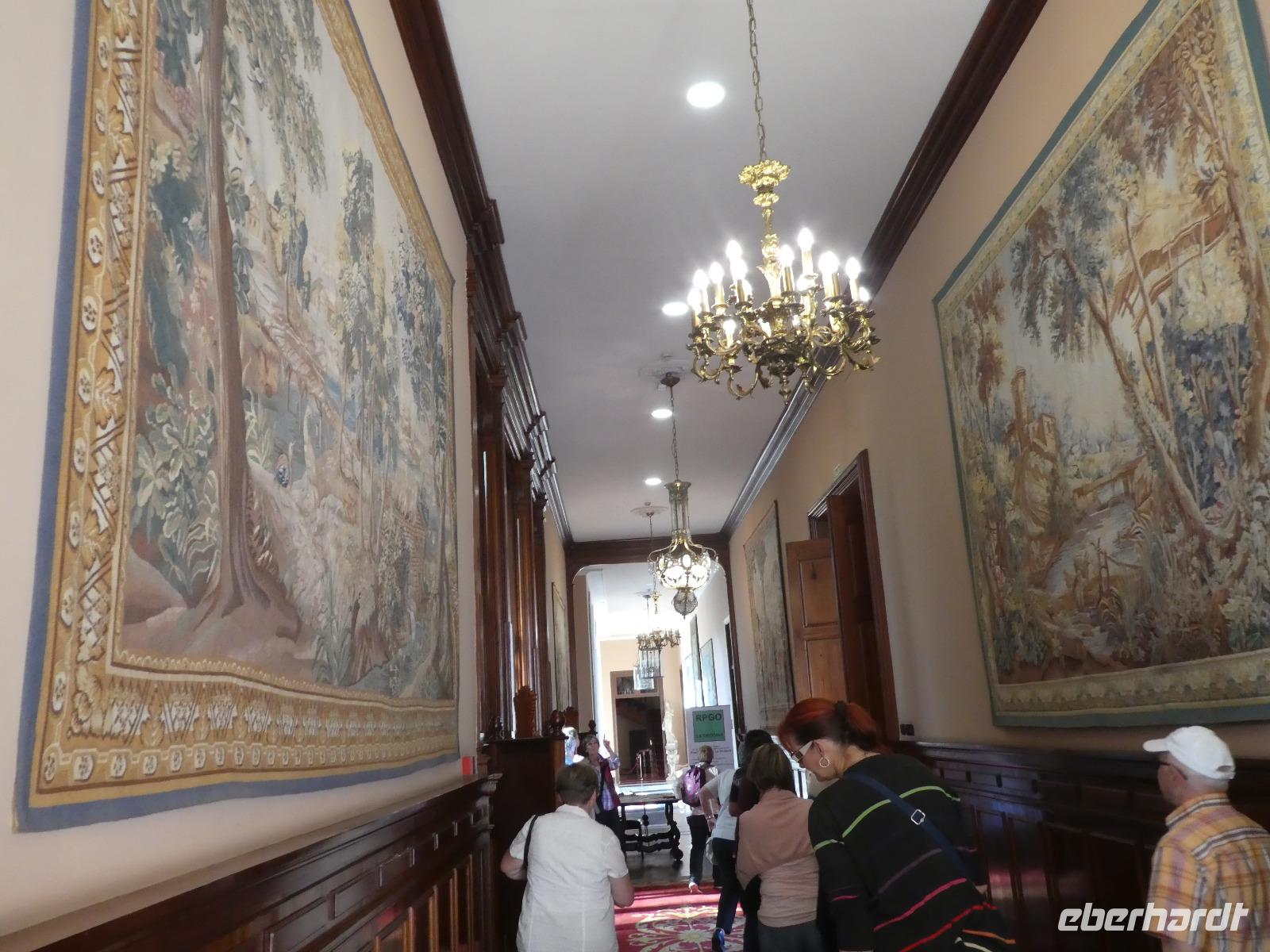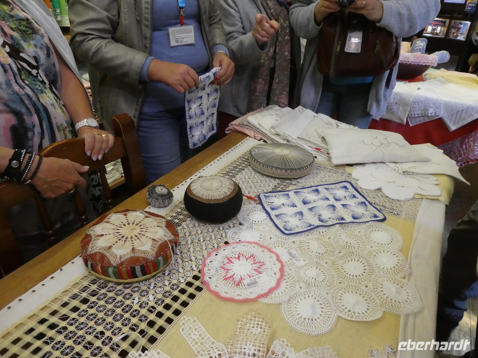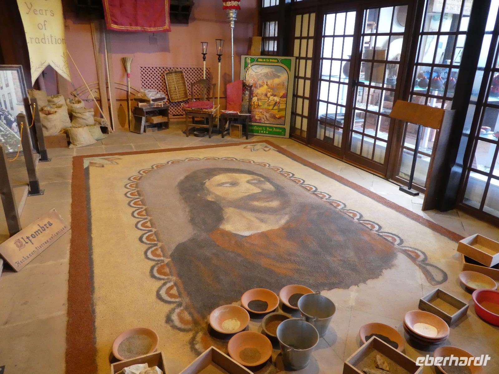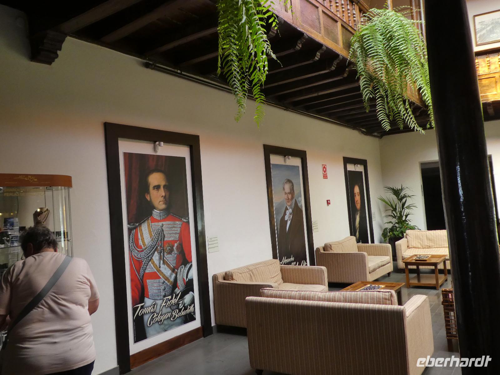 Heute fuhren wir nach La Orotava, in den Ort oberhalb von Puerto de la Cruz. Wir begannen unsere Besichtigung mit dem Botanischen Garten, gingen dann hinunter zum Rathaus und sahen dort die wertvollen Wandteppiche und dann steil bergan zum Volkskunde Museum in der Casa de los Balcones. Das Haus stammt aus dem Jahr 1632 und hat einen wunderschönen Innenhof mit Holzbalkonen. Im ersten Stock sind einige möblierte Zimmer zu sehen und im Erdgeschoss ist das Stickereimuseum untergebracht. Dort erklärte uns Xandra die mühevolle Arbeit der kanarischen Stickerei. Im HAUS gegenüber waren kunstvolle Sandgemählde zu bewundern und von der Terrasse hatte man einen fantastischen Blick hinunter nach Puerto de la Cruz und zum Atlantik. Wieder ein Spaziergang durch Gassen und wir erreichten eine alte Gofiomühle, die noch in Betrieb war. Dort konnten wir das Urgetreide begutachten und ich kaufte für jeden einen Gofioriegel zum Probieren. Das Getreide der Guanchen ist heute wieder in Mode gekommen und gilt als Sättigungsbeilage, süss oder herzhaft zubereitet. Ein kleines Stück auf einem alten Ziegenpfad spazierten wir zu unserem Bus zurück.