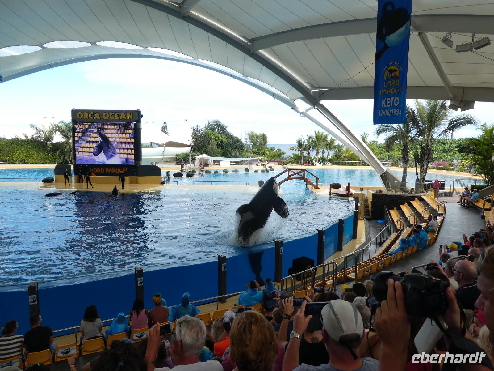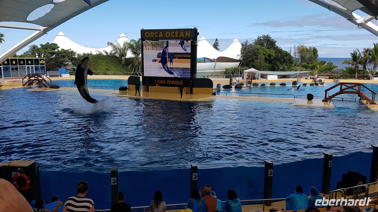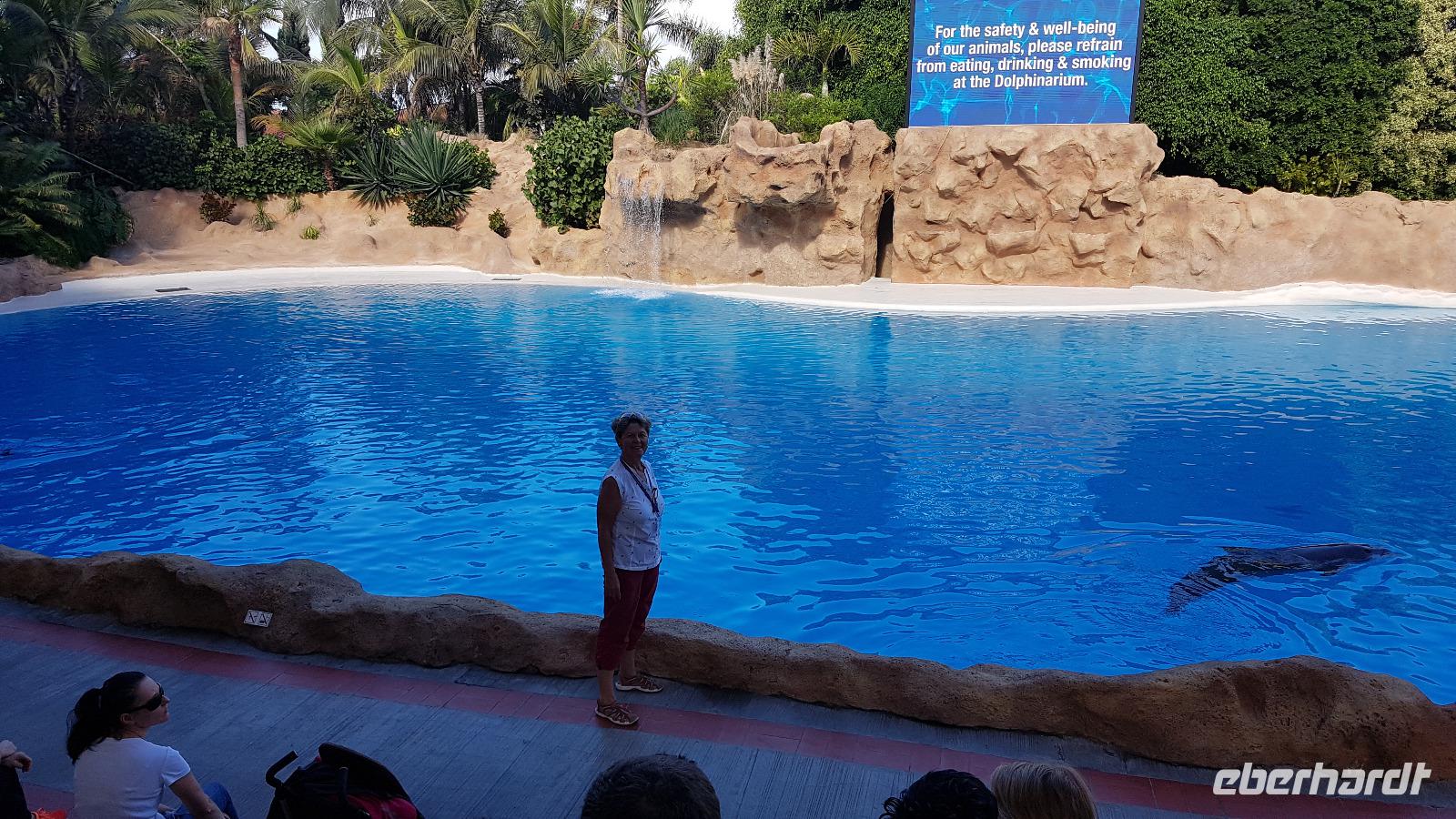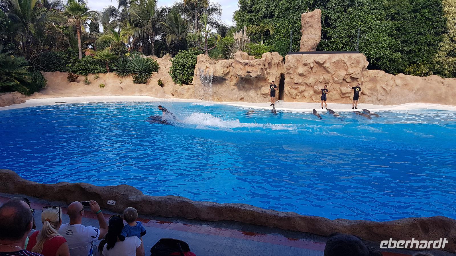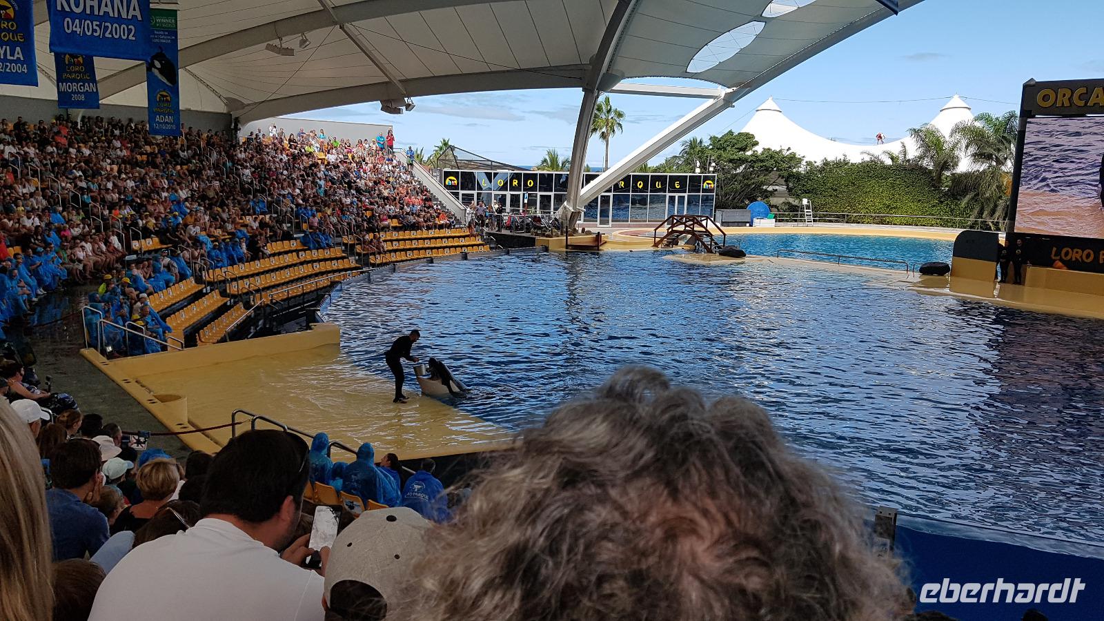 Für den Ausflug in den Loro Park hatten wir alle schon die Eintrittskarten gekauft und so liefen wir ganz entspannt von unserem Hotel in ca. 20 Minuten zum Park. Wir waren früh dort und konnten so die erste Stunde ganz ohne Gedränge die Tiere beobachten. Im Park gibt es verschiedene Tier Shows und wir machten uns einen Plan, um alle Shows besuchen zu können und wir verabredeten uns zu diesen Terminen. Die Zeiten dazwischen spazierten wir in kleineren Gruppen je nach Interessen durch den Park. Die Delphin Show war dann das erste Highlight und gleich darauf folgte die Orca Show. Beeindruckend, wie diese grossen Meeressäugetiere agieren und im Park gab es sogar ein Orca Baby. Der Park bietet ein echtes Tagesprogramm und die verschiedenen Tiergehege sind optimal in die üppige Vegetation eingepasst. Die Show der Seelöwen und der Loros besuchten wir ebenfalls. Die Loros waren die ersten Tiere im Park und gaben ihm seinen Namen. Diese posierlichen Vögel leben in grossen Volieren und in einem riesigen "Käfig", in den die Besucher hineingehen können und so den Vögeln ganz nahe sind. Es war wunderschönes, sonniges Wetter und so verbrachten die meisten Singles die Zeit nach dem Parkbesuch am Strand oder in den Meerwasserpools.