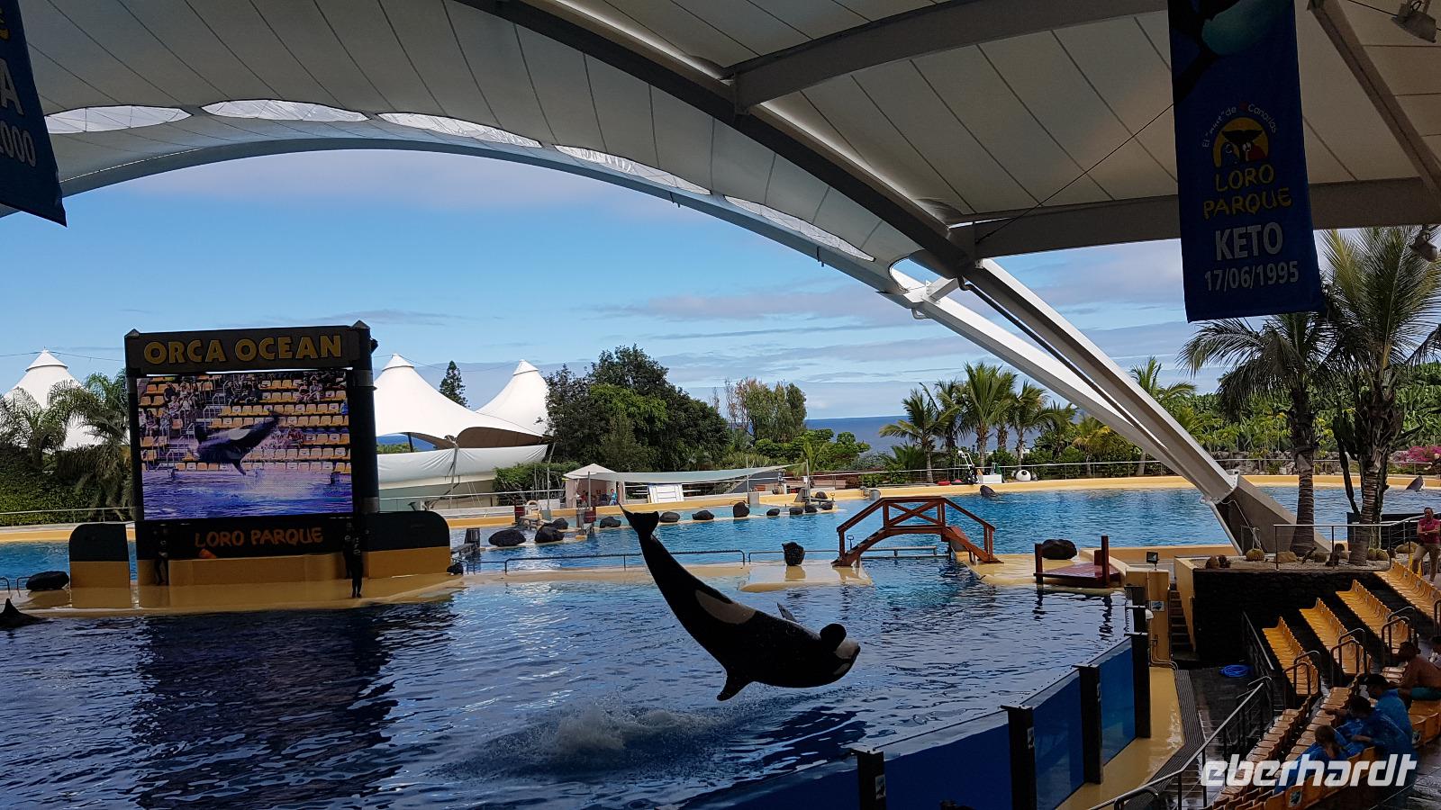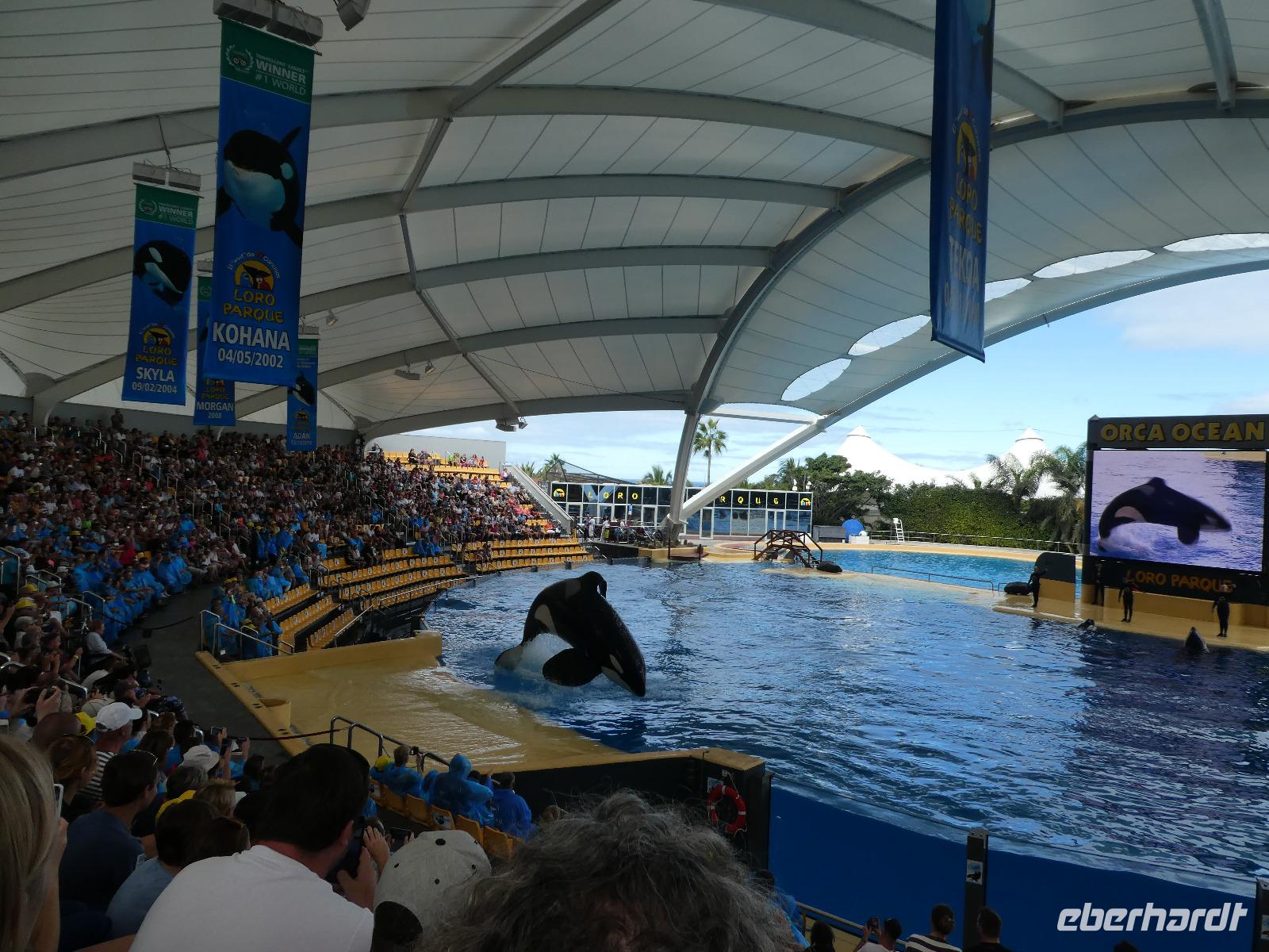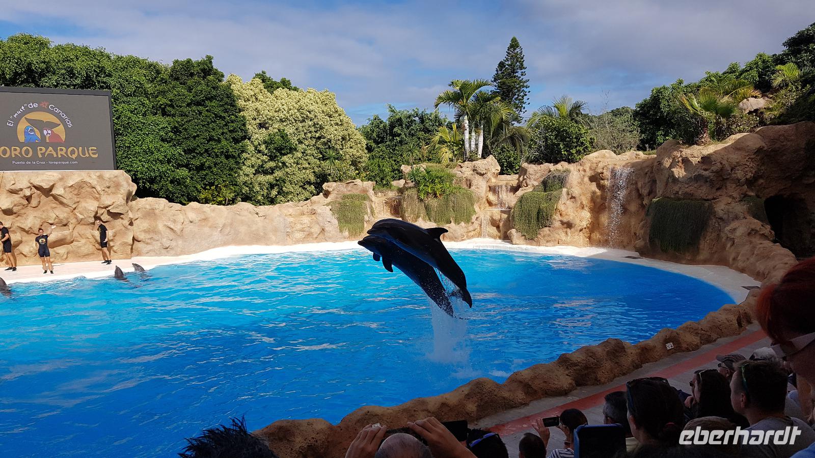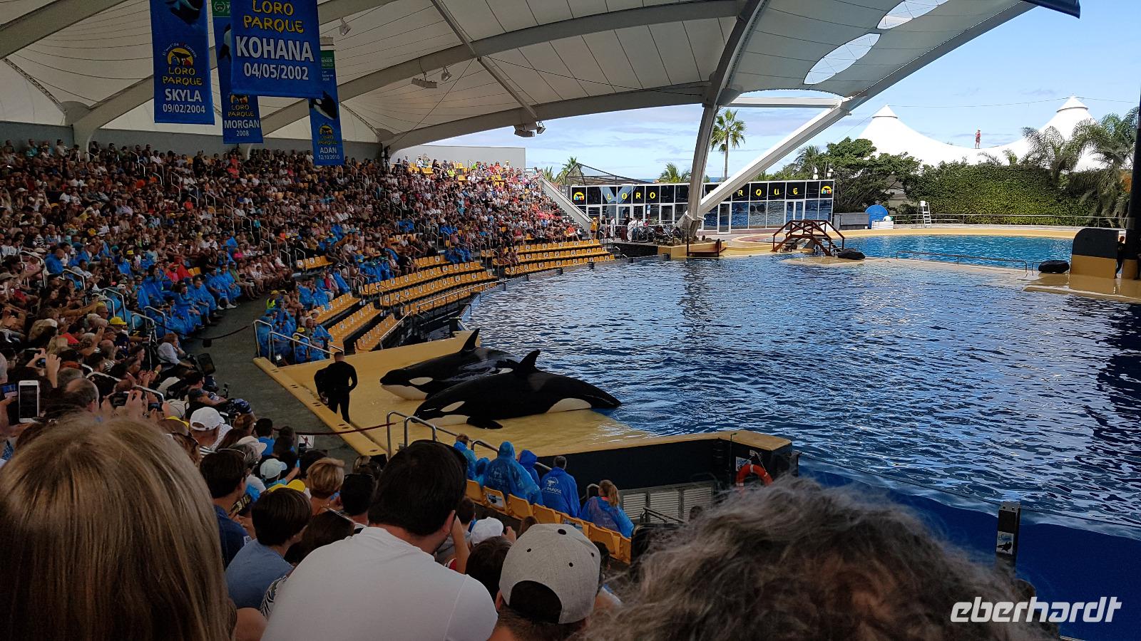 Für den Ausflug in den Loro Park hatten wir alle schon die Eintrittskarten gekauft und so liefen wir ganz entspannt von unserem Hotel in ca. 20 Minuten zum Park. Wir waren früh dort und konnten so die erste Stunde ganz ohne Gedränge die Tiere beobachten. Im Park gibt es verschiedene Tier Shows und wir machten uns einen Plan, um alle Shows besuchen zu können und wir verabredeten uns zu diesen Terminen. Die Zeiten dazwischen spazierten wir in kleineren Gruppen je nach Interessen durch den Park. Die Delphin Show war dann das erste Highlight und gleich darauf folgte die Orca Show. Beeindruckend, wie diese grossen Meeressäugetiere agieren und im Park gab es sogar ein Orca Baby. Der Park bietet ein echtes Tagesprogramm und die verschiedenen Tiergehege sind optimal in die üppige Vegetation eingepasst. Die Show der Seelöwen und der Loros besuchten wir ebenfalls. Die Loros waren die ersten Tiere im Park und gaben ihm seinen Namen. Diese posierlichen Vögel leben in grossen Volieren und in einem riesigen "Käfig", in den die Besucher hineingehen können und so den Vögeln ganz nahe sind. Es war wunderschönes, sonniges Wetter und so verbrachten die meisten Singles die Zeit nach dem Parkbesuch am Strand oder in den Meerwasserpools.