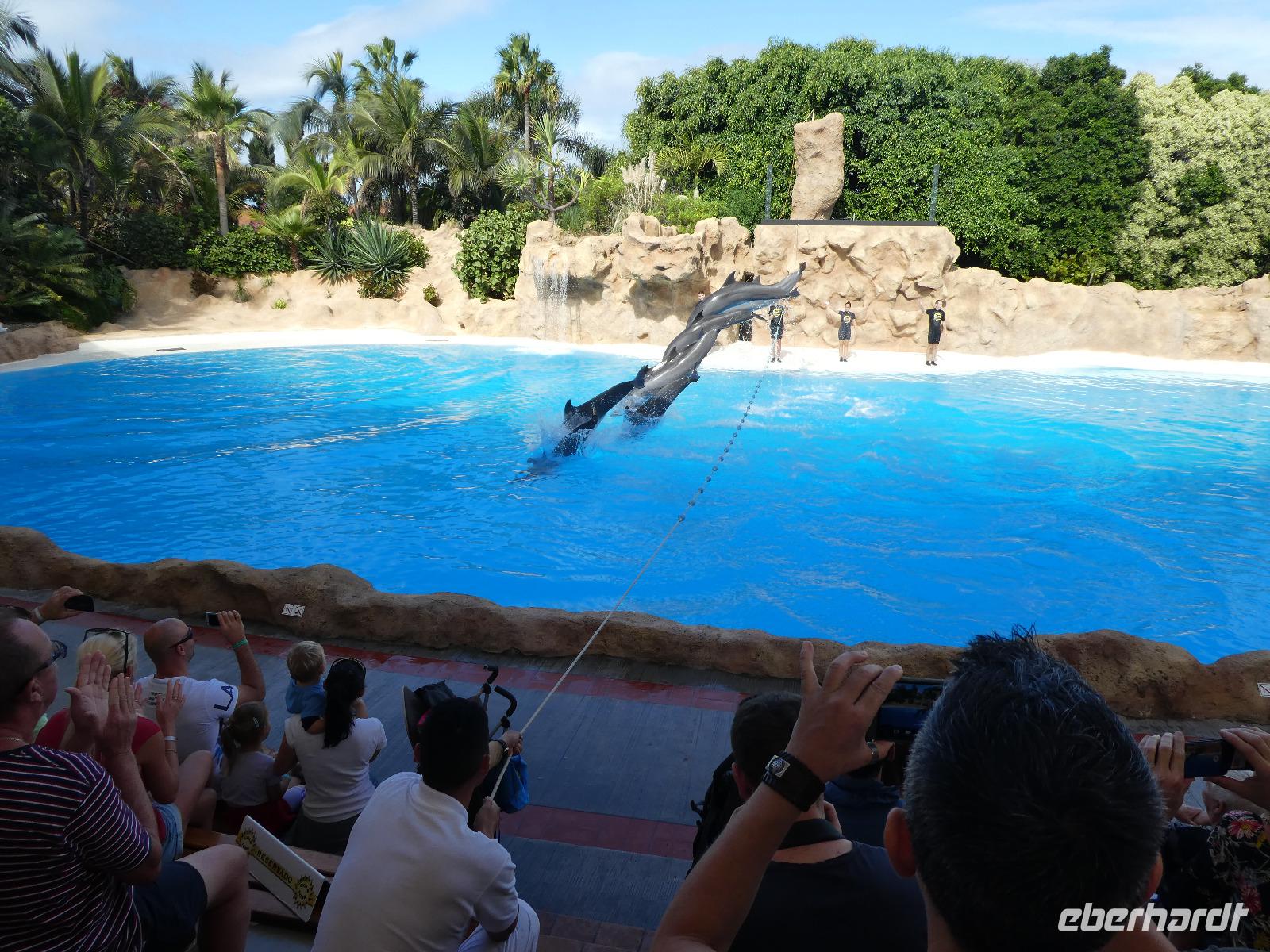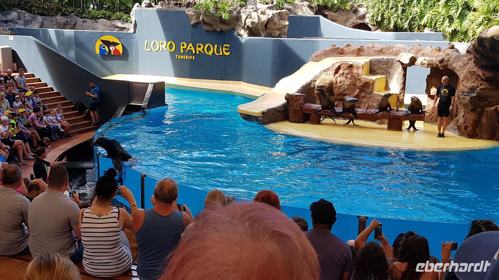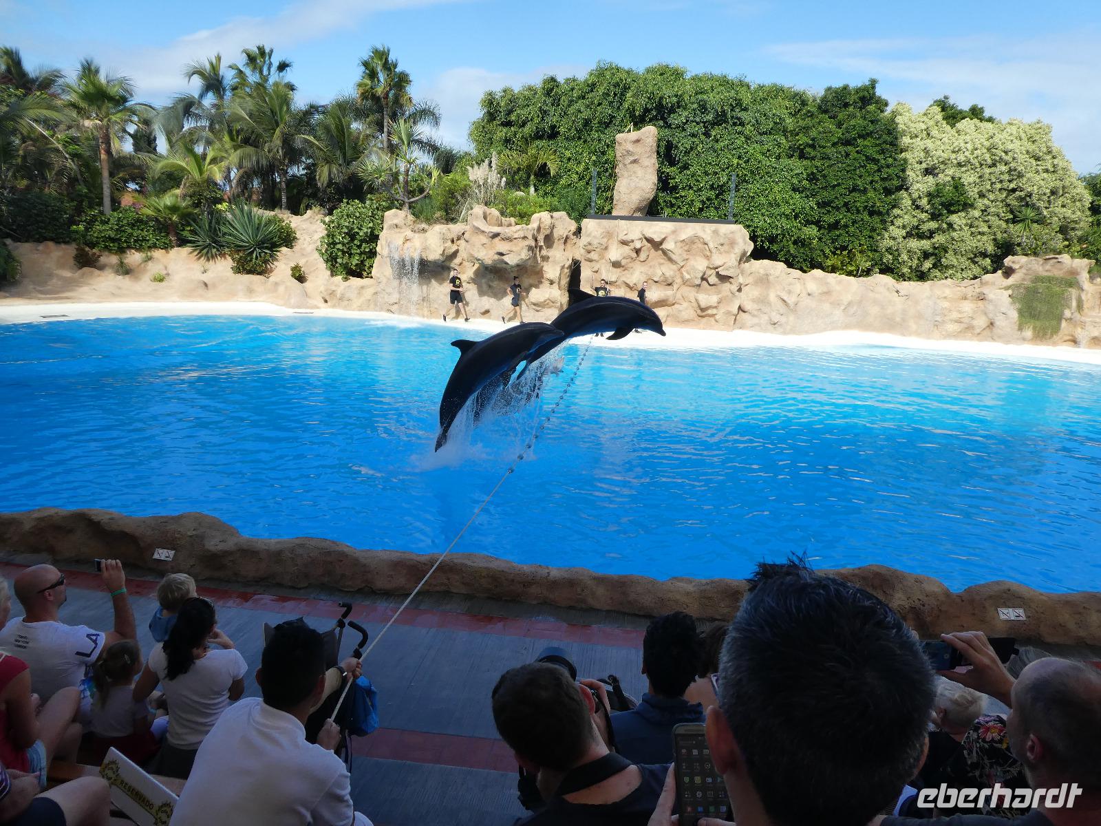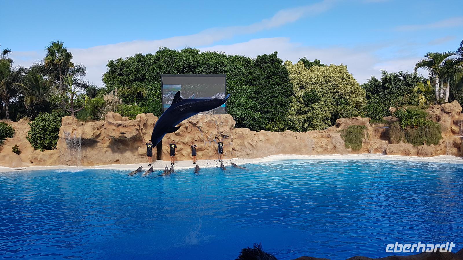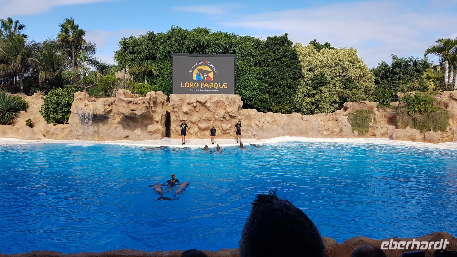 Für den Ausflug in den Loro Park hatten wir alle schon die Eintrittskarten gekauft und so liefen wir ganz entspannt von unserem Hotel in ca. 20 Minuten zum Park. Wir waren früh dort und konnten so die erste Stunde ganz ohne Gedränge die Tiere beobachten. Im Park gibt es verschiedene Tier Shows und wir machten uns einen Plan, um alle Shows besuchen zu können und wir verabredeten uns zu diesen Terminen. Die Zeiten dazwischen spazierten wir in kleineren Gruppen je nach Interessen durch den Park. Die Delphin Show war dann das erste Highlight und gleich darauf folgte die Orca Show. Beeindruckend, wie diese grossen Meeressäugetiere agieren und im Park gab es sogar ein Orca Baby. Der Park bietet ein echtes Tagesprogramm und die verschiedenen Tiergehege sind optimal in die üppige Vegetation eingepasst. Die Show der Seelöwen und der Loros besuchten wir ebenfalls. Die Loros waren die ersten Tiere im Park und gaben ihm seinen Namen. Diese posierlichen Vögel leben in grossen Volieren und in einem riesigen "Käfig", in den die Besucher hineingehen können und so den Vögeln ganz nahe sind. Es war wunderschönes, sonniges Wetter und so verbrachten die meisten Singles die Zeit nach dem Parkbesuch am Strand oder in den Meerwasserpools.