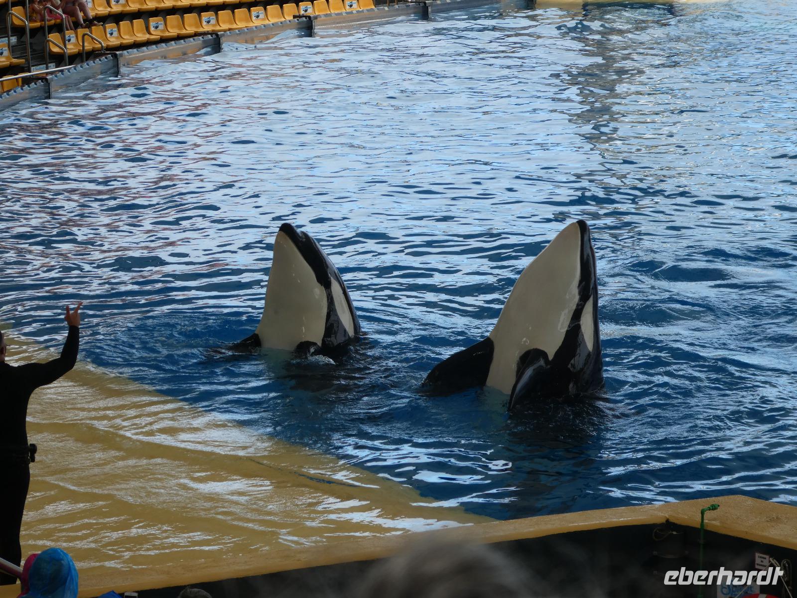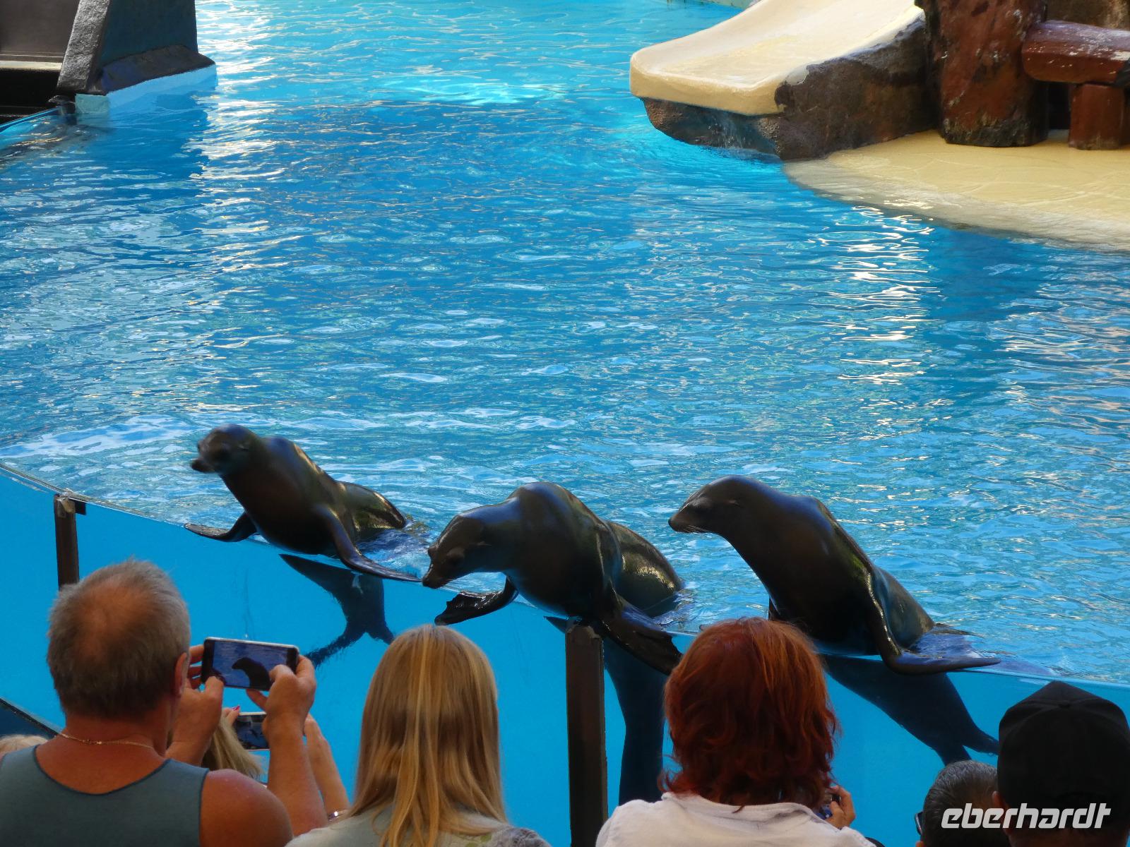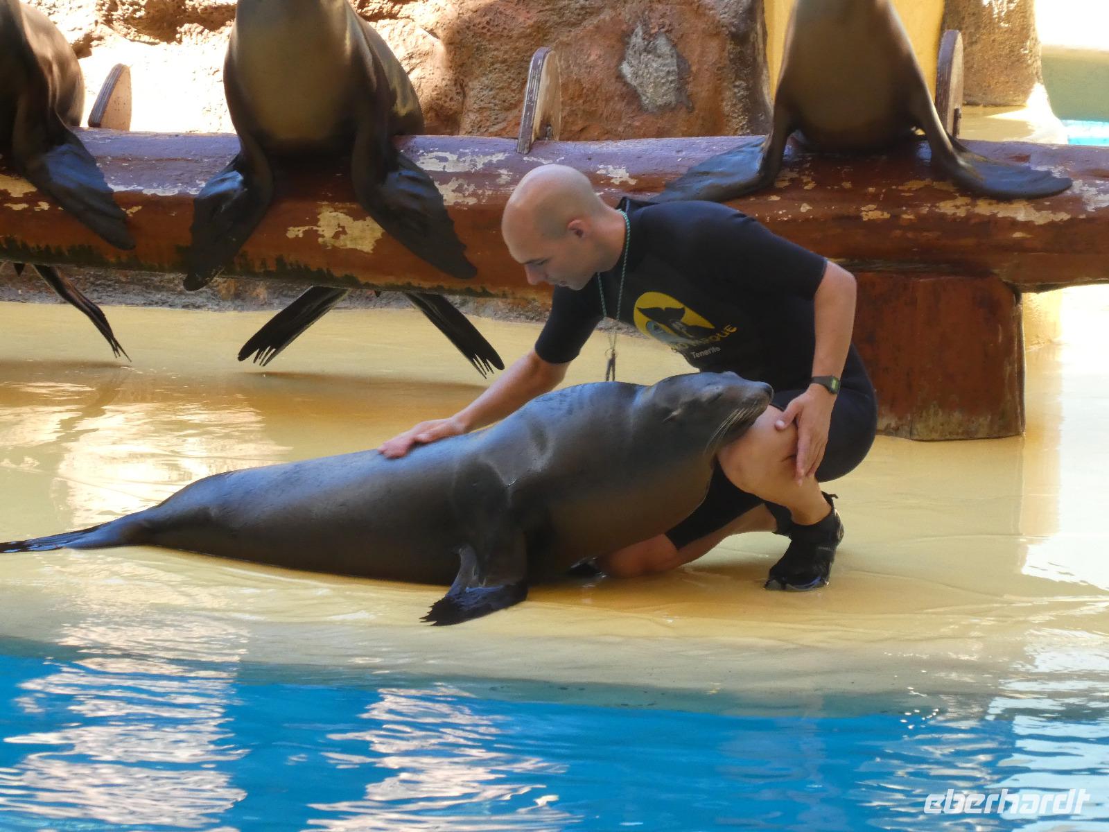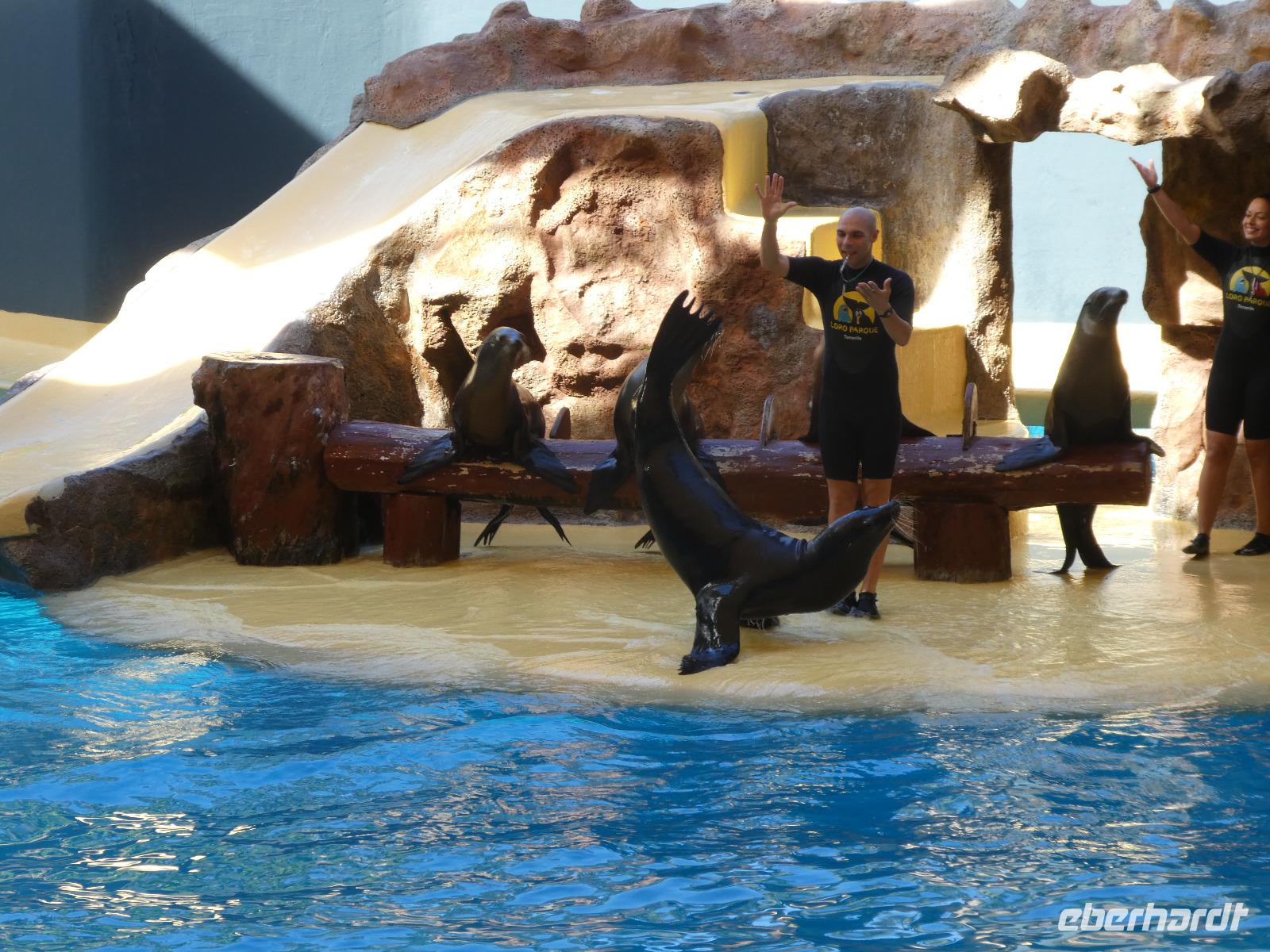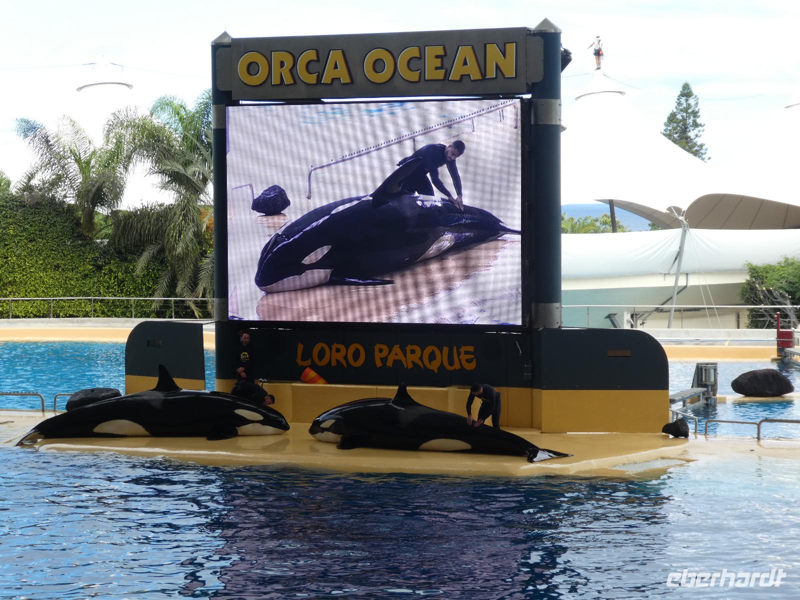Für den Ausflug in den Loro Park hatten wir alle schon die Eintrittskarten gekauft und so liefen wir ganz entspannt von unserem Hotel in ca. 20 Minuten zum Park. Wir waren früh dort und konnten so die erste Stunde ganz ohne Gedränge die Tiere beobachten. Im Park gibt es verschiedene Tier Shows und wir machten uns einen Plan, um alle Shows besuchen zu können und wir verabredeten uns zu diesen Terminen. Die Zeiten dazwischen spazierten wir in kleineren Gruppen je nach Interessen durch den Park. Die Delphin Show war dann das erste Highlight und gleich darauf folgte die Orca Show. Beeindruckend, wie diese grossen Meeressäugetiere agieren und im Park gab es sogar ein Orca Baby. Der Park bietet ein echtes Tagesprogramm und die verschiedenen Tiergehege sind optimal in die üppige Vegetation eingepasst. Die Show der Seelöwen und der Loros besuchten wir ebenfalls. Die Loros waren die ersten Tiere im Park und gaben ihm seinen Namen. Diese posierlichen Vögel leben in grossen Volieren und in einem riesigen "Käfig", in den die Besucher hineingehen können und so den Vögeln ganz nahe sind. Es war wunderschönes, sonniges Wetter und so verbrachten die meisten Singles die Zeit nach dem Parkbesuch am Strand oder in den Meerwasserpools.