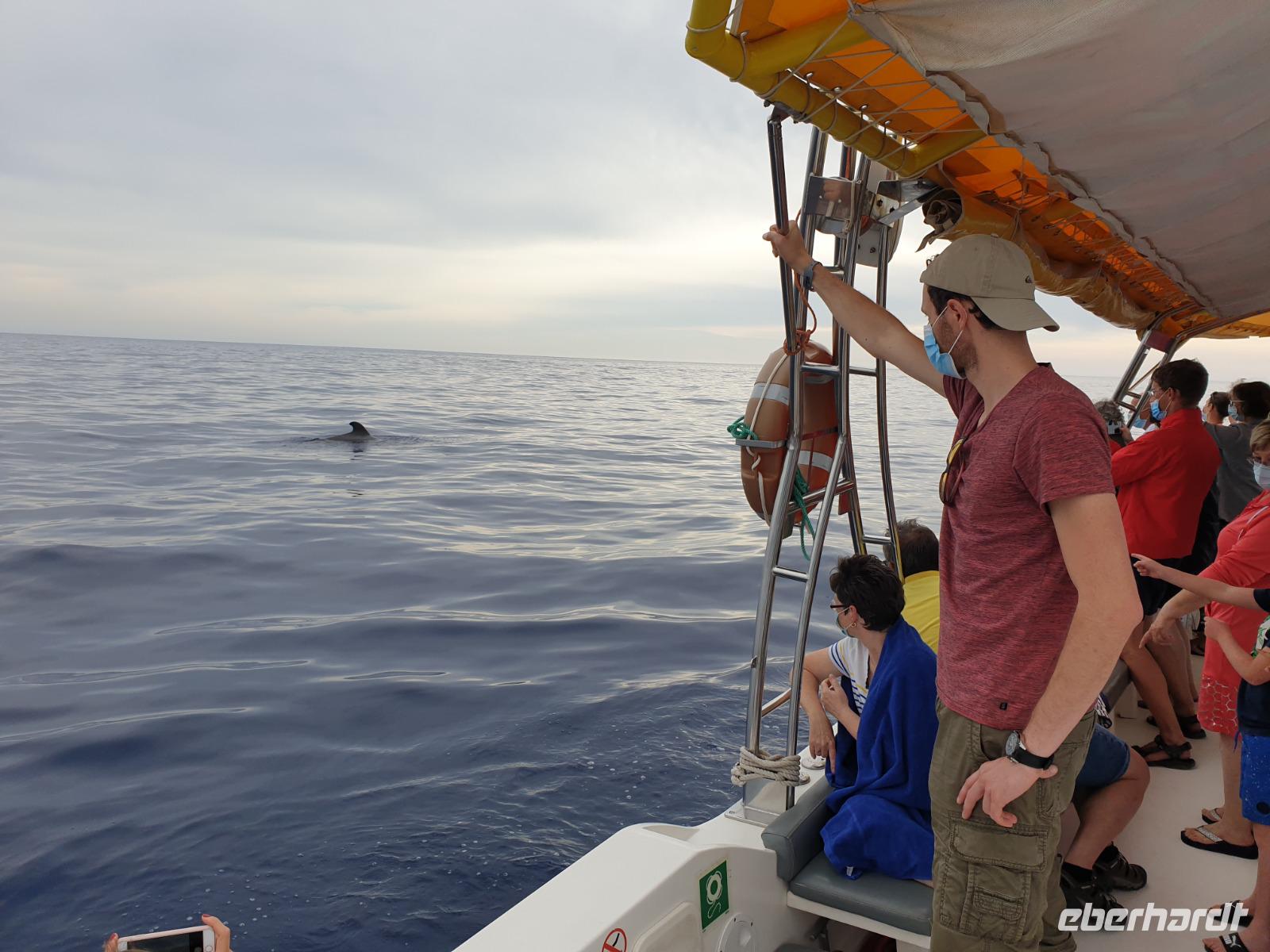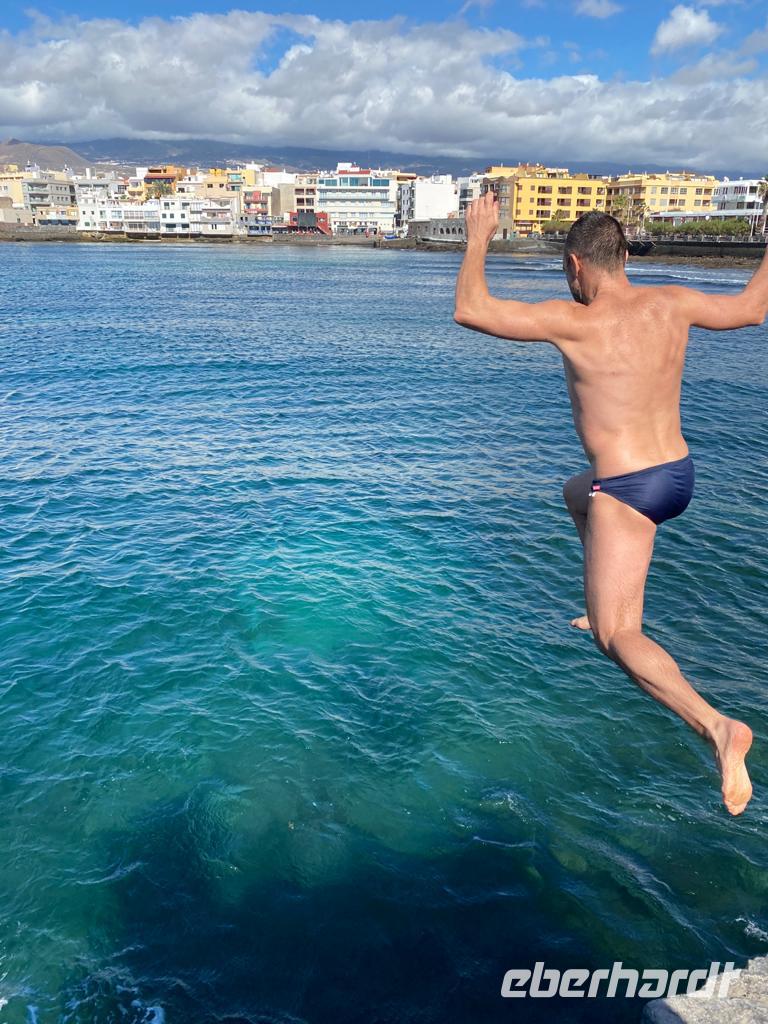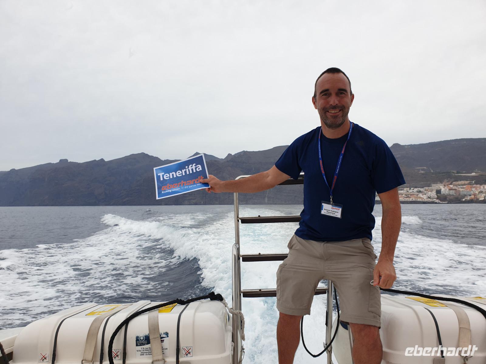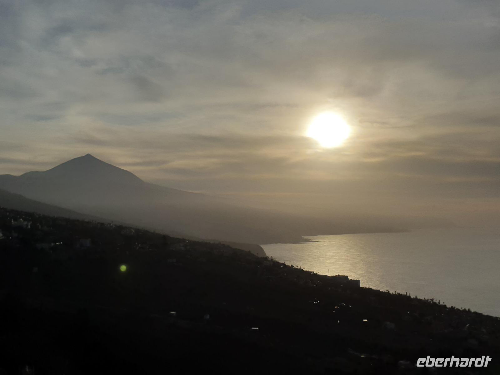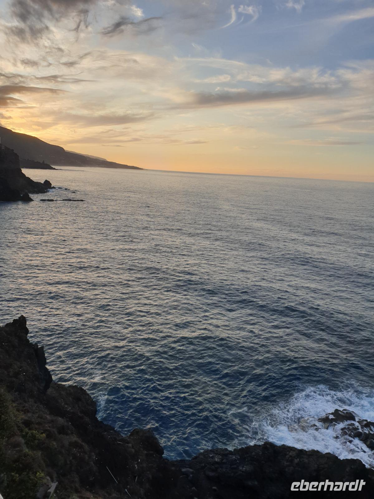 Wir fuhren weiter zu Europas zweitgrößter Steilküste und ihren impossanten Felsformation des Acantilados de Los Gigantes, den "Klippen der Riesen". Am frühen Nachmittag erwartet uns eine Bootsfahrt auf dem Atlantik. Vom kleinen Yachthafen in Los Gigantes aus fuhren wir entlang der pittoresken Steilküste zu den Kolonien der hier beheimateten Grindwale. Wir hatten Glück und sahen Delfinen. Aber nicht nur Delfinen! Bei dieser ca. 3 stündigen Bootsfahrt kann man auch Wale beobachten. Wir fuhren bis zur geschützten Badebucht Masca (oder Masca Schlucht Strand genannt) und dort konnten wir auch etwas essen und sogar baden. Vom Boot konnte man, wenn man es sich zutraute, direkt ins Meer springen und dann durch Treppen wieder am Bord kommen um sich abzutrocknen. Wir fast alle haben es zugetraut und es war einfach herrlich. Wir hatten auch kostenlose Getränke während der Fahrt und man kann nur sagen: mit Bier unter der Sonne und mit Salz auf der Haut vom Meerwasser an Deck zu entspannen ist ein einzigartiges Erlebeniss, oder? Zurück nach Puerto de la Cruz hatten wir heute wieder einen herrlichen Sonnenuntergang. Unvergesslich!
