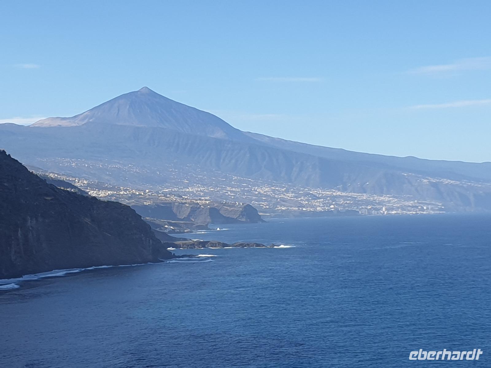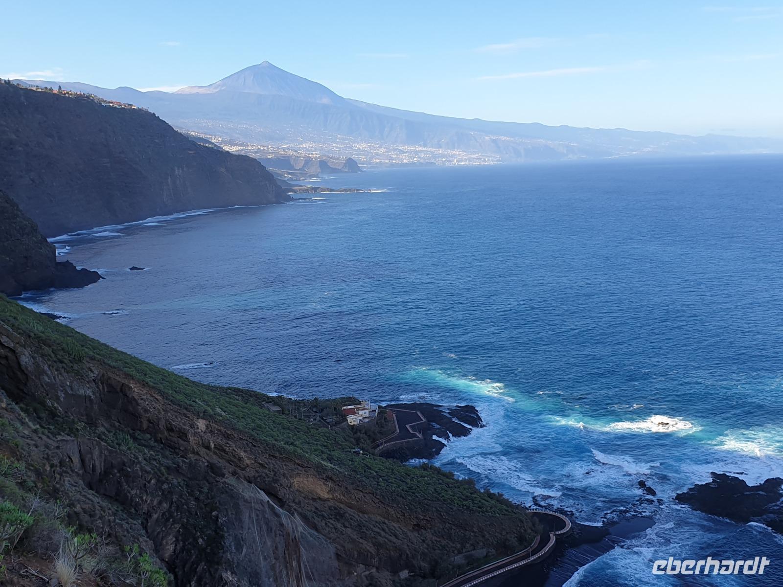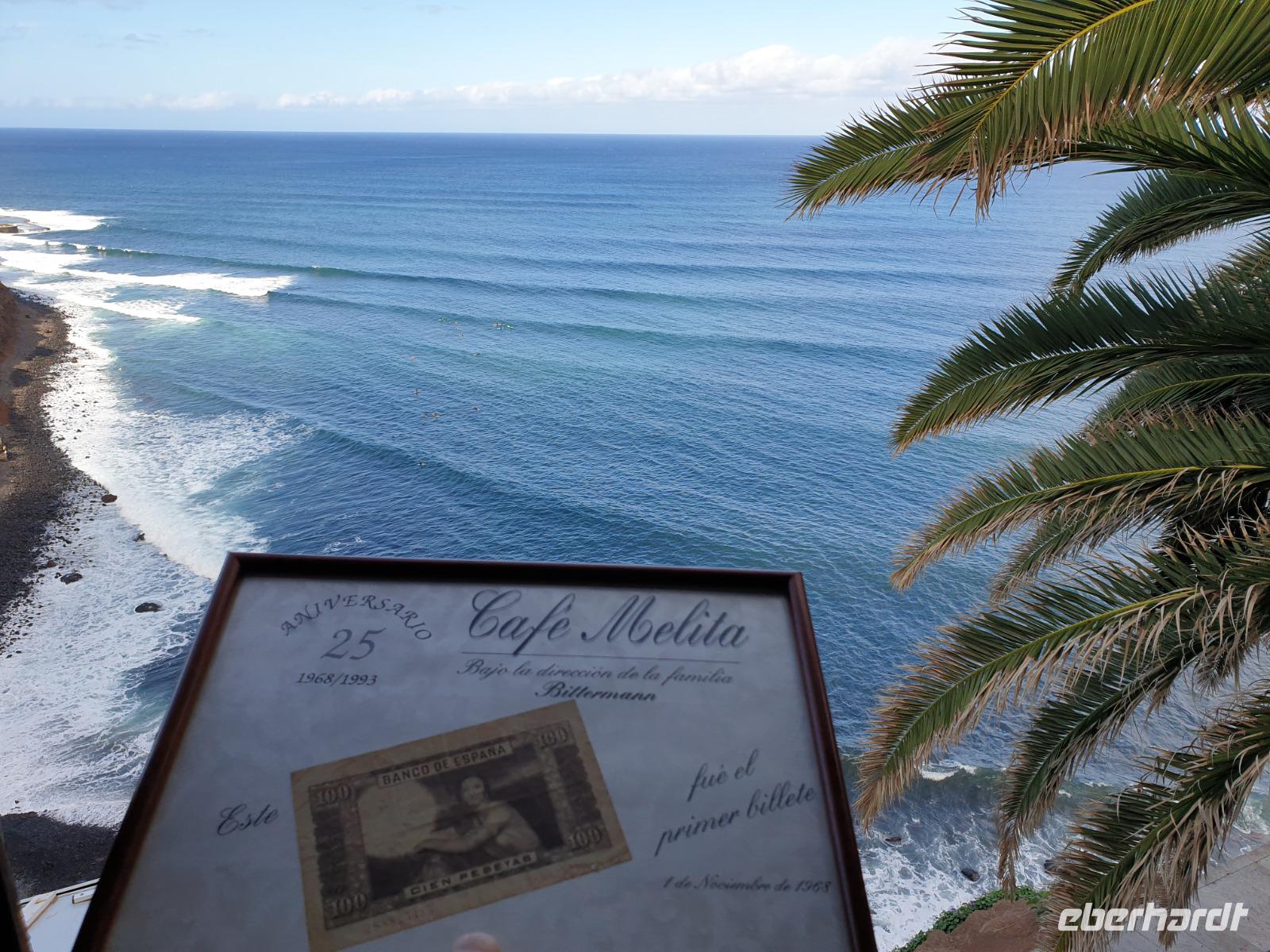 Nach dem Frühstück fahren wir erstmals ins Blaue sozusagen. Wir wollen heute auch dort vorbei fahren und sehen wie die Leute hier so leben. Wir fahren erstmals zum Aussichtspunkt bei Mesa del Mar wo man einen den besten Blick auf dem Teide hat. Schön oder? Entlang der Küste fahren wir weiter nach Punta del Hidalgo, ein traumhaft schöner Verweilplatz am Meer. Wie wäre es mit einem belebenden Barraquito, einer kanarischen Kaffeespezialität. Benjamin zeigt den Gästen hier dafür einen absoluten Geheimtipp mit Geschichte. Jawohl, Überraschung ist gelungen. Wir fahren bis zum Konditorei und Kaffee Palmelita (ehemalige Kaffee Melita). Eine Institution hier auf der Insel seit 1968. Hier haben wir leckere Kuchen und Kaffee wie Barraquito (mit oder ohne Alkohol) oder Cappuccino mit Blick auf das ewige blaues Meer.