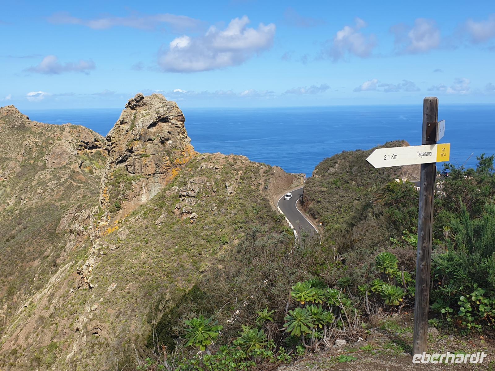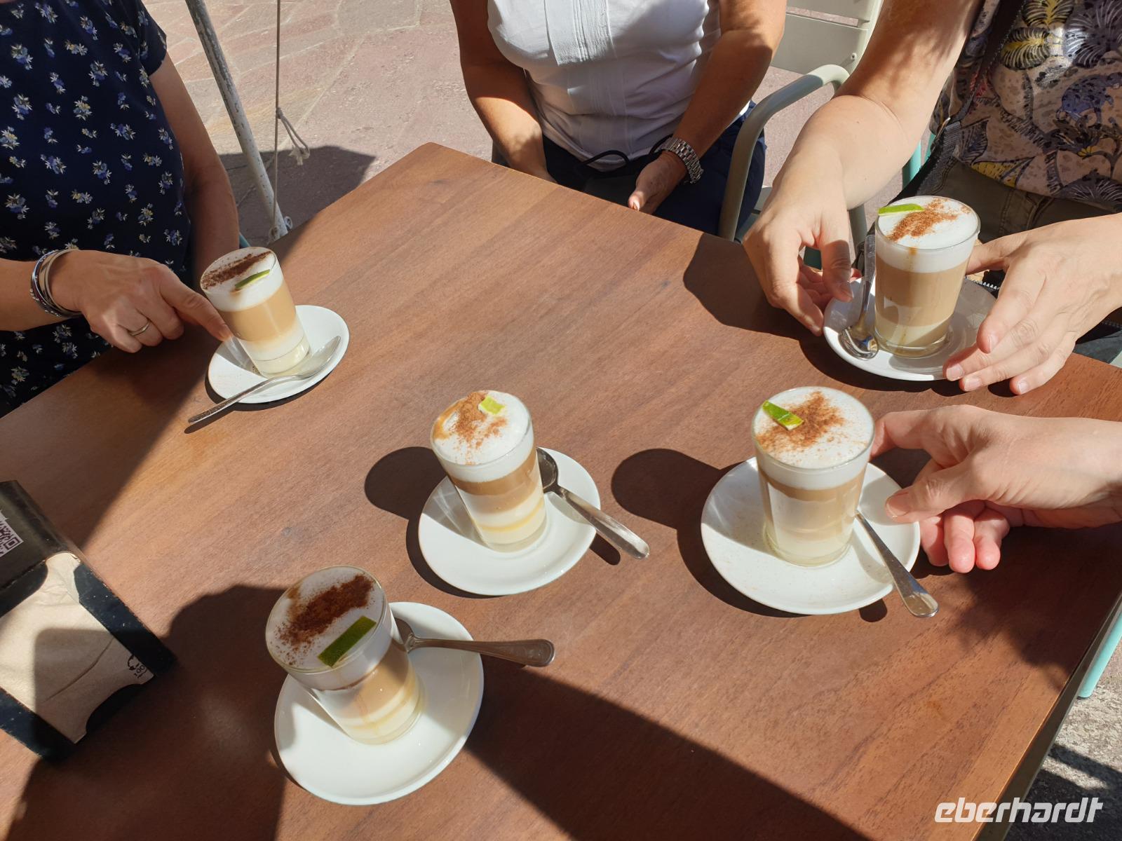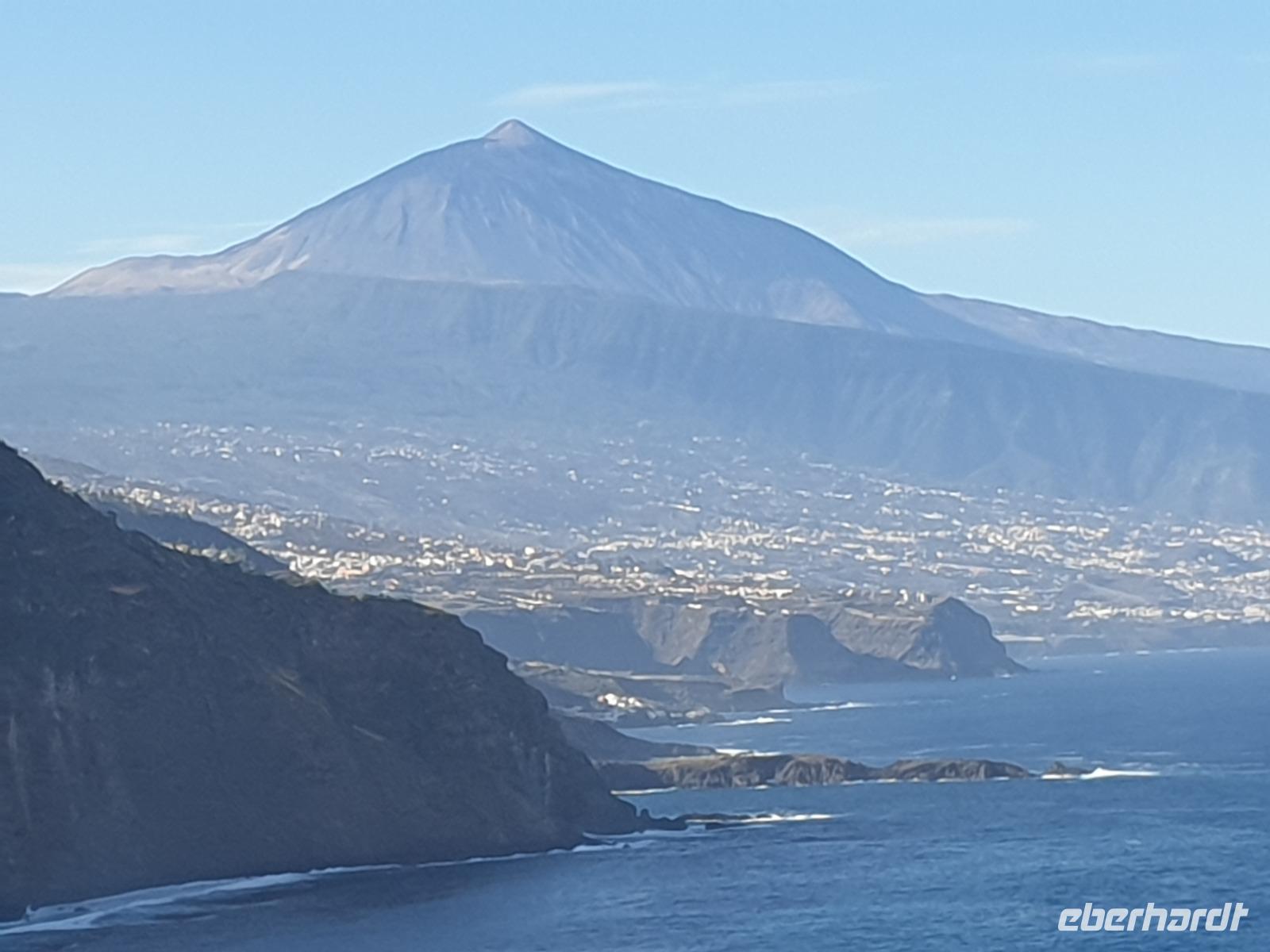 Nach dem Frühstück fahren wir erstmals ins Blaue sozusagen. Wir wollen heute auch dort vorbei fahren und sehen wie die Leute hier so leben. Wir fahren erstmals zum Aussichtspunkt bei Mesa del Mar wo man einen den besten Blick auf dem Teide hat. Schön oder? Entlang der Küste fahren wir weiter nach Punta del Hidalgo, ein traumhaft schöner Verweilplatz am Meer. Wie wäre es mit einem belebenden Barraquito, einer kanarischen Kaffeespezialität. Benjamin zeigt den Gästen hier dafür einen absoluten Geheimtipp mit Geschichte. Jawohl, Überraschung ist gelungen. Wir fahren bis zum Konditorei und Kaffee Palmelita (ehemalige Kaffee Melita). Eine Institution hier auf der Insel seit 1968. Hier haben wir leckere Kuchen und Kaffee wie Barraquito (mit oder ohne Alkohol) oder Cappuccino mit Blick auf das ewige blaues Meer.