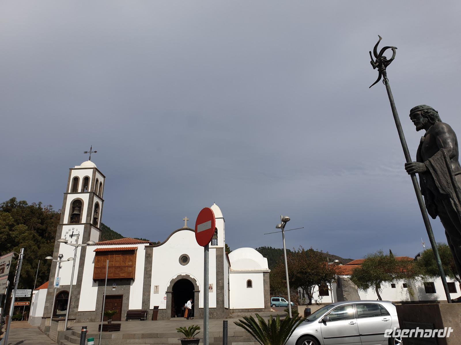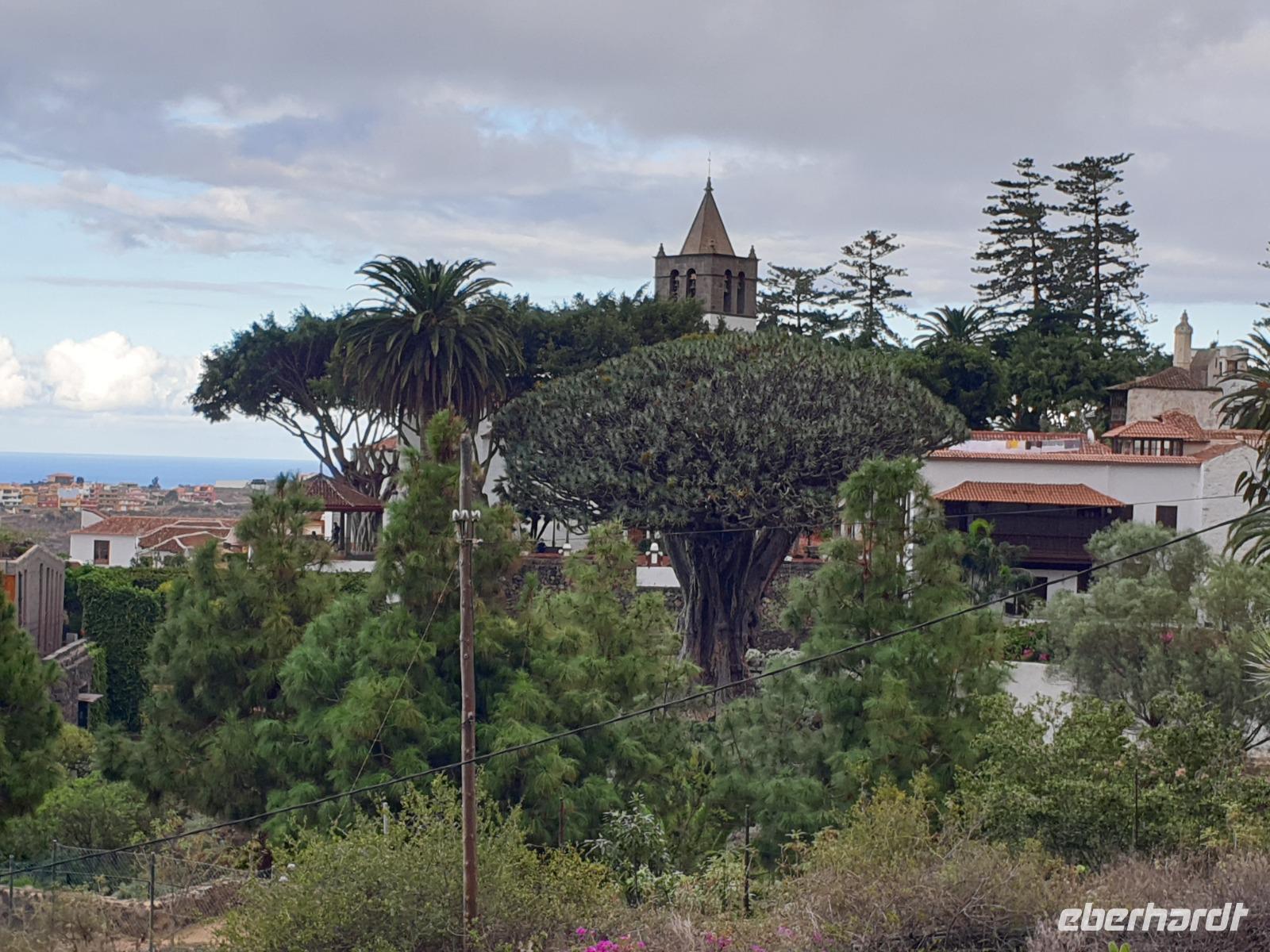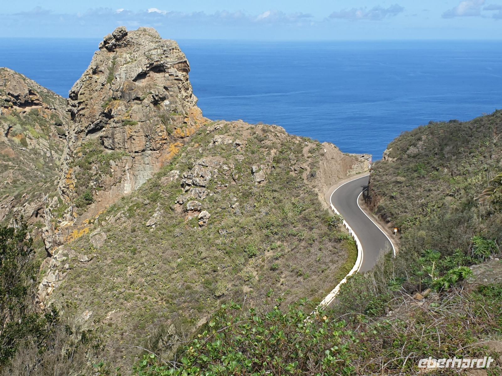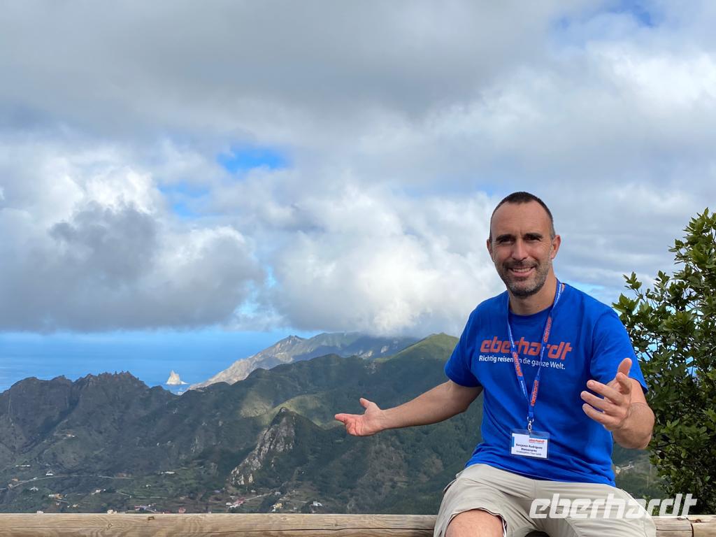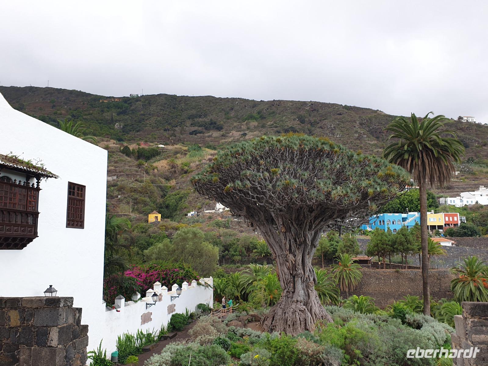 Der heutige Tag stand für uns heute für eigene Erkundungen in Puerto de la Cruz zur Verfügung. Man hatte auch Zeit, die Annehmlichkeiten des Hotels weiter zu genießen und ein wenig zu entspannen oder entlang der Promenade zu spazieren und dabei die verwinkelten Gassen zu entdecken und die leckeren Spezialitäten der Stadt zu verkosten. Ihre Eberhardt-Reiseleitung Benjamin hatte noch weitere Empfehlungen und da der berühmten Loro Park zu hatte machten wir uns wieder einen schönen Tag. Wir starten vom Hotel und fuhren erstmals nach Buenavista del Norte wo wir am Hauptplatz einen zweiten Frühstück mit den Einheimnise auf einer Terrasse genießen. Weiter fuhren wir nach Punta de Teno, mit seinem Leuchtturm, von wo man auch die Nachbarinseln La Gomera und La Palma sehen kann. Danach fuhren wir in den gebirgigen Nordwesten Teneriffas mit Stopp beim Aussichtspunkt von Garachico von oben. Dieser befindet sich auf einer Anhöhe an der Landstraße und bietet einen schönen Überblick über den Ort, die Bucht und die "kleine Insel" im Meer. Wie gestern schon gehört, hier ist den vielen Auswanderern, die in früheren Zeiten über den Hafen in die weite Welt aufbrachen, ein Denkmal gesetzt worden.