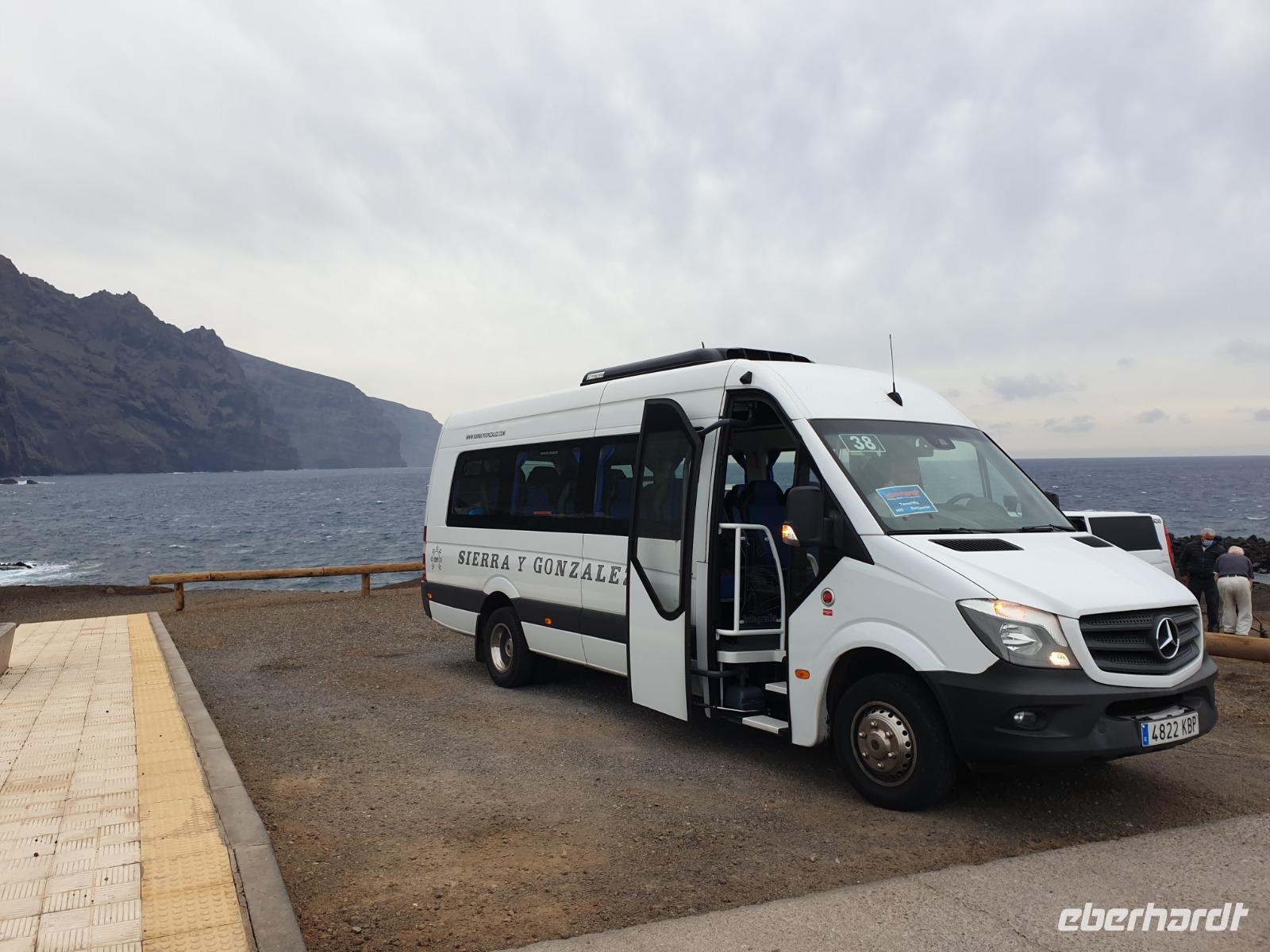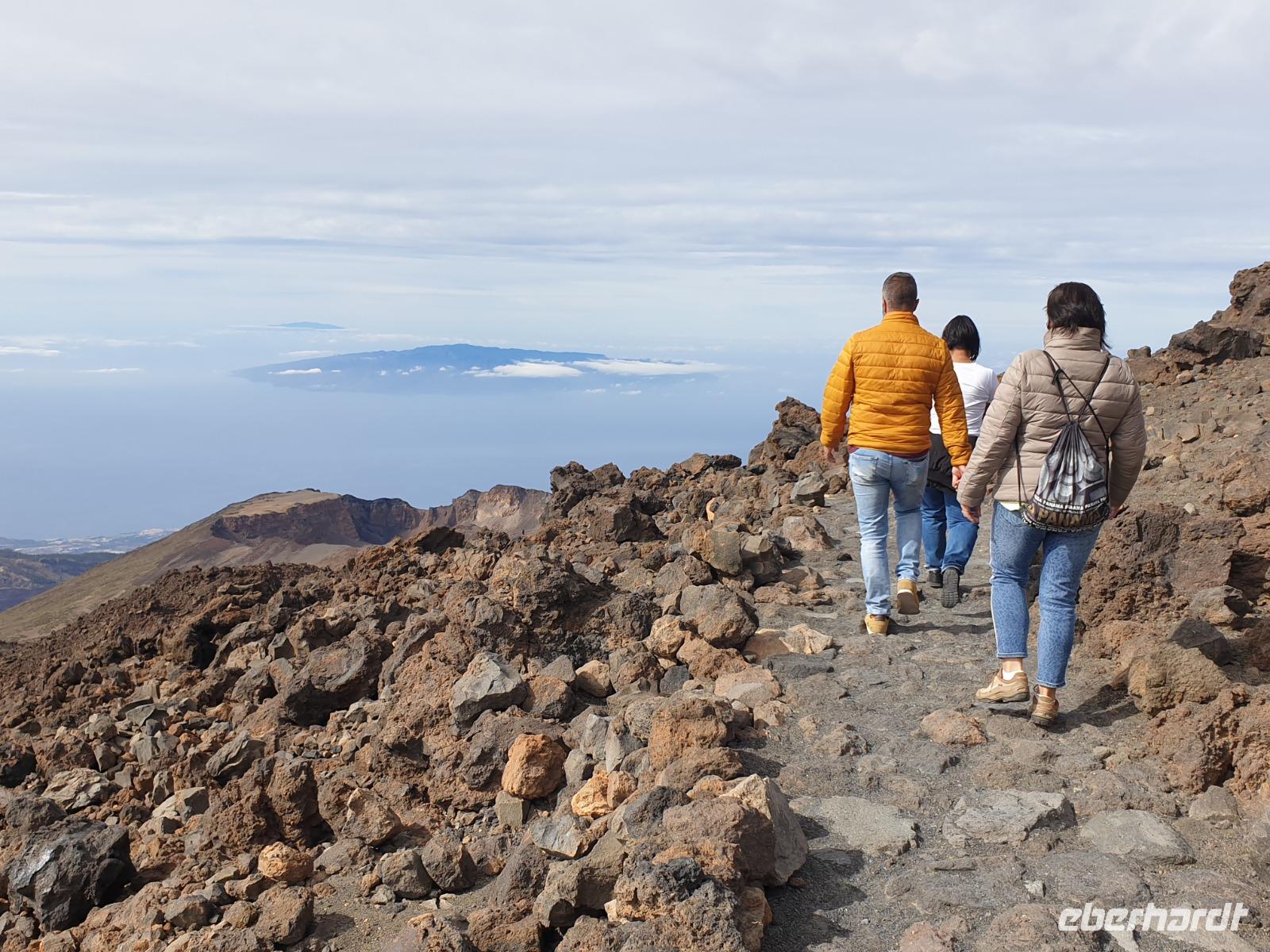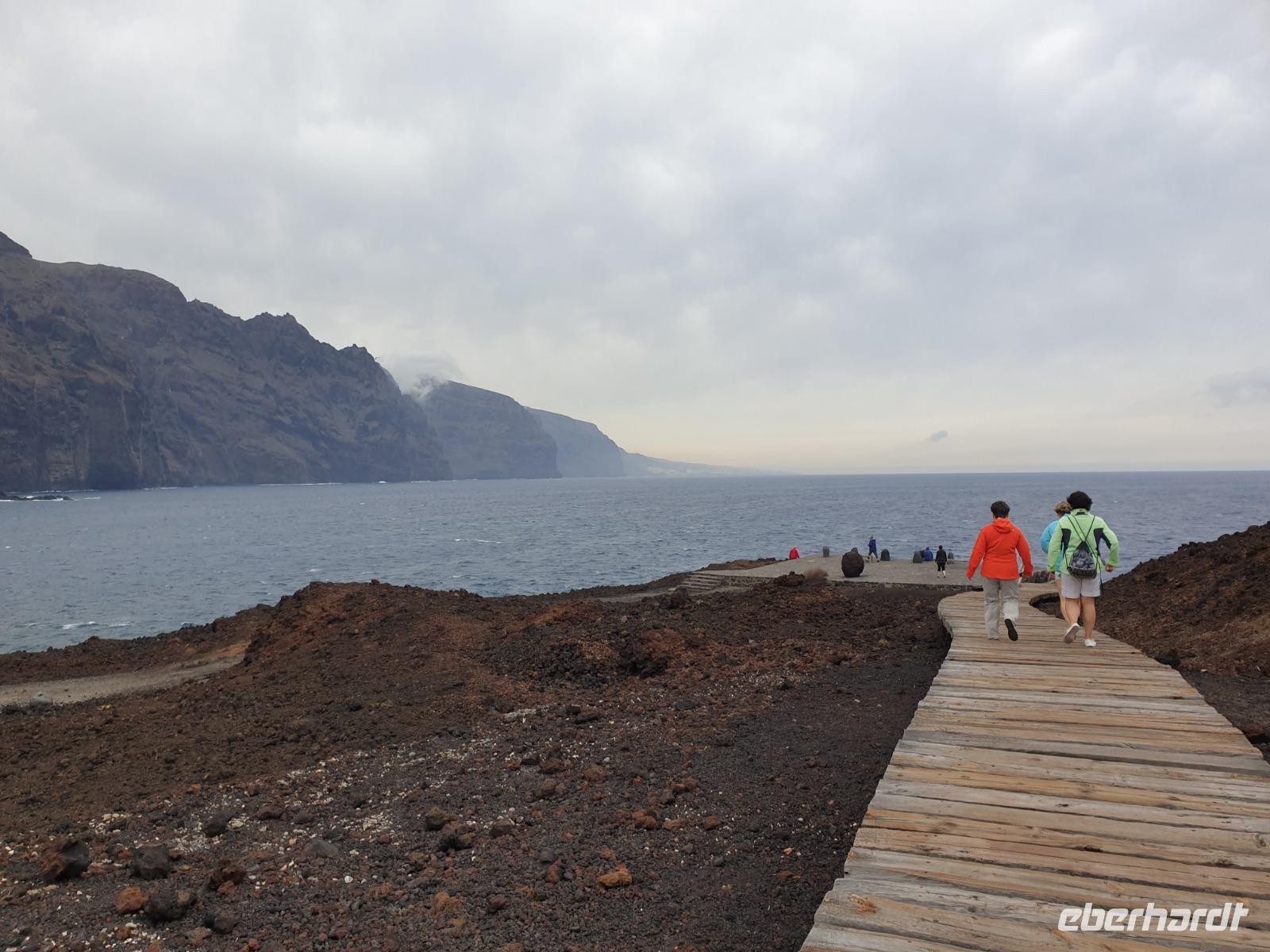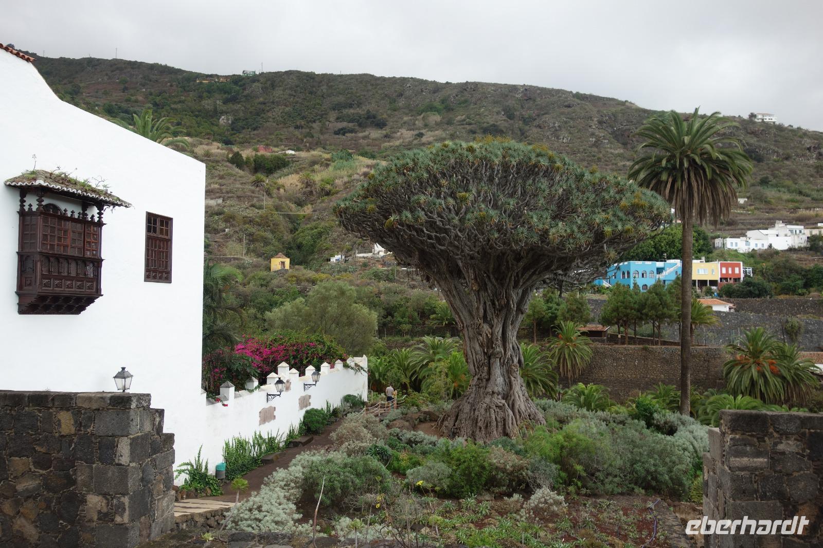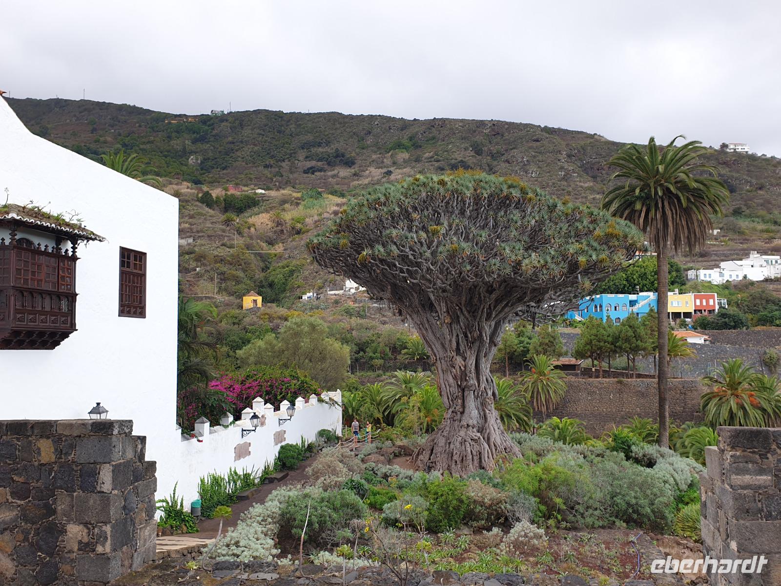 Der heutige Tag stand für uns heute für eigene Erkundungen in Puerto de la Cruz zur Verfügung. Man hatte auch Zeit, die Annehmlichkeiten des Hotels weiter zu genießen und ein wenig zu entspannen oder entlang der Promenade zu spazieren und dabei die verwinkelten Gassen zu entdecken und die leckeren Spezialitäten der Stadt zu verkosten. Ihre Eberhardt-Reiseleitung Benjamin hatte noch weitere Empfehlungen und da der berühmten Loro Park zu hatte machten wir uns wieder einen schönen Tag. Wir starten vom Hotel und fuhren erstmals nach Buenavista del Norte wo wir am Hauptplatz einen zweiten Frühstück mit den Einheimnise auf einer Terrasse genießen. Weiter fuhren wir nach Punta de Teno, mit seinem Leuchtturm, von wo man auch die Nachbarinseln La Gomera und La Palma sehen kann. Danach fuhren wir in den gebirgigen Nordwesten Teneriffas mit Stopp beim Aussichtspunkt von Garachico von oben. Dieser befindet sich auf einer Anhöhe an der Landstraße und bietet einen schönen Überblick über den Ort, die Bucht und die "kleine Insel" im Meer. Wie gestern schon gehört, hier ist den vielen Auswanderern, die in früheren Zeiten über den Hafen in die weite Welt aufbrachen, ein Denkmal gesetzt worden.