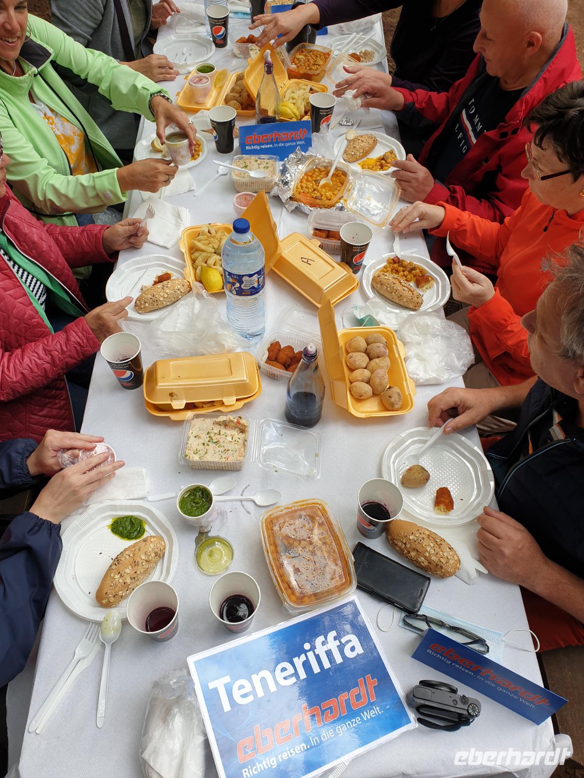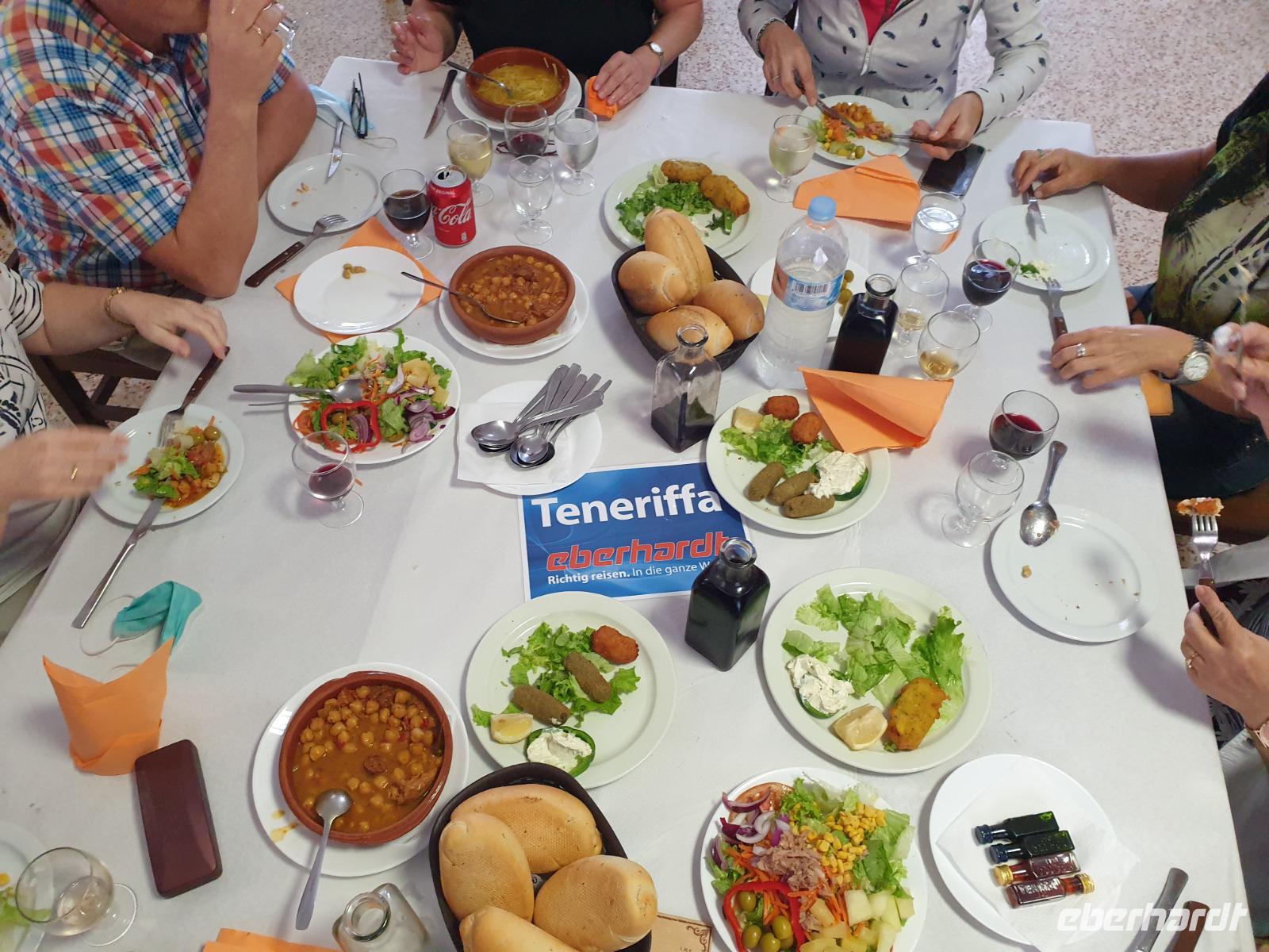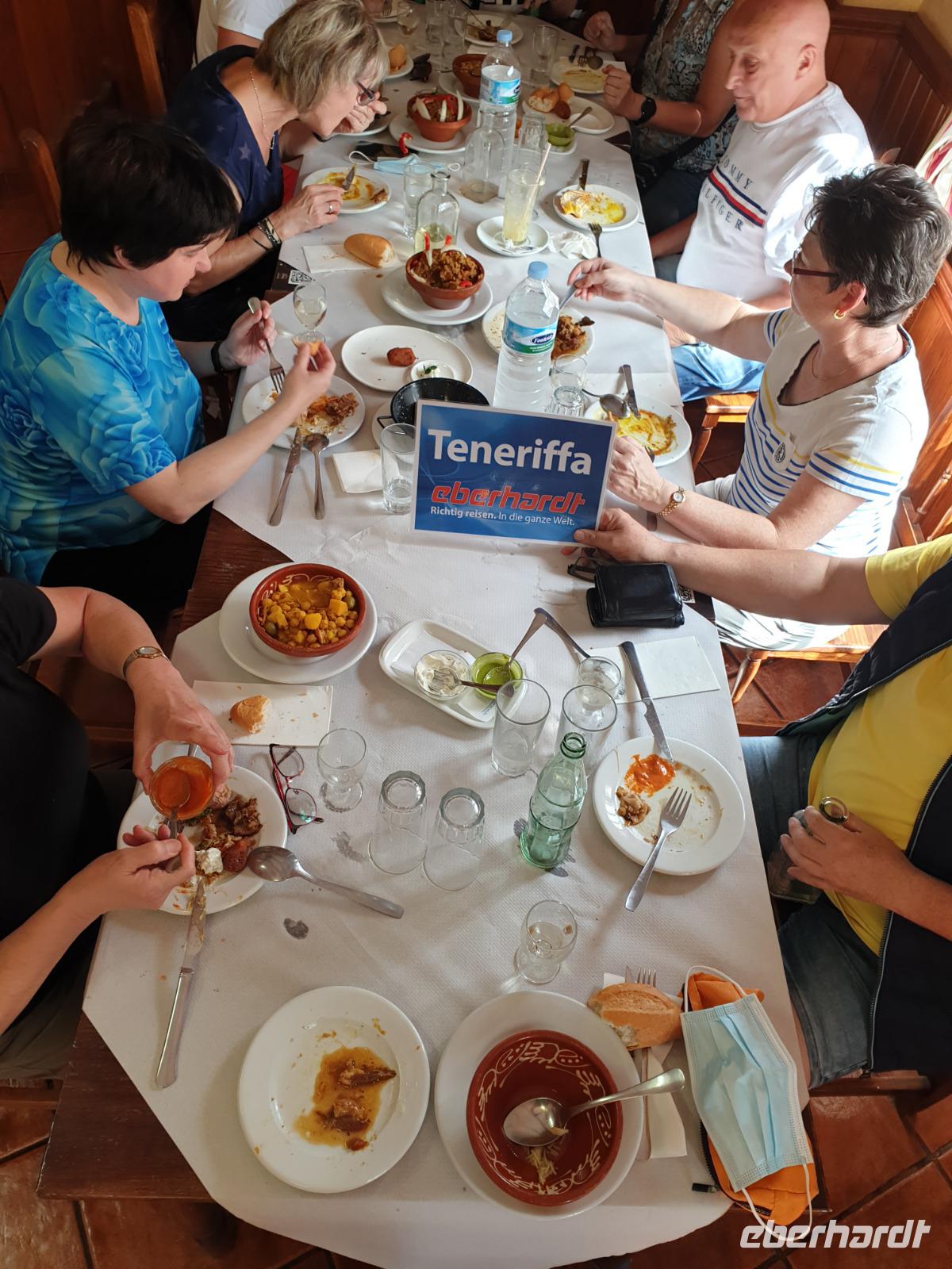 Zur Mittagszeit kehren wir in eine Bodega bei La Esperanza ein. Benjamin zeigt uns eine inseltypische gastronomische Einrichtung (hier Guachinche gennant) und verkosten verschiedenen Leckereien. Das schmackhafte Mojo Soße darf natürlich davon mit Papas Arrugadas (kanarischen Kartoffeln) gekostet werden.. Zu typisch kanarischen Tapas wird uns selsbtverstänlich der regionale Wein zur Verkostung angeboten. Einfach genial. Es waren nur Einheimnise und wir waren die einzige Touristen da??