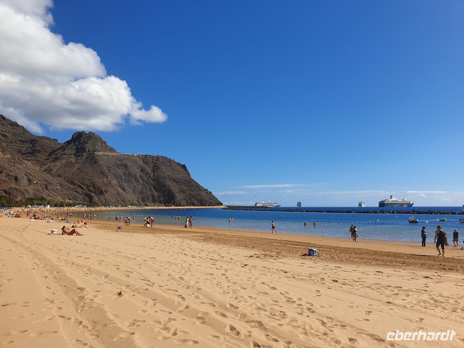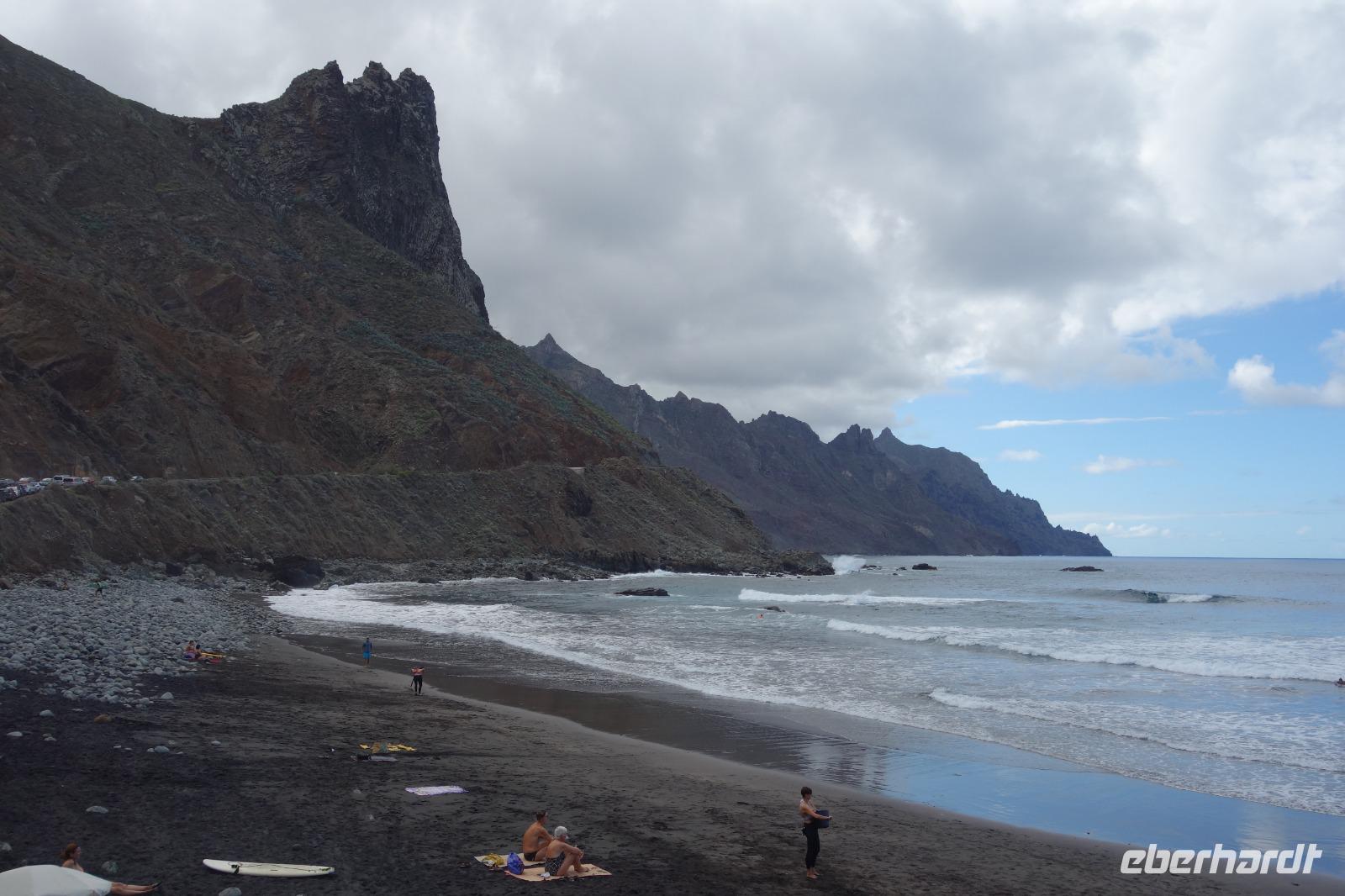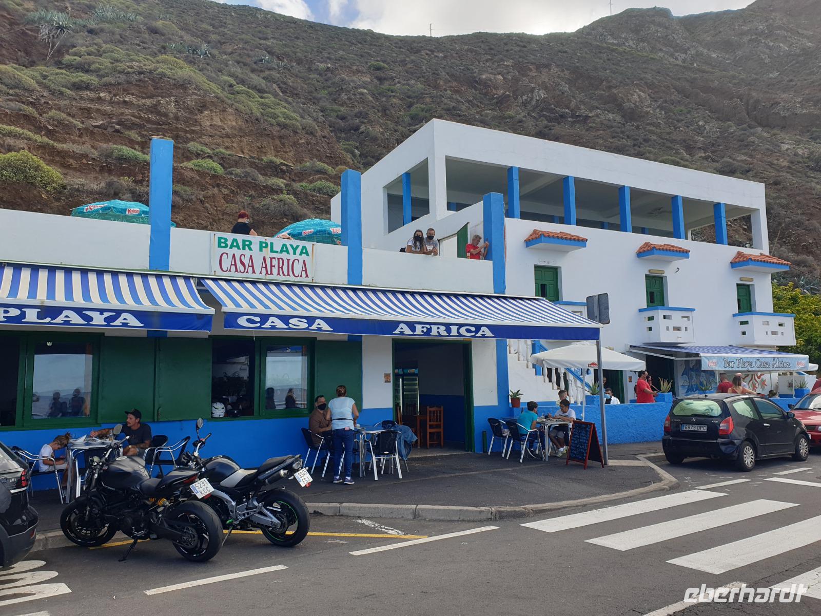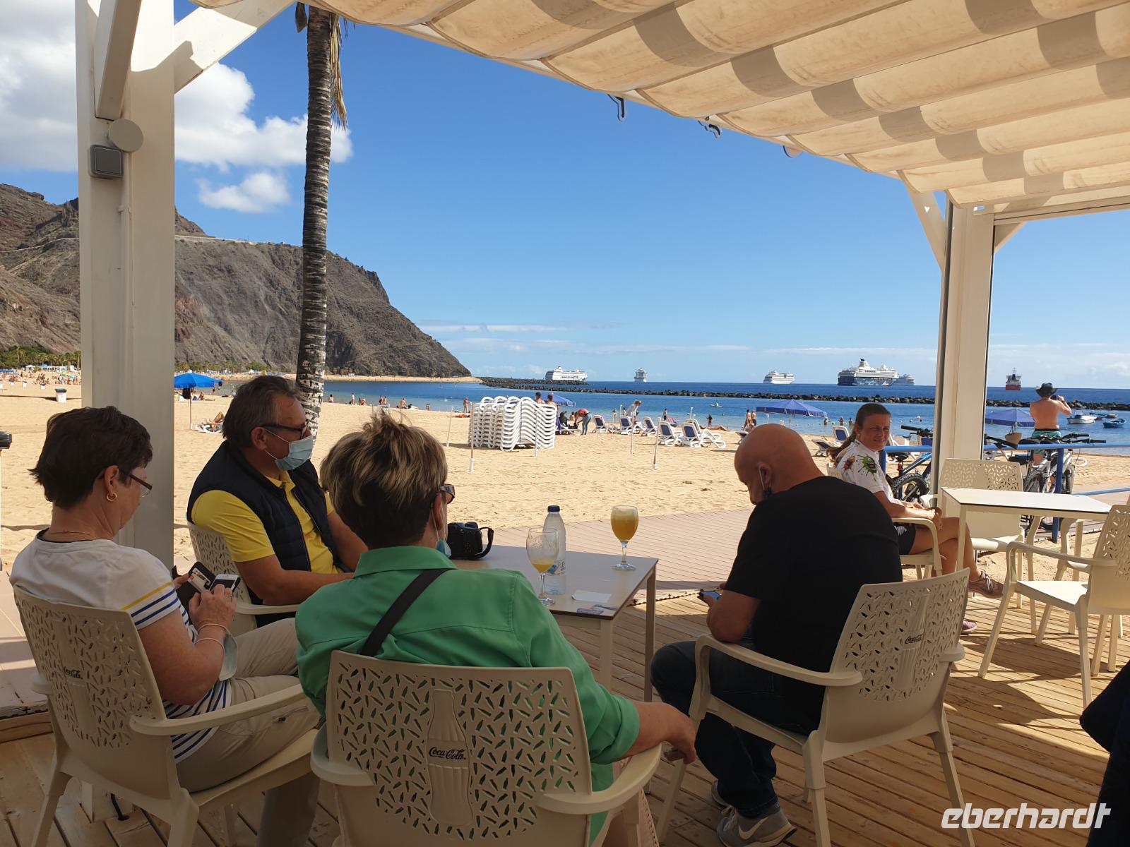 Nach einem ausgedehnten Frühstück fuhren wir heute zunächst in die Hauptstadt Teneriffas. Heute ist Sonntag und zum Glück ruhiger für uns. Wir halten erstmals am Auditorio oder Konzerthalle von Calatrava und weiter spazieren wir in Mercado de Africa Markthalle, die heute offen hat. Herrlich die viele verschieden Fische und Obst, die zu verkaufen sind. Viele von denen, sind neu für uns. In Santa Cruz haben wir dann die Möglichkeit, am einzigen goldenen Strand der Insel las Teresitas einen kurzen Spaziergang zu machen oder wie alle von uns machten, einfach eine frisch gepresste Orangensaft und einen Barraquito Kaffee auf eine Terrasse mit Blick aus Meer zu trinken. Im nordöstlichen Teil der Insel Teneriffa durchfuhren wir im Anschluss die unvergleichlich schöne Landschaft, des Anaga-Gebirge mit seinen schroffen Felsen und Lorbeerwäldern. Hier in Roque de las Bodegas aßen wir bei Casa Afrika wo man gut und frisch Fisch verkosten konnte. Einfach lecker. Einige von uns baden hier schon heute oder einfach das Meer, mit seinen typischen Geräuschen und Wellen bestaunen. Ein Traum. Nach dem Abendessen heute gingen heute bis Puerto de la Cruz Zentrum um dort an der Promenade ans Meer zu spazieren und dann was trinken.