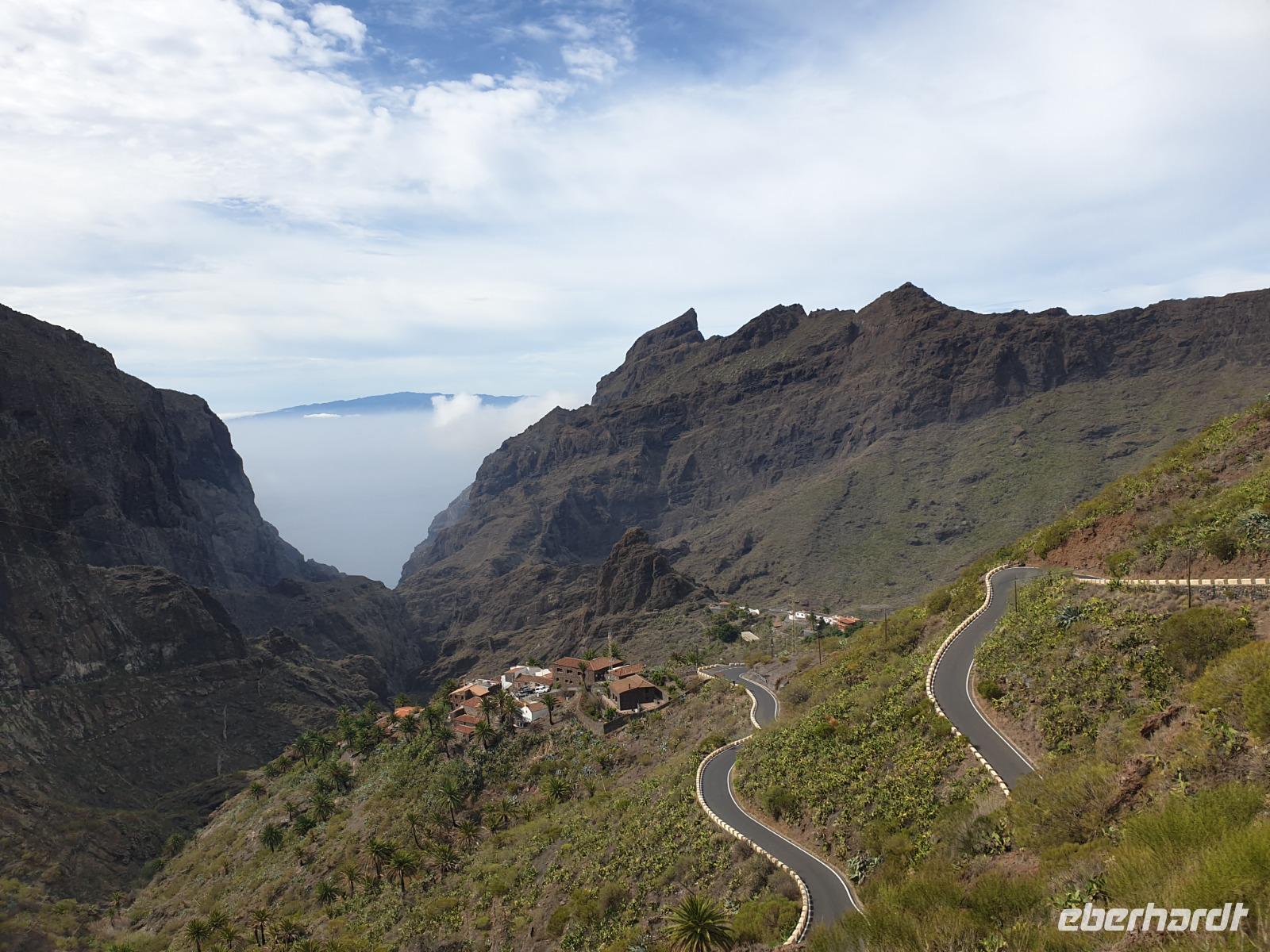 Wir legen heute unseren ersten Stopp im malerischen Städtchen Garachico ein, mit seinen traditionellen Häusern und der kleinen Festung direkt am Meer. Garachico und sein Hafen sind ein wahres Schmuckstück an der Westküste Teneriffas. Viele Jahre war Garachico von hoher wirtschaftlicher Bedeutung für die Kanaren. Aus dieser Zeit stammen zahlreiche prächtige Stadthäuser und Klöster. Doch vor 300 Jahren brach der Vulkan aus und glühende Lava fraß sich quer durch das Dorf Garachico bis zum Meer. Heute bezaubert Garachico seine Besucher mit der kleinen Festung direkt am Meer und seiner schönen Altstadt. Nach einen tollen Spaziergang, fuhren wir weiter nach Masca. Der kleine Bergdorf Ort im Tenogebirge lädt zum Verweilen ein inmitten imposant aufragender Gipfel. Wir legten hier in dem winzigen Dörfchen Masca eine Pause ein und genossen den tollen Ausblick! Dieser Ort thront am Rande der Masca-Schlucht und war bis in die siebziger Jahre nur zu Fuß oder mit dem Maultier erreichbar;) Anschließend ging es die lustigen Serpentinen hinauf nach Santiago del Teide. Man, haben wir hier gelacht. So viele Kurven und so viele am Steuer, die nicht fahren können... Geduld. Beim Mittagsessen verkosten wir wieder viele Leckereien. Unter denen Gofio: ein Getreidegericht und das älteste überlieferte Nahrungsmittel der Kanarischen Inseln. Wenn man es mit einer richtigen Brühe damit ein Gericht macht, ist einfach lecker.