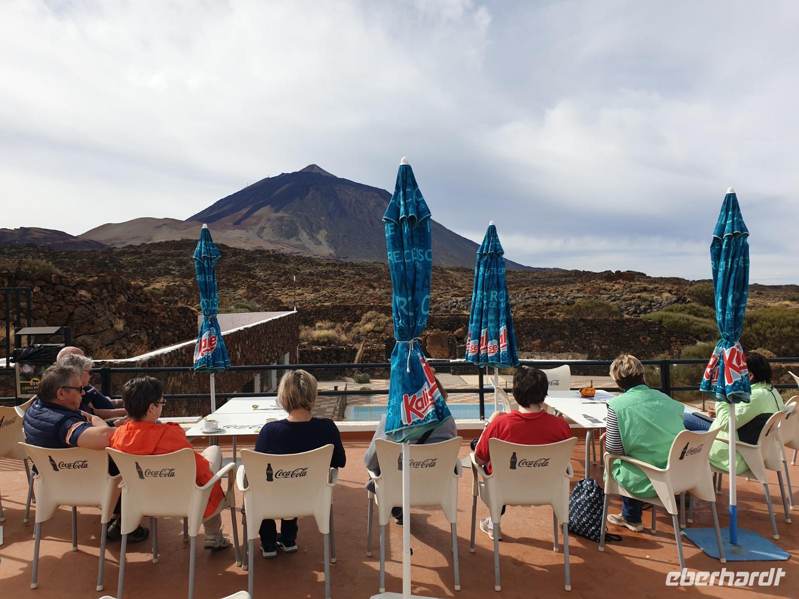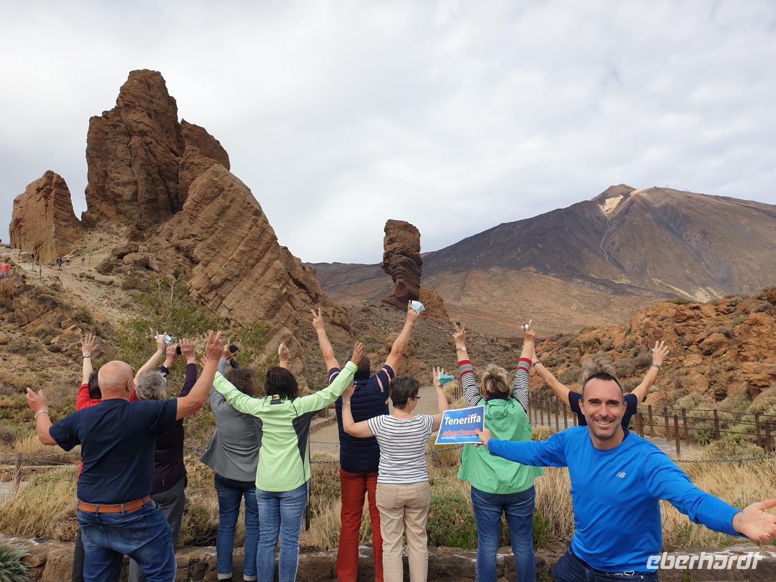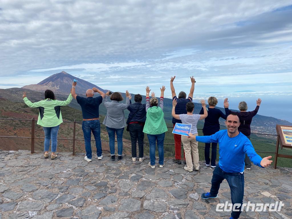 Heute geht es hoch hinaus aber richtig hoch! Einzigartige Ausblicke genießen wir während unserer Fahrt bis auf rund 2100 Meter Höhe in die Cañadas del Teide, den Krater des Vulkans Teide. Hier schufen die Vulkanaktivitäten bizarre Formationen. Nach Durchquerung der Montana Blanca erreichten wir offiziell den Nationalpark Canadas del Teide, welcher unter Naturschutz steht. Über La Laguna und La Esperanza fuhren wir in und durch die Nationalpark del Teide zur Talstation der Seilbahn. Wir fuhren mit dieser Seilbahn von 2.356 Metern auf eine Höhe von 3.555 Metern. Von der oberen Seilbahn-station aus haben wir bei günstigem Wetter einen grandiosen Ausblick auf die benachbarten Inseln - Gran Canaria, La Gomera, La Palma sowie El Hierro. Der Weg bis zum Krater bedarf einer guten Fitness und wird durch den örtlichen Tourismusverband auf einen Zugang von maximal 200 Gäste pro Tag eingeschränkt, daher ist der Aufstieg nicht vorgesehen. Man braucht eine Genehmigung um bis ganz oben zu laufen. Wieder unten machten wir noch ein paar Photostopps hier am Nationalpark bevor wir wieder bergab fuhren. Am frühen Nachmittag besuchten wir den beschaulichen Ort La Orotava aber erstmal gab es wieder eine Überraschung. Diesmal ein Barbecue am La Caldera Freizeit Park. Eigentlich war es ein ehemaliger Vulkan und genau am Krater hatten wir das Barbecue mit verschiedenen Tapas und Rotwein zum verkosten. Lecker! Wir haben Witze erzählt und gesungen.