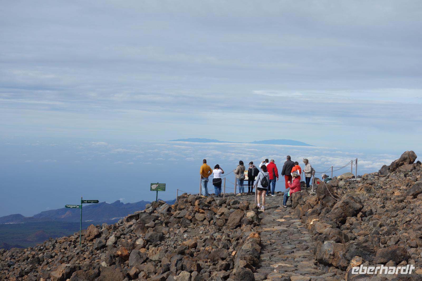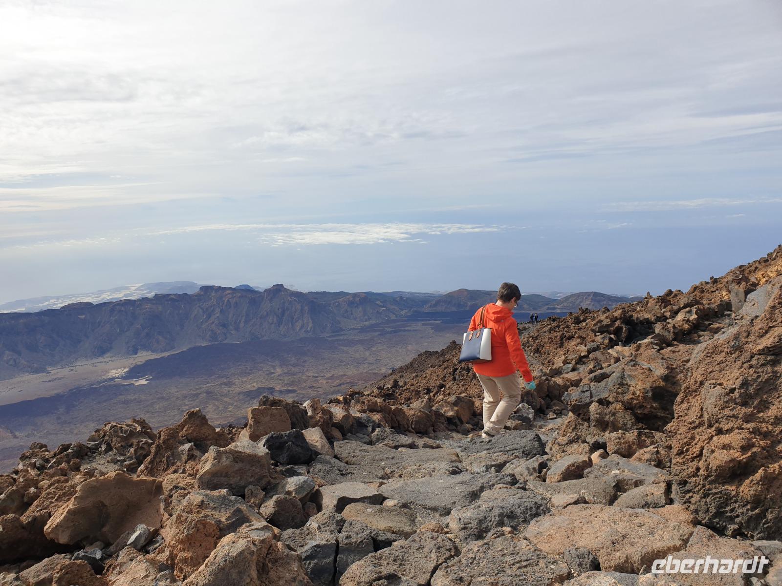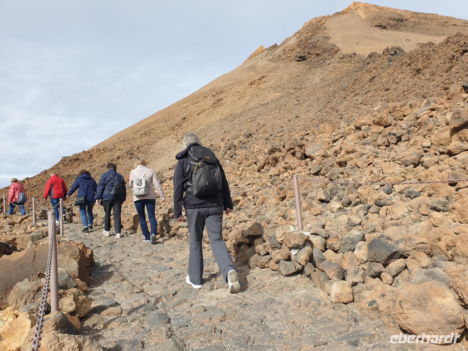 Heute geht es hoch hinaus aber richtig hoch! Einzigartige Ausblicke genießen wir während unserer Fahrt bis auf rund 2100 Meter Höhe in die Cañadas del Teide, den Krater des Vulkans Teide. Hier schufen die Vulkanaktivitäten bizarre Formationen. Nach Durchquerung der Montana Blanca erreichten wir offiziell den Nationalpark Canadas del Teide, welcher unter Naturschutz steht. Über La Laguna und La Esperanza fuhren wir in und durch die Nationalpark del Teide zur Talstation der Seilbahn. Wir fuhren mit dieser Seilbahn von 2.356 Metern auf eine Höhe von 3.555 Metern. Von der oberen Seilbahn-station aus haben wir bei günstigem Wetter einen grandiosen Ausblick auf die benachbarten Inseln - Gran Canaria, La Gomera, La Palma sowie El Hierro. Der Weg bis zum Krater bedarf einer guten Fitness und wird durch den örtlichen Tourismusverband auf einen Zugang von maximal 200 Gäste pro Tag eingeschränkt, daher ist der Aufstieg nicht vorgesehen. Man braucht eine Genehmigung um bis ganz oben zu laufen. Wieder unten machten wir noch ein paar Photostopps hier am Nationalpark bevor wir wieder bergab fuhren. Am frühen Nachmittag besuchten wir den beschaulichen Ort La Orotava aber erstmal gab es wieder eine Überraschung. Diesmal ein Barbecue am La Caldera Freizeit Park. Eigentlich war es ein ehemaliger Vulkan und genau am Krater hatten wir das Barbecue mit verschiedenen Tapas und Rotwein zum verkosten. Lecker! Wir haben Witze erzählt und gesungen.