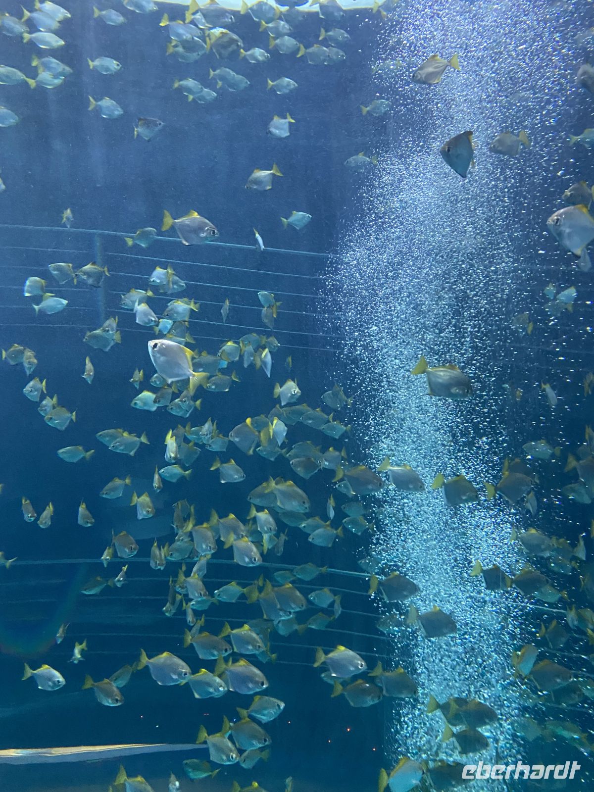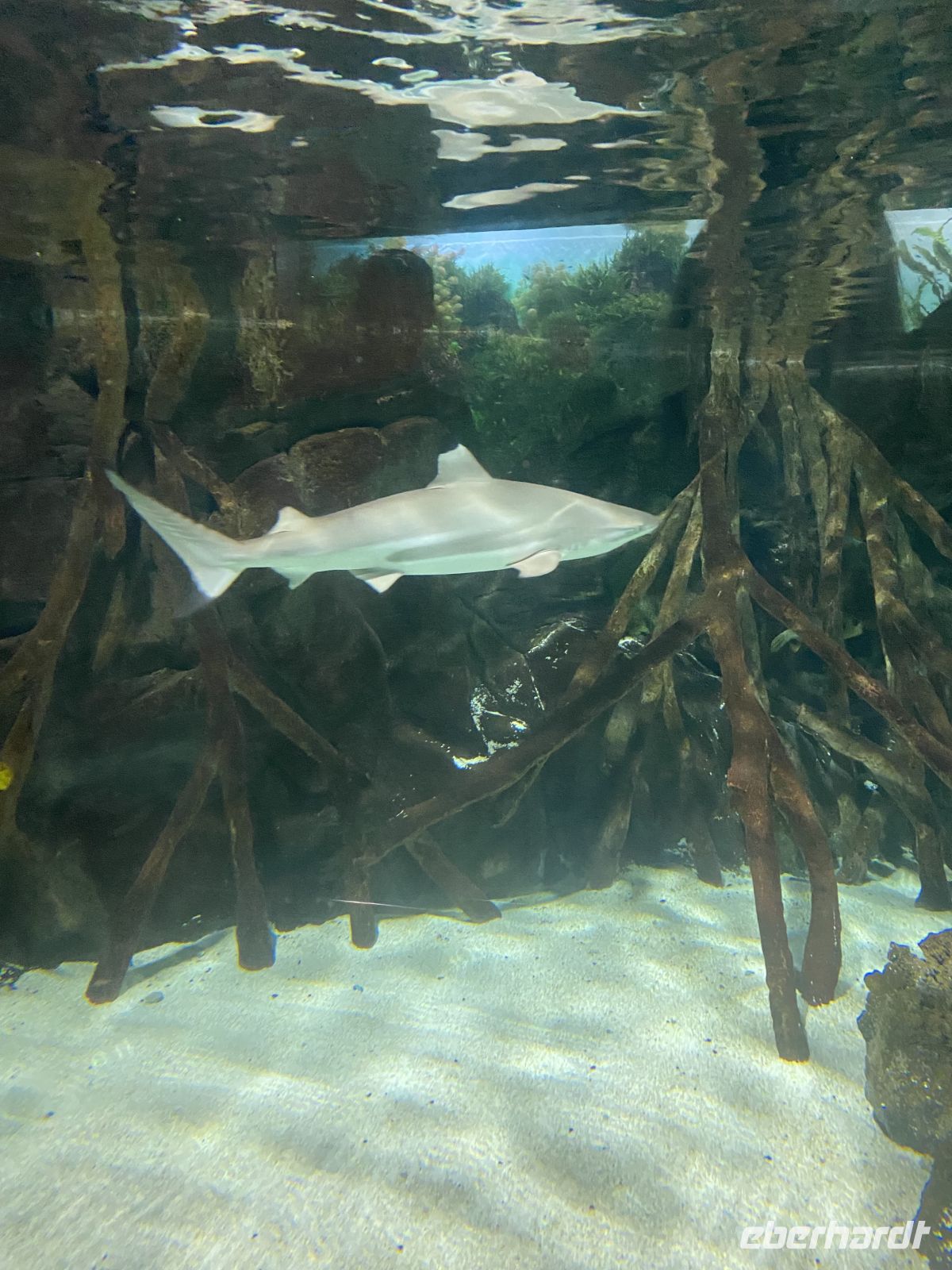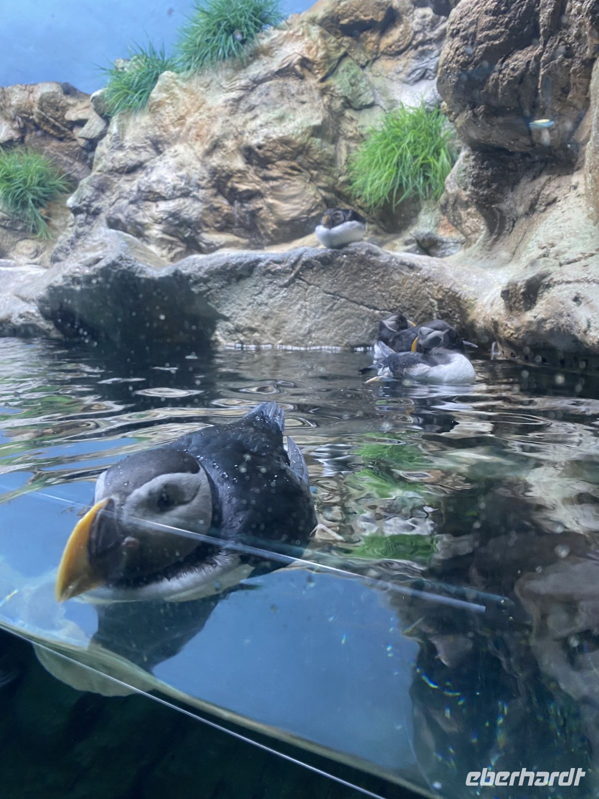 Anschließend ging es weiter in den Keller unter den großen Glasbecken. Dort, im Halbdunkel zwischen Rohren, Pumpen und Technik, gelangten wir zu kleinen Sichtfenstern, durch die wir die Orkas aus nächster Nähe beobachten konnten. Fasziniert sahen wir Morgan mit ihrem 6 Monate alten Kalb lautlos vorbeigleiten, während Jens erklärte, wie komplex die Versorgung der riesigen Aquarien ist und wie viel Arbeit hinter der scheinbar mühelosen Unterwasserwelt steckt.