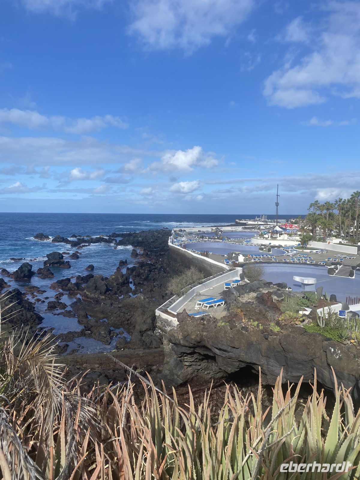 Gestärkt machten wir uns anschließend auf den Weg zur von César Manrique mitgestalteten Badelandschaft. Dort, zwischen den geschwungenen Wegen, den hellen Formen und den türkisblauen Wasserbecken, entdeckten wir einige seiner Skulpturen. Ihre klaren Linien, die spielerische Bewegung und die kräftigen Farben bildeten einen lebendigen Kontrast zum dunklen Lavagestein und verliehen der gesamten Anlage eine besondere künstlerische Note.